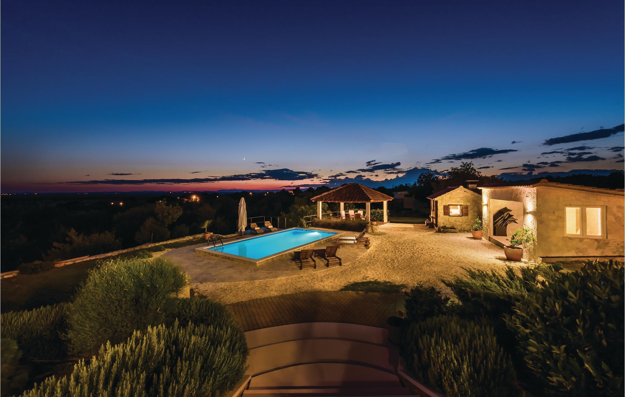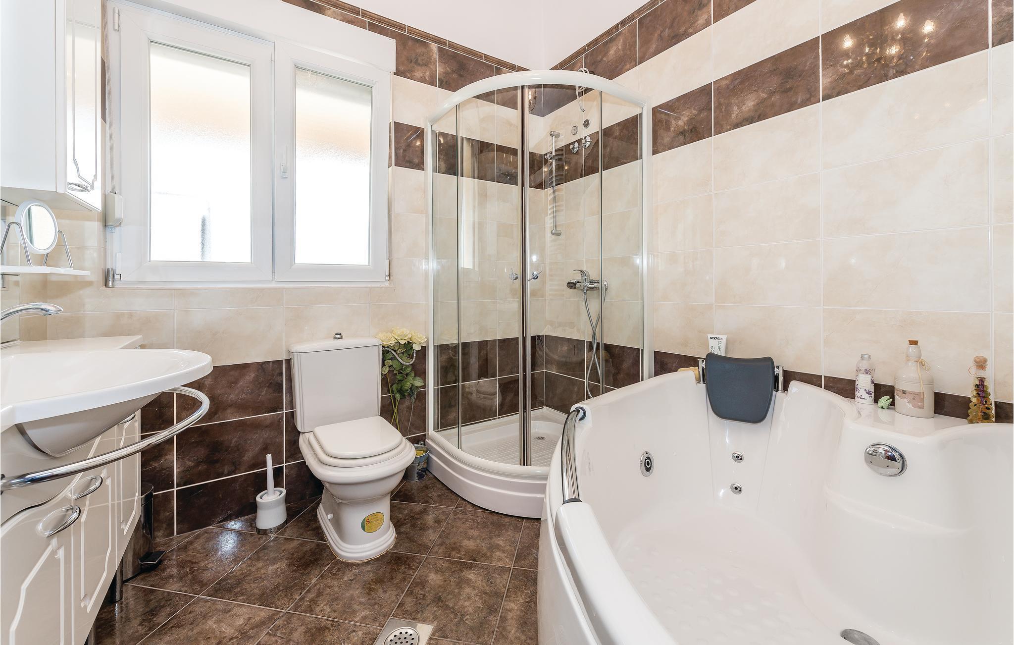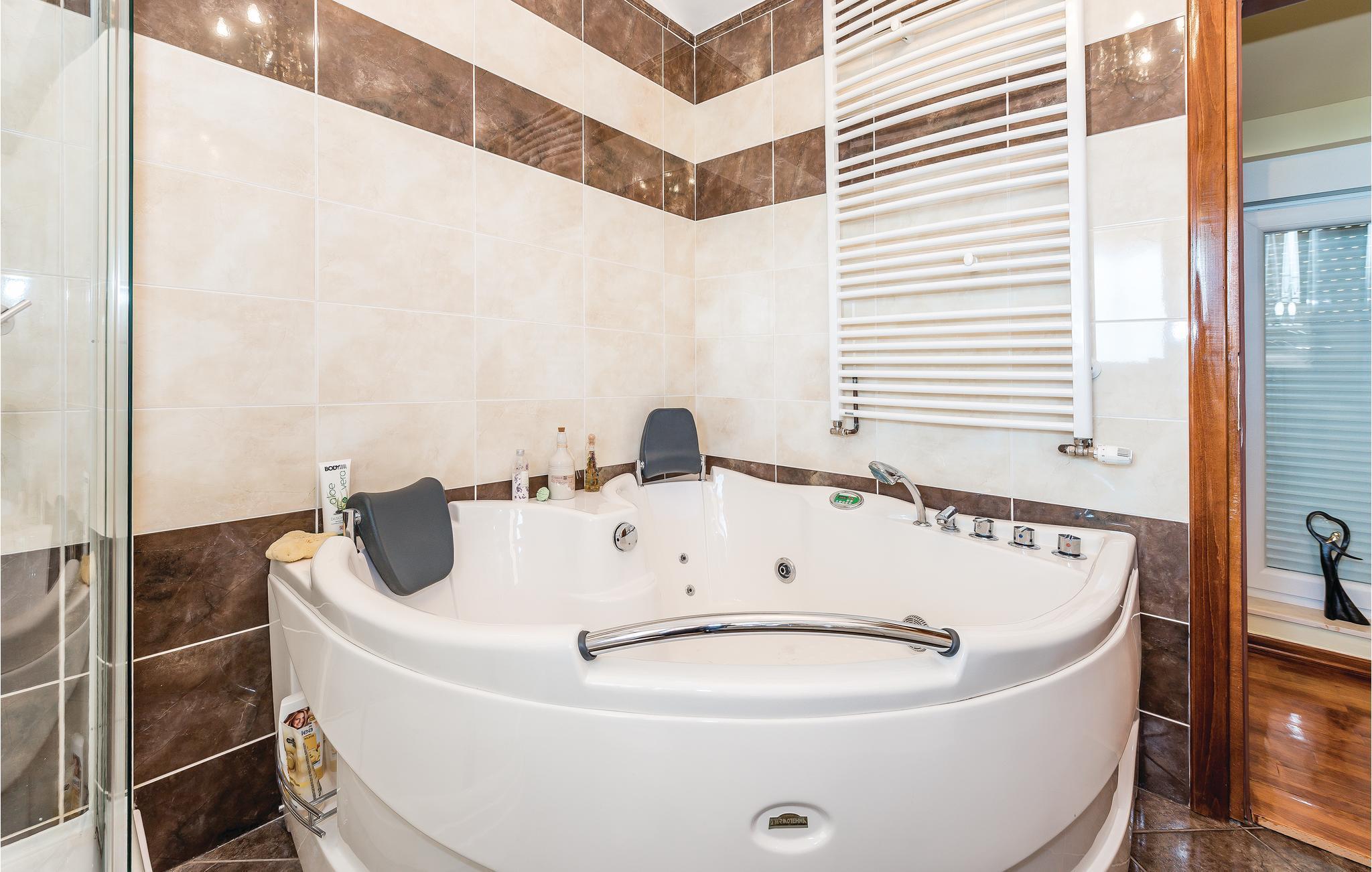 Dieses schöne Ferienhaus, für eine größere Familie gedacht, befindet sich in der Nähe des Nationalparks Krka. Es besteht aus drei Schlafzimmern, zwei Badezimmern, zwei Küchen und einer Toilette. Im unteren Bereich des Hauses befindet sich außerdem auch eine Taverne, von der aus Sie zum Fitnessraum, Sauna und Billardtisch gelangen. Für eine vollkommene Entspannung steht Ihnen ein Swimming-Pool zur Verfügung, wo Sie sich tagsüber erfrischen und am Abend gesellige Stunden verbringen können. Für die Zubereitung von kulinarischen Köstlichkeiten benutzen Sie den Grill der sich im kleinen Steinhäuschen auf dem Grundstück befindet. Besuchen Sie die Stadt Sibenik die viele Denkmäler und Festungen hat. Die Kathedrale zählt zu einer der schönsten und ungewöhnlichsten in Europa. Aktiv werden können Sie mit Bungee jump von der Brücke, beim Tauchen, Segeln, Wandern, was hier ebenfalls angeboten wird. Als Radfahrer interessiert Sie sicher der 5 km lange Radweg in der Nähe, dieser geht in einen 25 km langen, zum Nationalpark Krka führenden Radweg über.