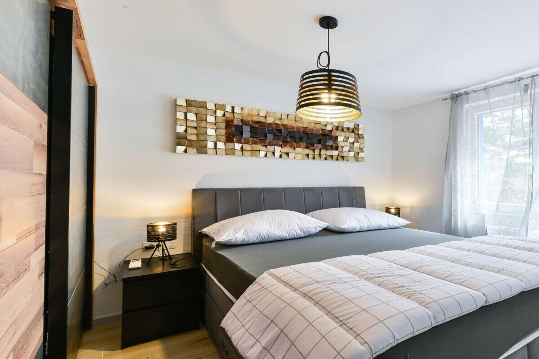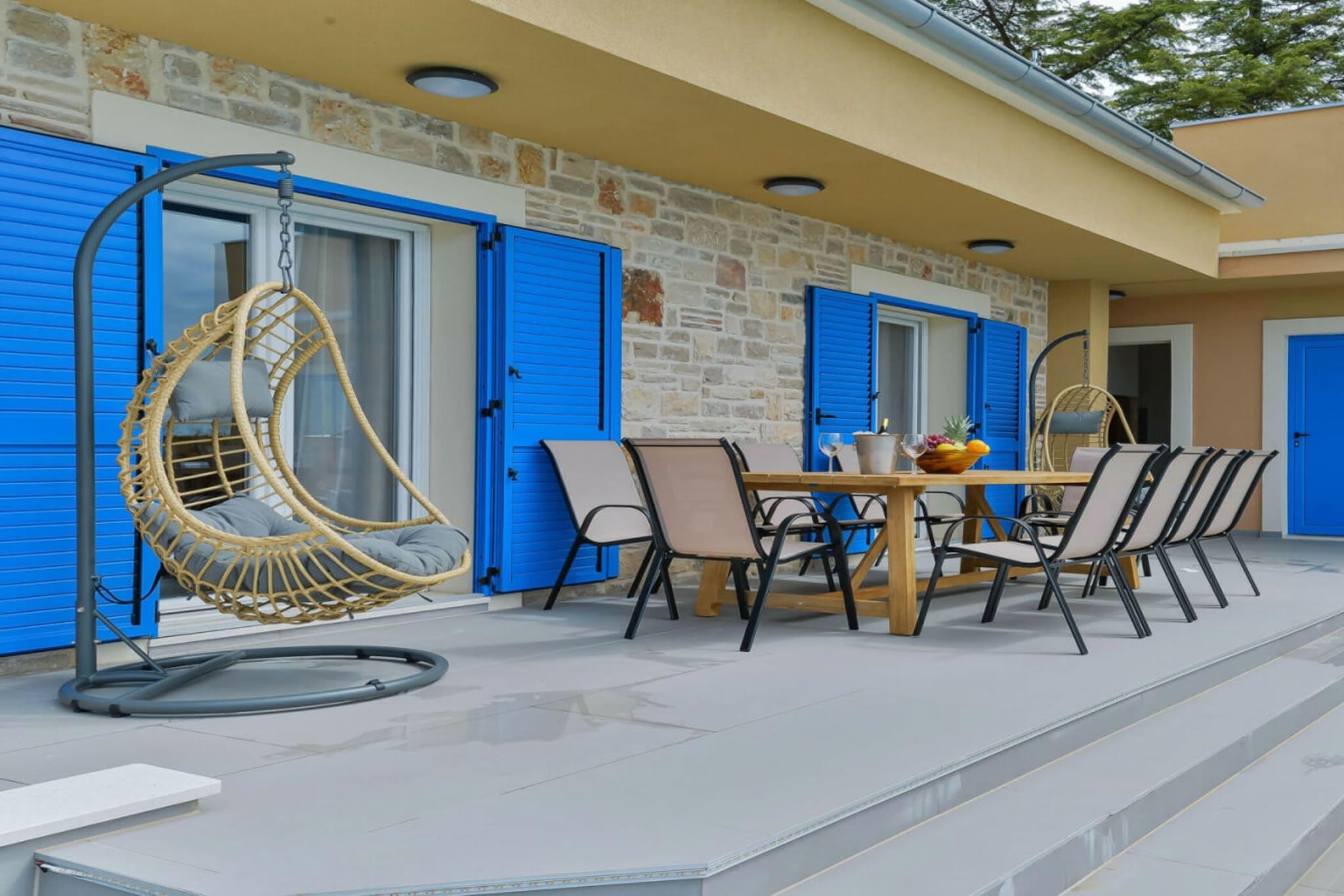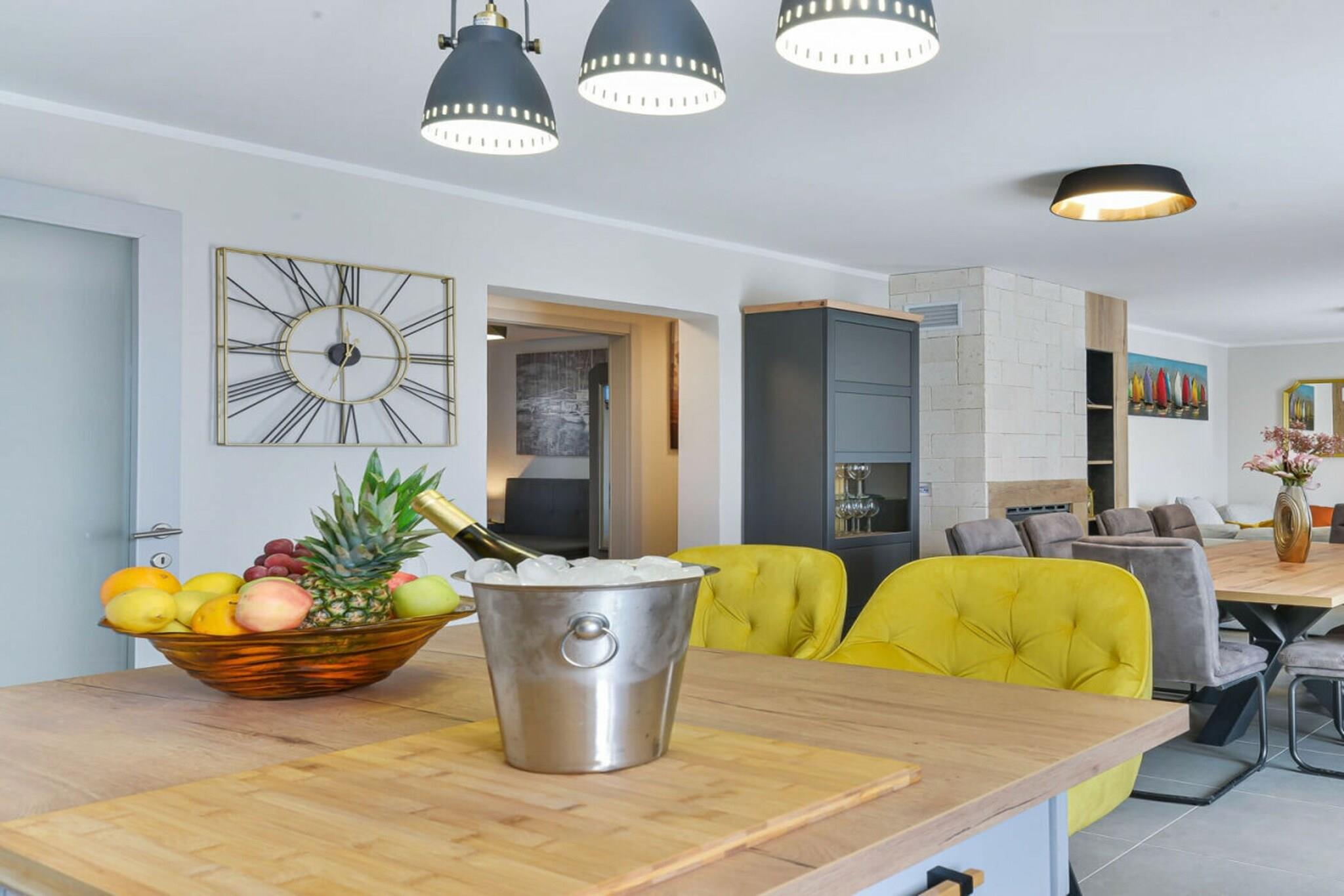 Die Villa bietet eine ruhige Umgebung für einen erholsamen Urlaub, sowie viele Annehmlichkeiten für die Unterhaltung Ihrer Familie und Freunde. Die 200 m2 große Villa befindet sich auf einem 1000 m2 großen Grundstück. Im Erdgeschoss finden Sie einen schönen offenen Wohnbereich, der ein Wohnzimmer, ein Esszimmer und eine voll ausgestattete Küche umfasst, alle mit einem direkten Ausgang zu einer erstaunlichen Terrasse und Poolbereich. Ebenfalls im Erdgeschoss befinden sich 4 Schlafzimmer, von denen 2 über ein eigenes Bad verfügen und die anderen 2 sich ein Bad teilen. Es gibt auch eine zusätzliche Toilette im Erdgeschoss. Die erste Etage ist von außen zugänglich und hat einen eigenen Eingang sowie eine zusätzliche Küchenzeile. Es gibt 2 weitere Schlafzimmer im ersten Stock. Das eine hat ein Doppelbett, das andere ein Doppelbett und ein Zusatzbett. Es gibt ein Badezimmer und eine zusätzliche Toilette. Der Außenbereich bietet eine Vielzahl von Annehmlichkeiten - einen Swimmingpool, einen Kinderpool, einen überdachten Grillplatz, Sonnenliegen, einen überdachten Gartenpavillon, einen Ess- und Sitzbereich im Freien... Die Villa verfügt über eine Sauna, einen Jacuzzi, einen Kinderspielplatz, einen Basketballplatz, SAT-TV, Wi-Fi im gesamten Haus und bietet Parkplätze. Haustiere sind gegen eine zusätzliche Gebühr erlaubt.