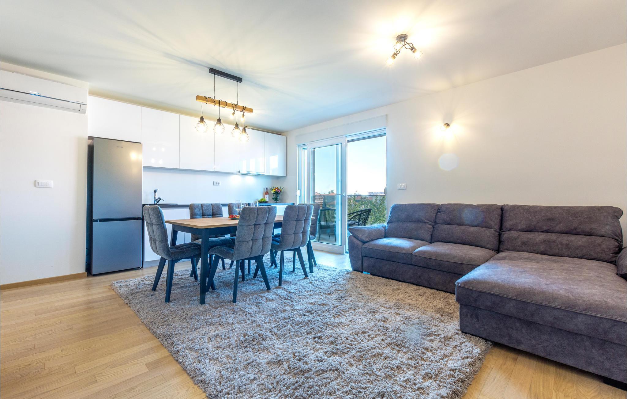 Diese moderne und stilvoll eingerichtete Ferienwohnung bietet Ihnen einen geräumigen Wohnraum mit offengelegtem Wohnkonzept und geschmackvollen Dekorationen. Hier werden Sie sich direkt wohlfühlen können und die Zeit in Kroatien besonders genießen. Entspannen Sie sich auf der Sofagarnitur, lesen Ihren Roman oder Unterhalten sich mit Ihrer Begleitung. Dieses Domizil wird für einige schöne Tages- und Abendstunden sorgen. Zudem haben Sie auch Zugang zu einer überdachten Terrasse, die Ihnen einen teilweisen Meerblick bietet.