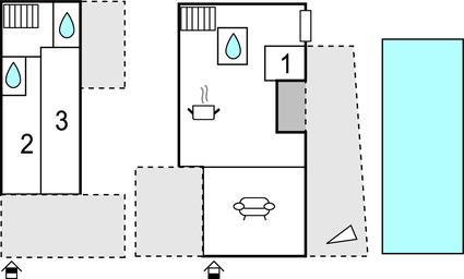 Badezimmer 4m2 (nr. 3) - WC. Warmes und kaltes Wasser. Dusche