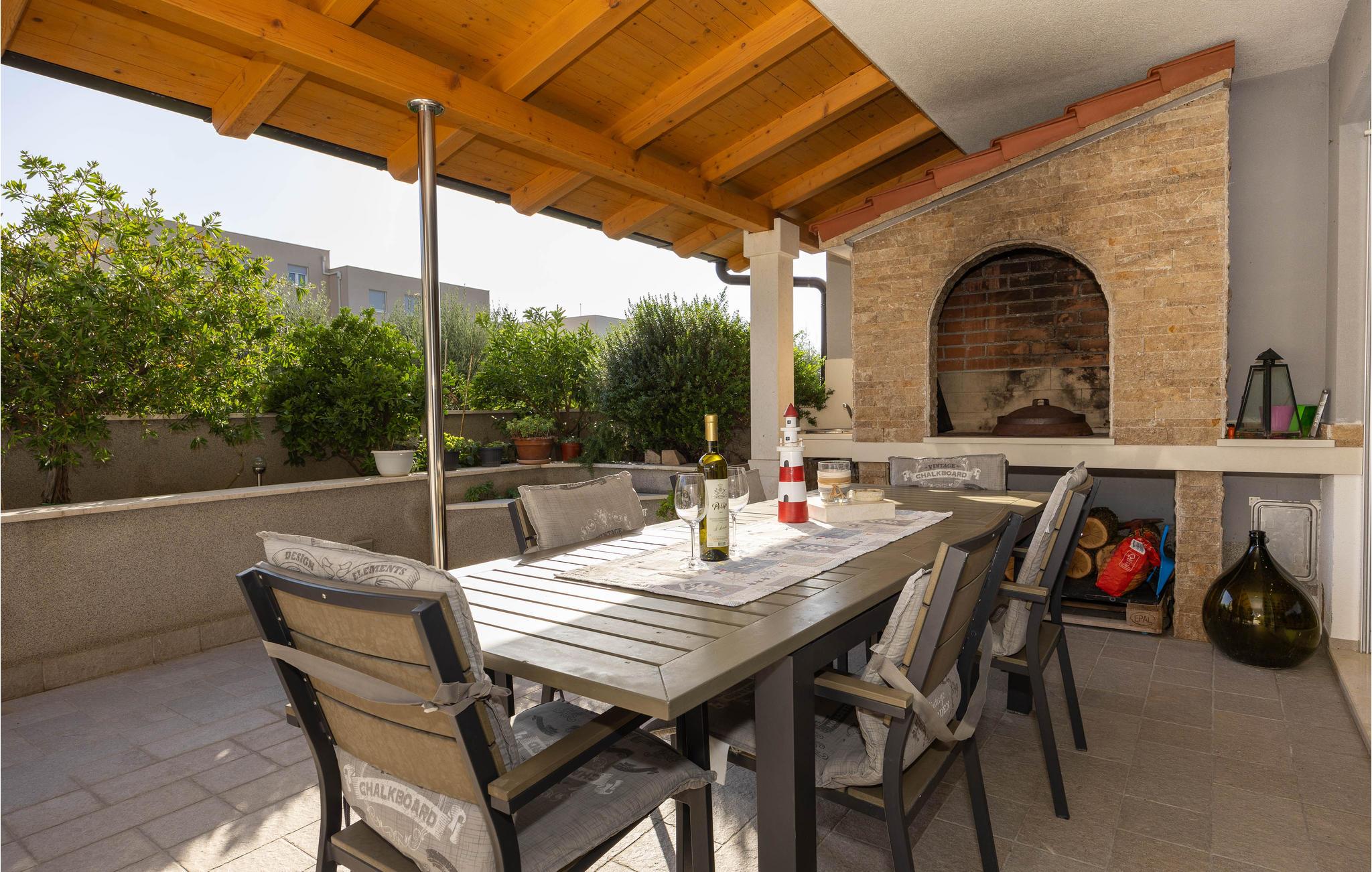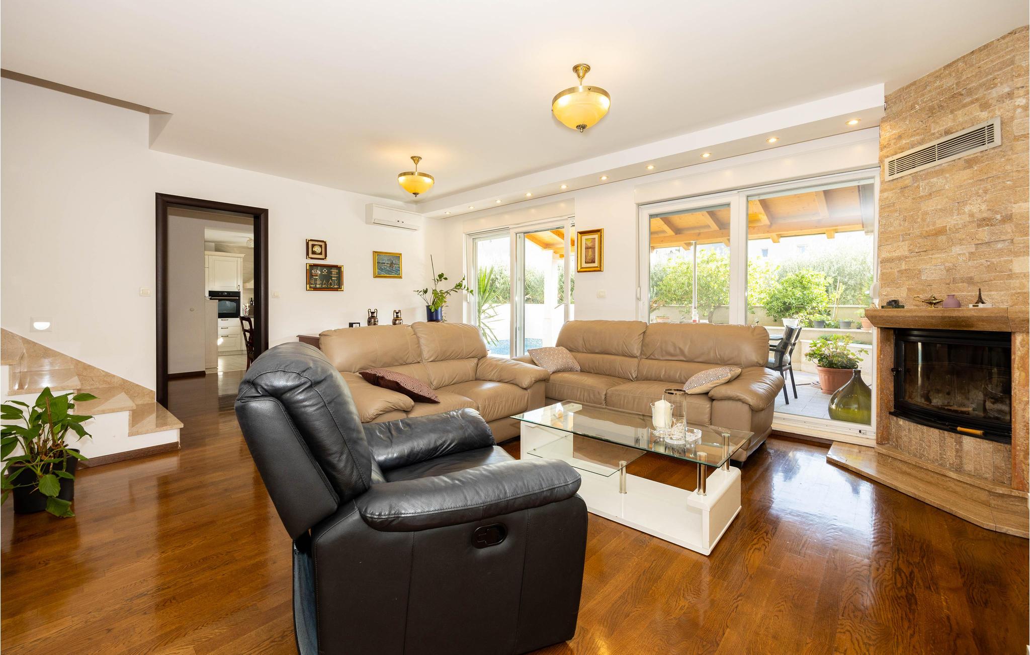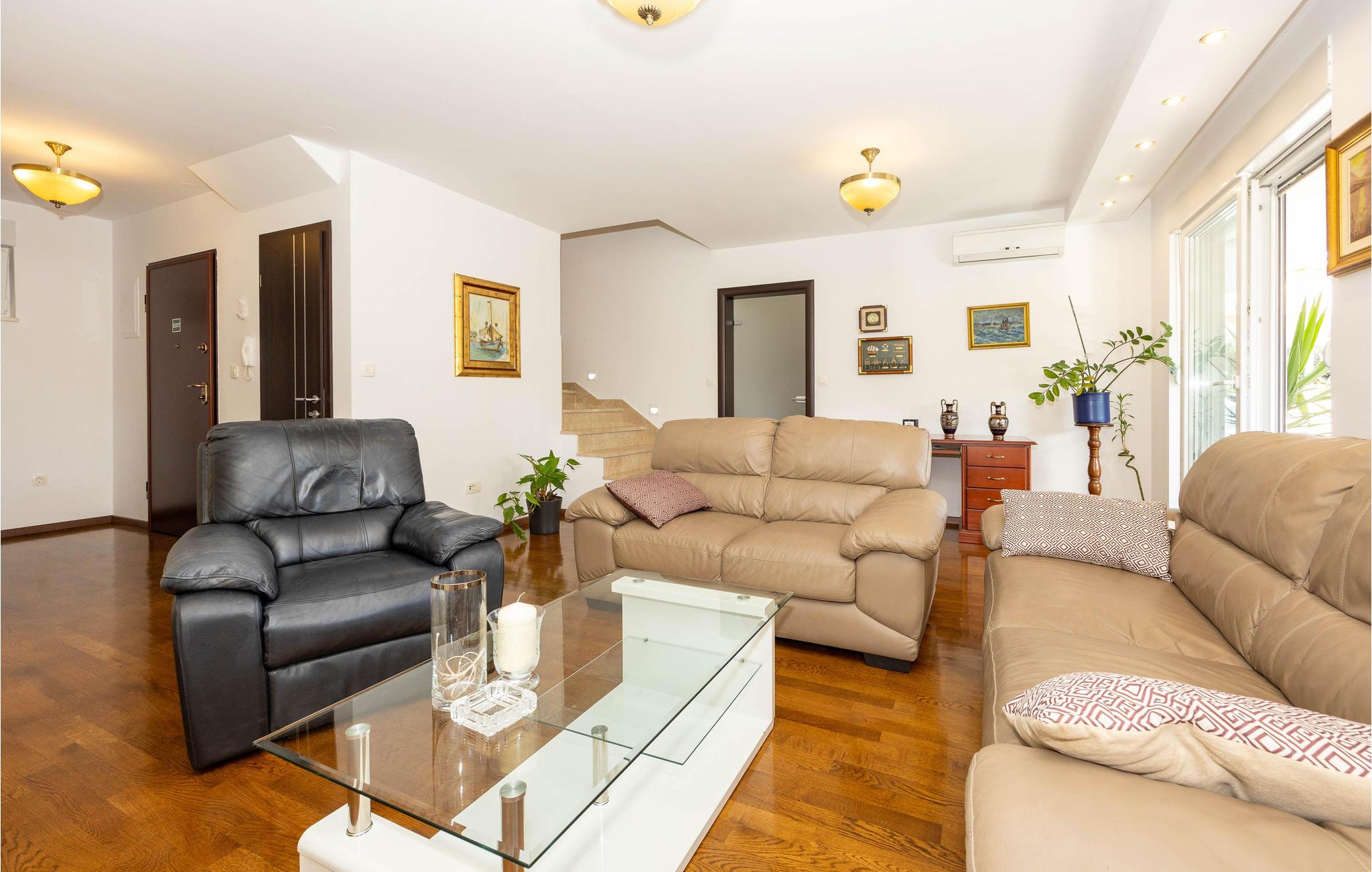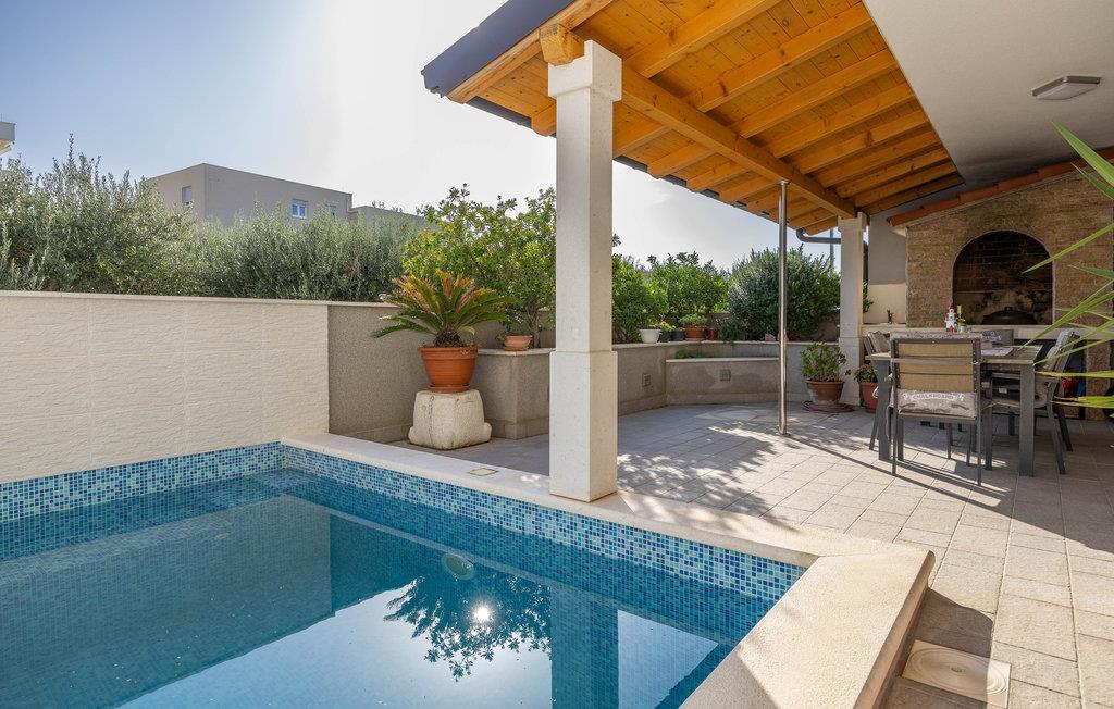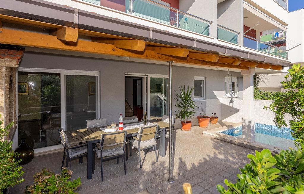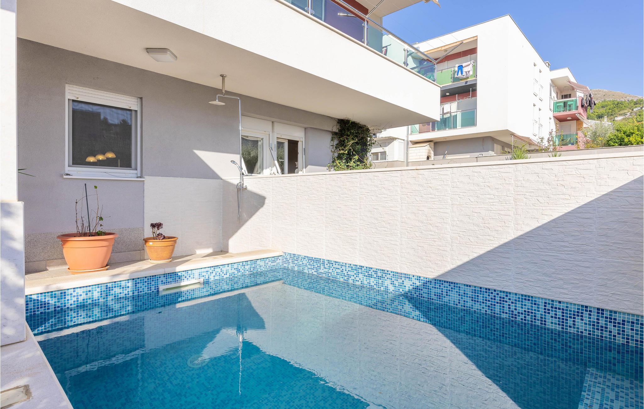 Die gut ausgestattete Ferienwohnung, in einem ruhigen Teil von Podstrana, erwartet Sie an einem Ort, der Sie mit schönen Stränden begeistern wird. Die zwei Etagen sind, mit Innentreppen verbunden. Im Erdgeschoss sind Küche, Bad und großes Wohnzimmer mit Ausgang zur Terrasse und Pool, während im ersten Stock zwei Schlafzimmer und ein Bad sind. Die Stadt Split mit vielen kulturellen und historischen Sehenswürdigkeiten, interessantem Nachtleben und Veranstaltungen in den Sommermonaten, wird Ihren Urlaub vervollständigen. Nach schönen Spaziergängen entlang der Uferpromenade und der Altstadt sollten Sie die lokalen Köstlichkeiten in einem der vielen Restaurants oder Tavernen probieren.