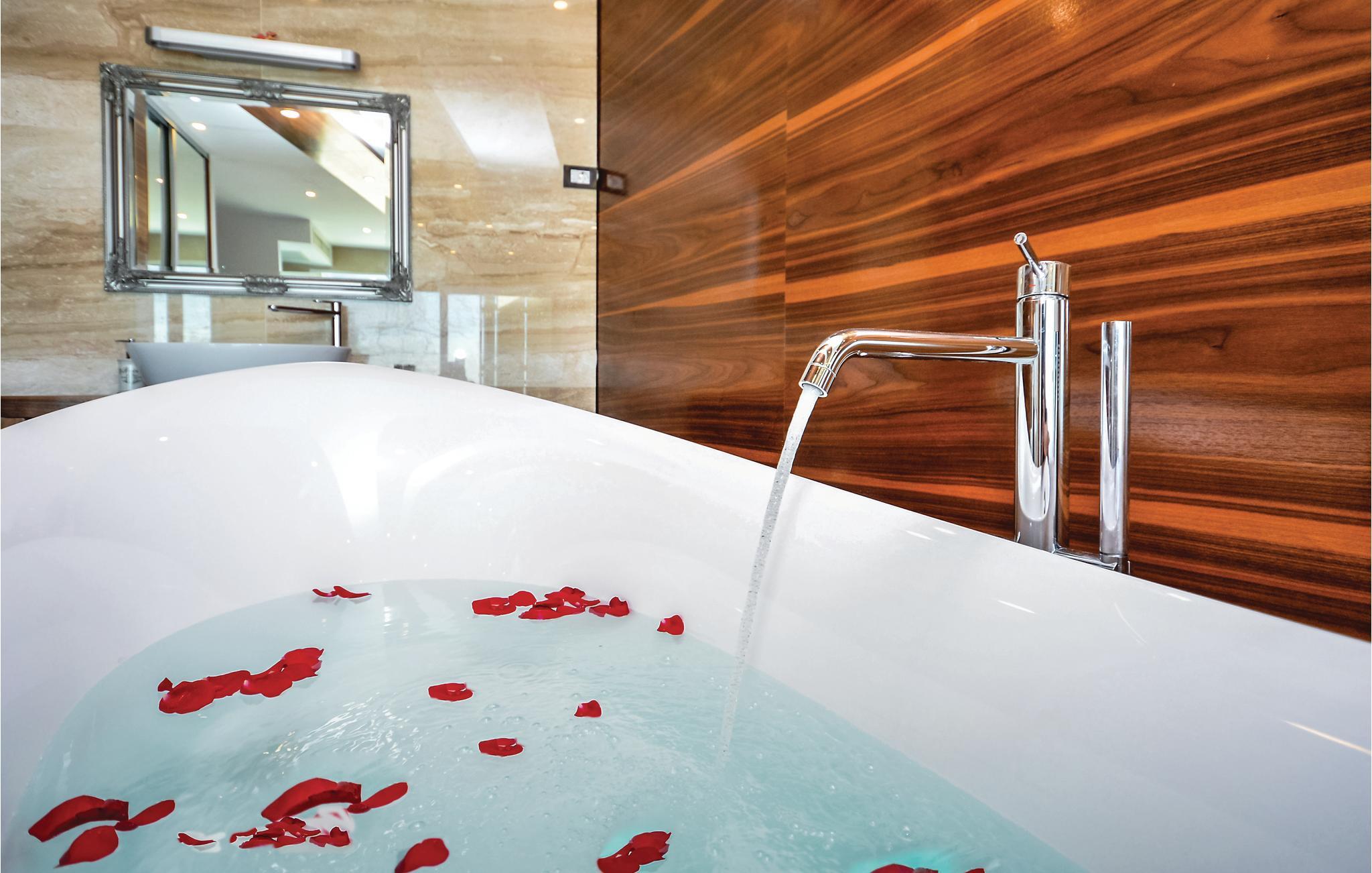 Diese wunderschöne, luxuriöse Villa mit Pool in Podstrana verfügt dank ihrer Lage über einen schönen Ausblick auf das Meer, die Inseln und die Stadt Split. Hohe Qualität im Inneren des Hauses sorgt für Wohlgefühl im Urlaub. Das Haus besteht aus mehreren Niveaus, die sich an die Unterlage angleichen und besitzt fünf Wohneinheiten. Der freundliche Eigentümer, der Ihnen während Ihres Aufenthaltes zur Verfügung steht, kann gegen Gebühr, eine Reihe von verschiedenen Dienstleistungen, wie Catering, Ausflüge, Taxi-Service oder zusätzliche Reinigung organisieren und somit Ihren Urlaub in diesem wunderbaren Ort ergänzen. Die letzten 200 m der Zufahrt sind nicht asphaltiert.