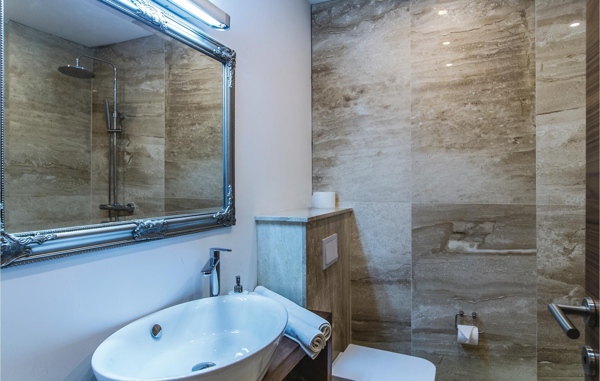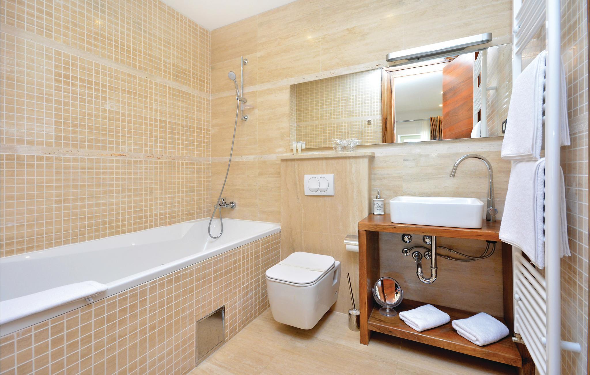 - WC mit warmem und kaltem Wasser, Dusche und Badewanne