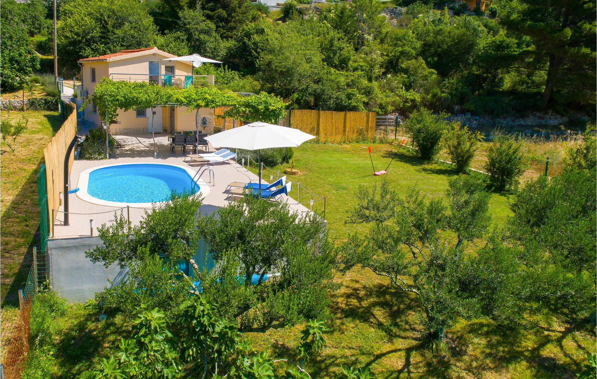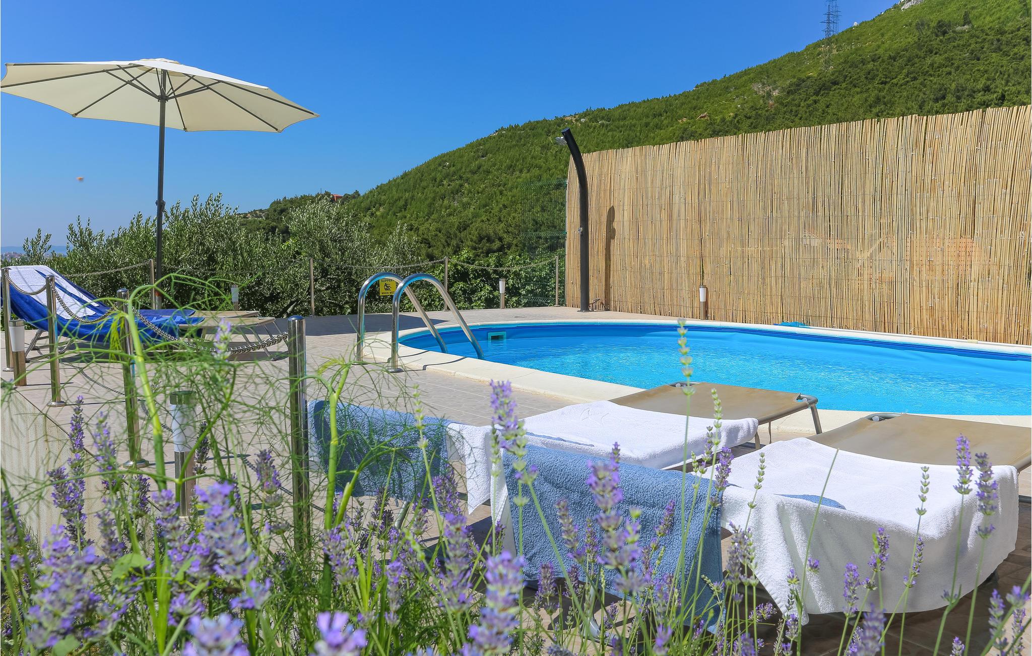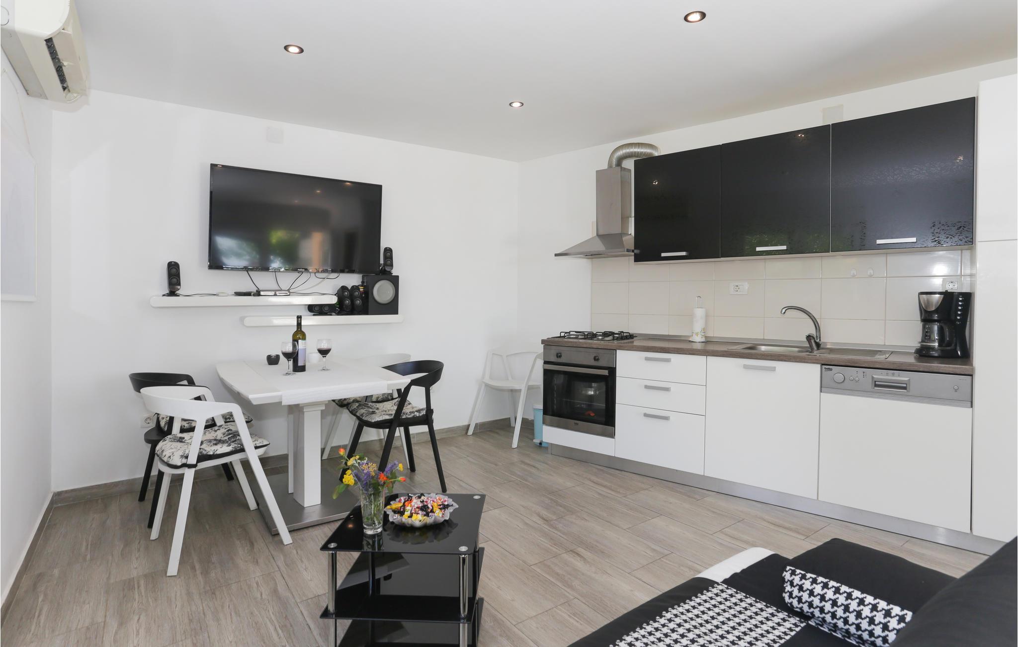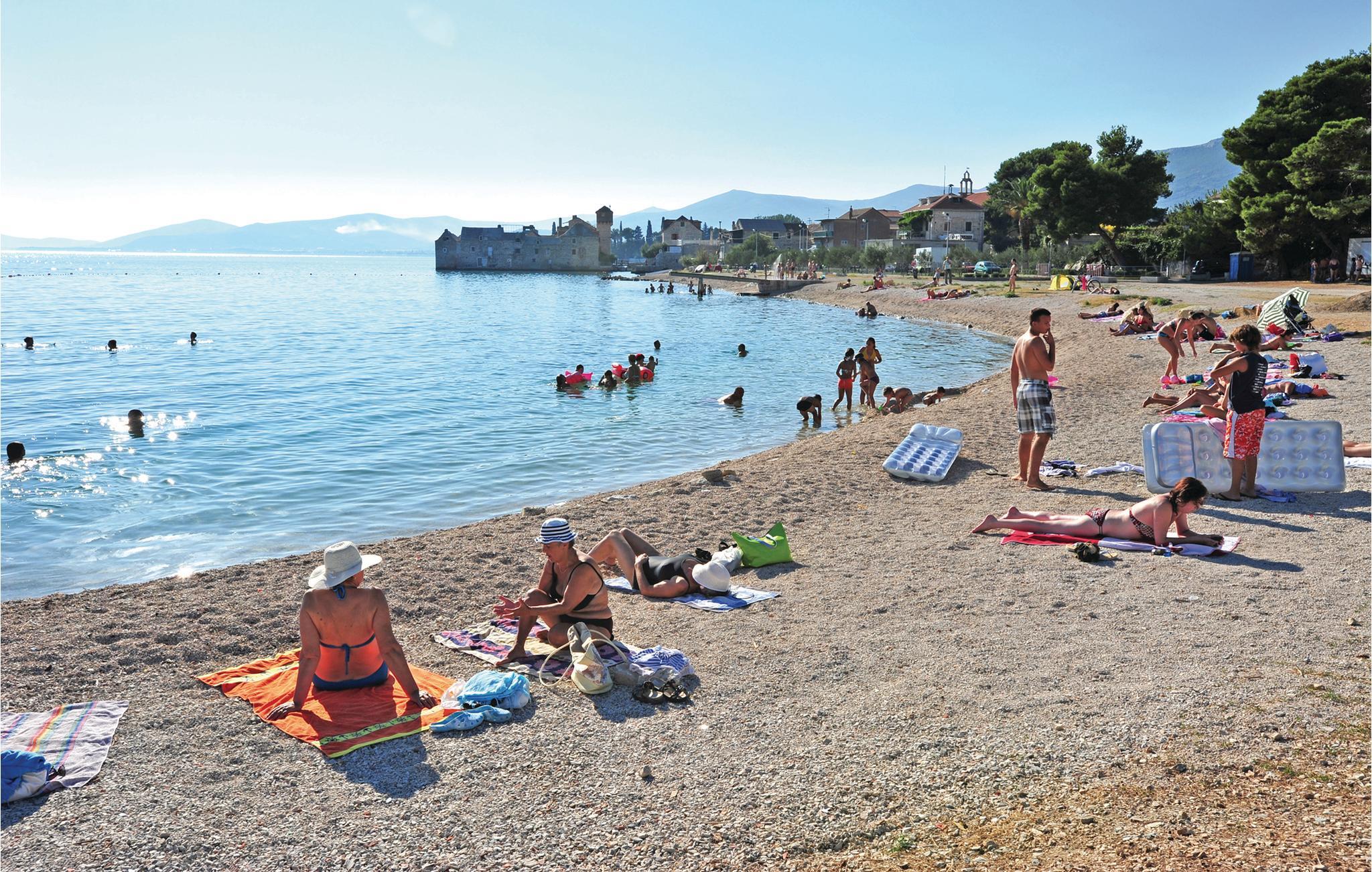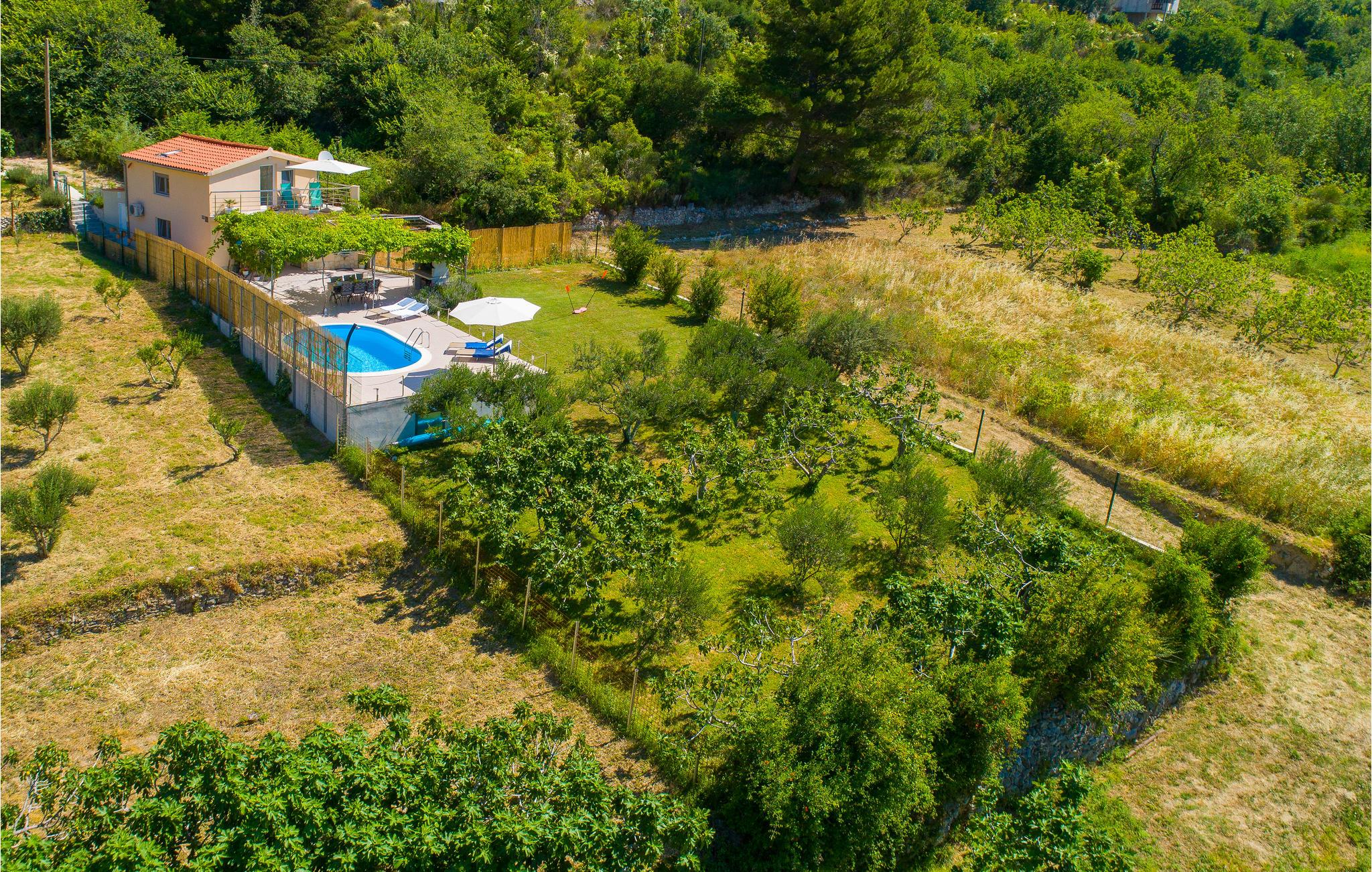 Dieses schöne kleine Ferienhaus liegt in der kleinen Ortschaft Solin, nicht weit von Split. Im Erdgeschoß ist die Küche mit Wohnzimmer. Eine Wendeltreppe führt Sie ins Dachgeschoss mit niedrigster Deckenhöhe von 150cm, wo sich zwei Schlafzimmer befinden sowie Balkon mit Aussicht auf Split und teilweise auf das Meer. Entspannen Sie sich im Schatten der überdachten Terrasse am Kamin. Wenn Sie die Ruhe satt haben, besuchen Sie die Stadt Solin, die Quelle des Flusses Jadro sowie die historische Altstadt von Split in etwa 15 km Entfernung. Der wunderbare Altstadtkern mit seinen Steingebäuden, guten Restaurants und tollen Einkaufsmöglichkeiten ist eine schöne Kulisse für Abendspaziergänge.