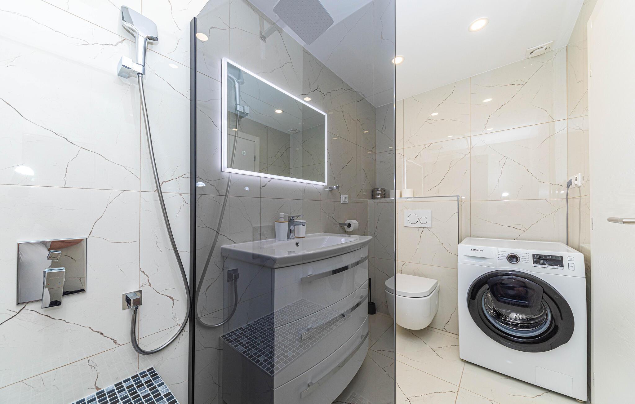 Badezimmer 8m2 (nr. 2) - WC. Warmes und kaltes Wasser. Dusche