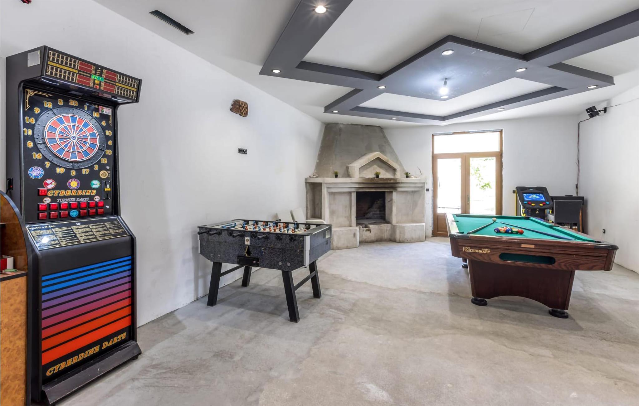 Diese geräumige Unterkunft auf einem großen Naturgrundstück erwartet Sie und Ihre Großfamilie in ruhiger Lage. Beziehen Sie das geschmackvoll und komfortabel eingerichtete Haupt- und Nebenhaus und genießen Sie somit sowohl Beisammensein als auch Privatsphäre. Für Unterhaltung ist gesorgt. Eine Aktivitätsraum mit Darts, Tischfußball, Billard und Spieleautomat stehen für Sie und Ihre Kinder bereit.