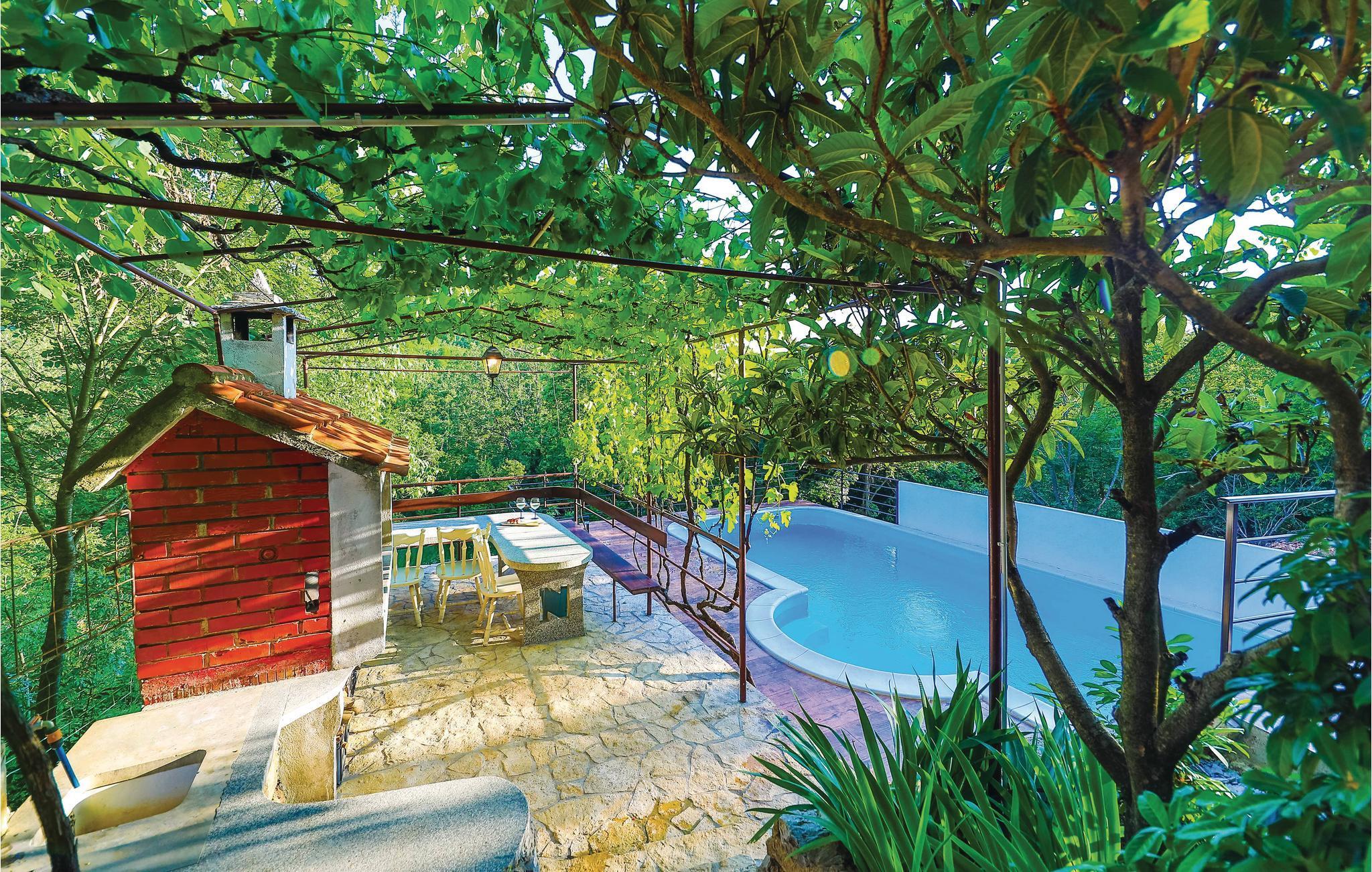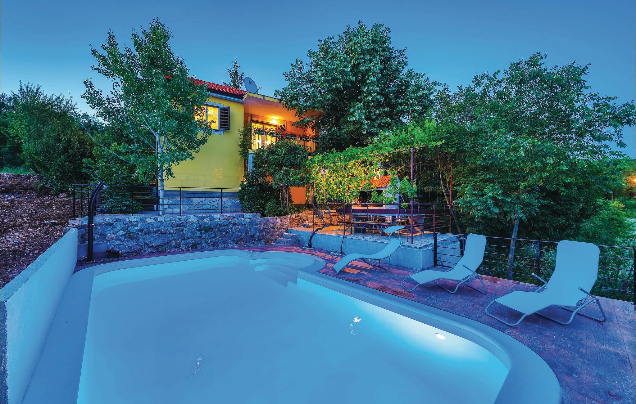 Im dalmatinischen Hinterland, in natürlicher Umgebung liegt dieses Ferienhaus mit Pool. Schön und funktionell eingerichtet, eignet es sich für einen angenehmen und erholsamen Familienurlaub mit Haustier. Es besteht aus Keller und Erdgeschoss, die durch eine Außentreppe miteinander verbunden sind. Im Erdgeschoss gibt es eine Küche mit Esszimmer, ein Badezimmer und zwei Schlafzimmer. Im Untergeschoss befinden sich ein Wohnzimmer und ein Fitnessraum. Das Grundstück ist komplett eingezäunt. Fern ab vom Stadtgetummel liegt dieses Ferienhaus abgeschieden und ist somit die ideale Wahl für alle, die auf Suche nach Ruhe sind. Vom Ferienhaus haben Sie einen schönen Blick auf die Berge in der Ferne. Rijeka Cetina mit zahlreichen Möglichkeiten für einen aktiven Urlaub liegt ca. 1,5 km und Split ca. 30 km entfernt.