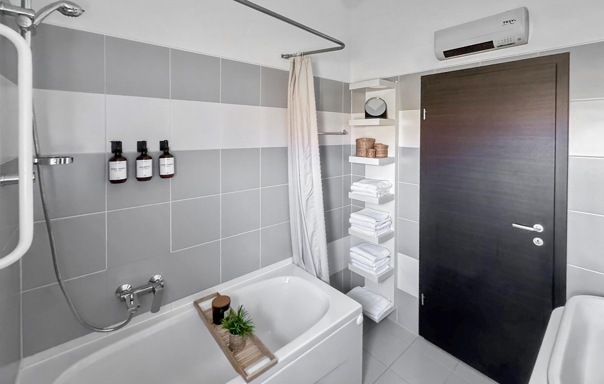 - WC mit warmem und kaltem Wasser, Badewanne