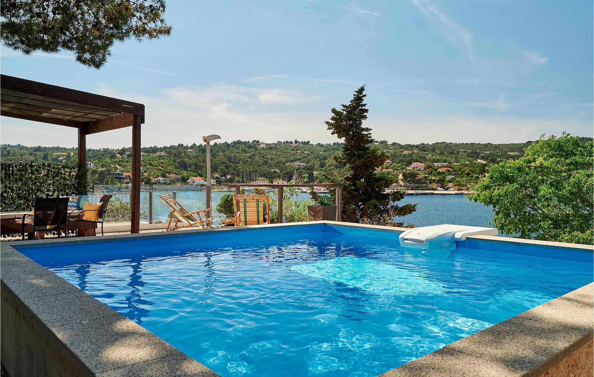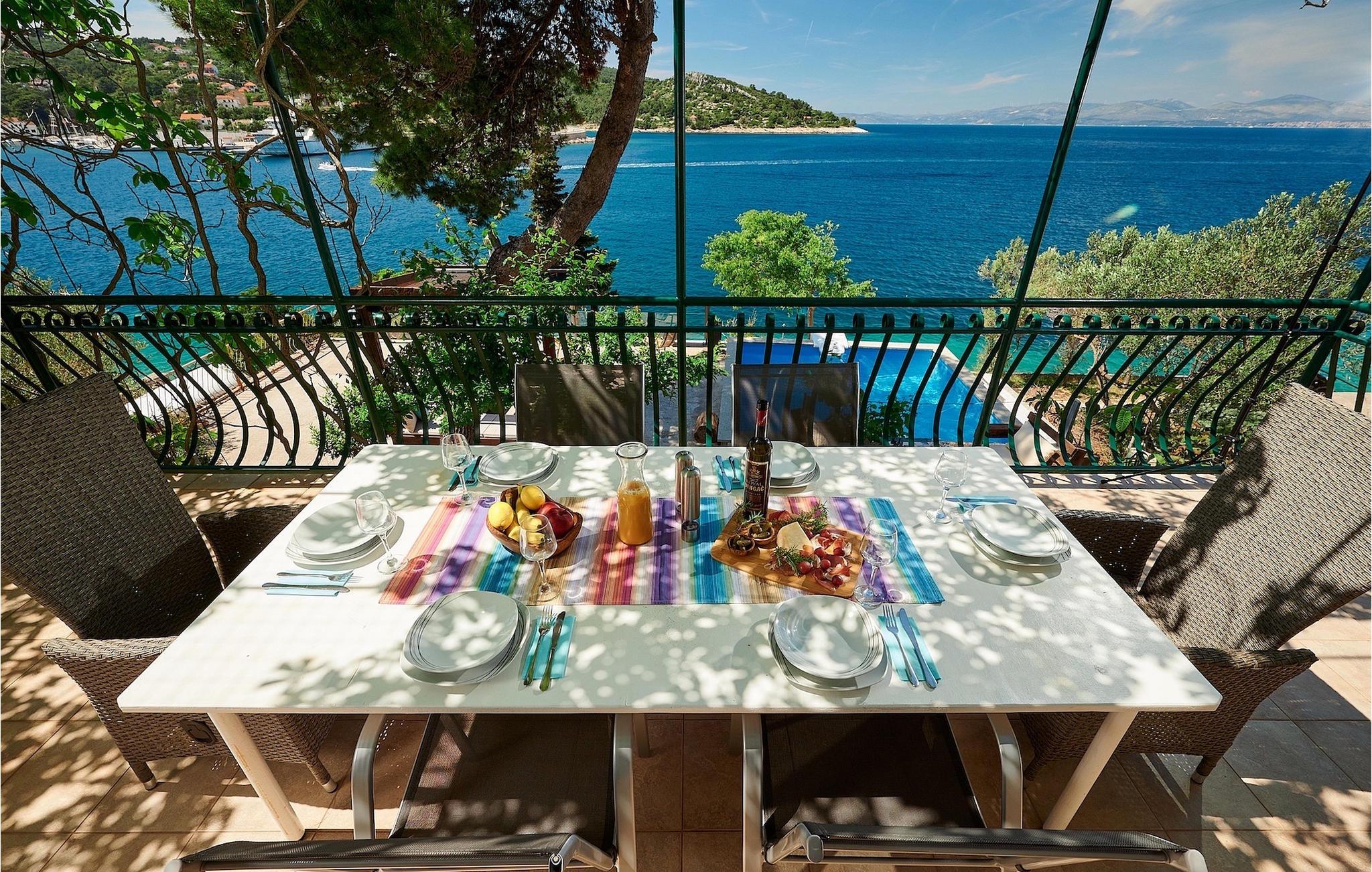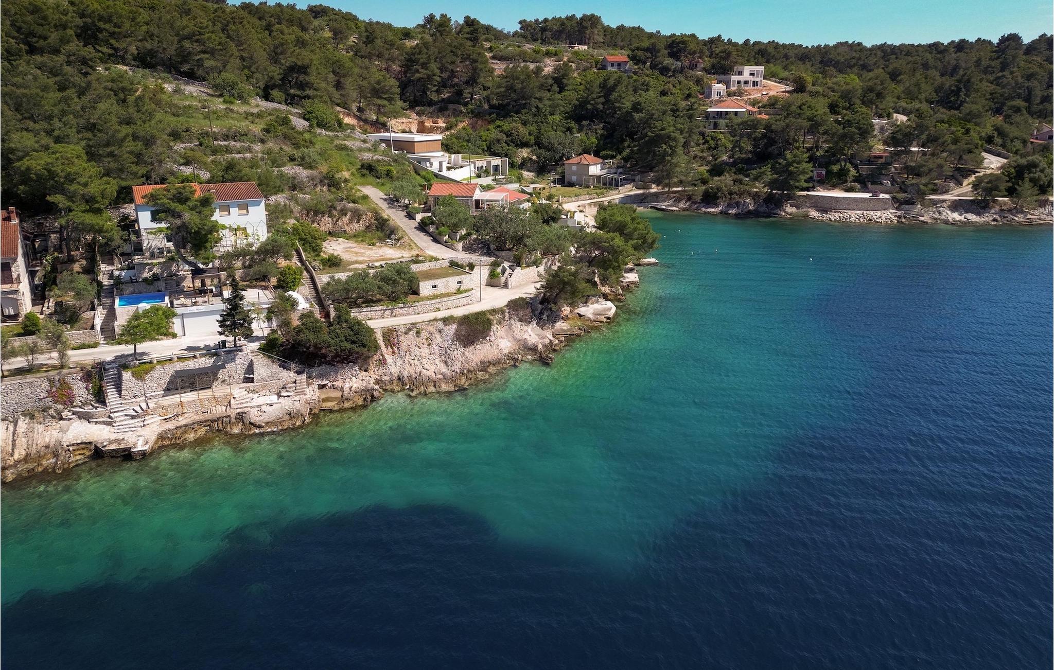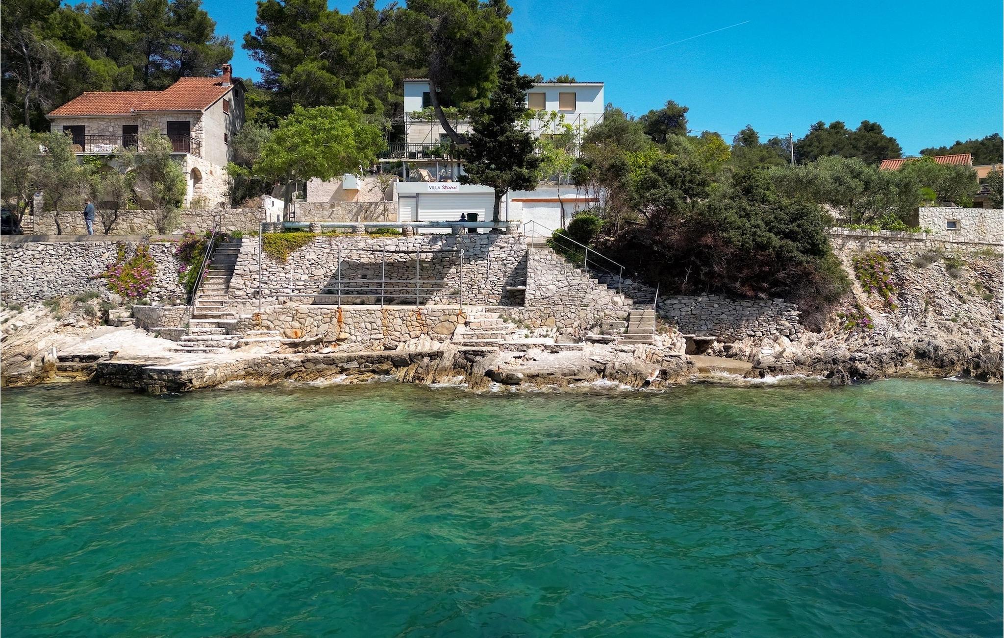 Villa Sun Spalato Mistral ist die perfekte mediterrane Idee der Entspannung – direkt am Meer gelegen, mit einem atemberaubenden Panoramablick auf die Bucht, in der sie liegt, und einer großzügigen Terrasse mit natürlichem Schatten von Bäumen und Weinreben, wo Sie angenehme Sommertage genießen können. Die ideale Umgebung, um draußen Schach zu spielen, während der designierte Koch Ihrer Gruppe köstliche Fischgerichte am Grill zubereitet und der Rest von Ihnen gerade über die schwierige Entscheidung nachdenkt, ob man ein Bad im Pool nehmen oder ein paar Schritte gehen möchte um ein paar Runden im Meer zu machen. Die Villa verfügt über insgesamt 5 Schlafzimmer für einen komfortablen Schlaf von maximal 9 Personen. In der Villa Mistral finden Sie außerdem 2 Badezimmer, ein Wohnzimmer, eine voll ausgestattete Küche und ein gemütliches Wohnzimmer. Aber die Außenterrasse und der Pool werden zweifellos die meiste Zeit Ihres Aufenthalts Ihre Wahl sein. Die Insel Šolta ist eine erstaunliche Insel in der Nähe der Touristenhochburg Split. Mit 6 Fährlinien und 1 Schnellbootlinie pro Tag während der Sommersaison ist Solta fast zu einem Vorort von Split geworden. Rogac, der Ort, an dem sich die Villa Mistral befindet, ist der ideale Ausgangspunkt, wenn Sie die Insel erkunden möchten. Egal, ob Sie Radtouren rund um die Insel unternehmen oder die atemberaubenden Höhlen der Insel erkunden möchten, die Insel hat alles zu bieten. Und das türkisfarbene Meer rund um die Insel ist immer eine gute Idee! Nehmen Sie also einfach eine Fähre oder einen Katamaran von Split aus und in weniger als einer Stunde sind Sie auf dieser bezaubernden Insel!