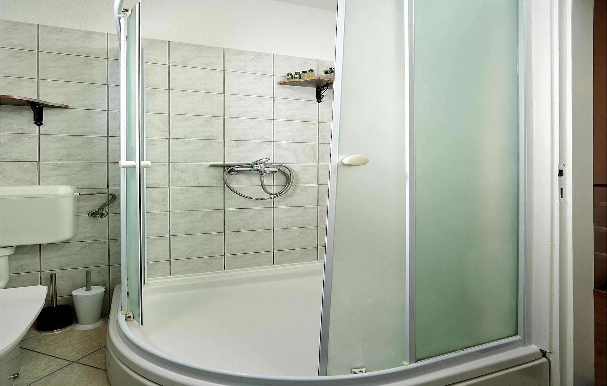 - WC mit warmem und kaltem Wasser, Dusche