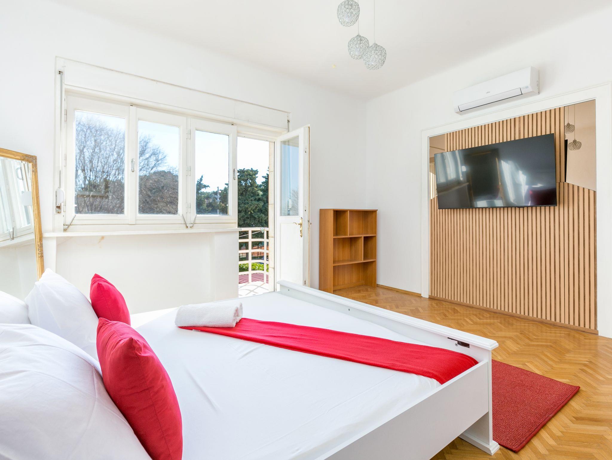 Haus bietet Platz für 10 Gäste. Die Betten sind in Schlafzimmern, die es 5 gibt, innerhalb einer Gesamtfläche von 160m2, angeordnet. Die Gäste haben eine eigene Terrasse zur Verfügung, auf der sie in warmen Sommernächten genießen können. Das Haus bietet Meerblick. Für vollen Genuss und Entspannung gibt es einen privaten Grill für Gäste dieser Unterkunft. Während ihres Aufenthalts können sich Gäste im privaten Schwimmbad entspannen. IM PREIS INBEGRIFFEN: Kurtaxe, Endreinigung, Klimatisierung, Pool, Parkplatz, Internet, Bügeleisen, Bügelbrett, Föhn. UNVERBINDLICHE ZUSÄTZLICHE KOSTEN: Boot (700,00 € pro Nacht). Die Verfügbarkeit zusätzlicher Dienstleistungen in Ihrem reservierten Termin und die Preise derselben (falls nicht aufgeführt) müssen im Voraus überprüft werden. Zusätzliche Dienstleistungen die in der Zahlungsaufforderung nicht aufgeführt sind werden direkt beim Vermieter bezahlt, angenommen der Gast nutzt auch diese. Ermäßigung auf den Grundpreis: Gratistag 14=13 (bei einem Aufenthalt von 14 Tagen oder mehr erhalten Sie einen Gratistag für den Aufenthalt bis 31.12.26).