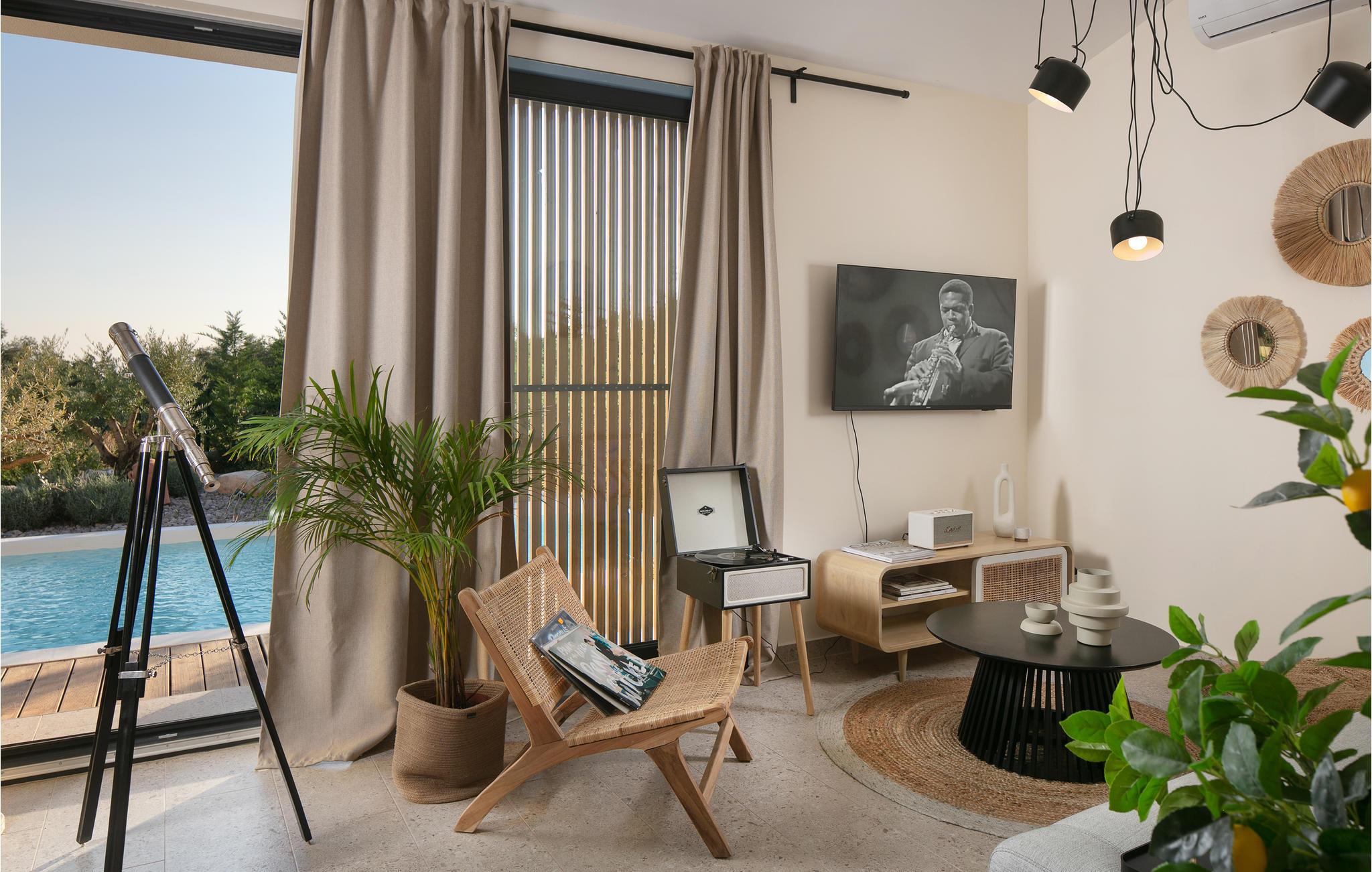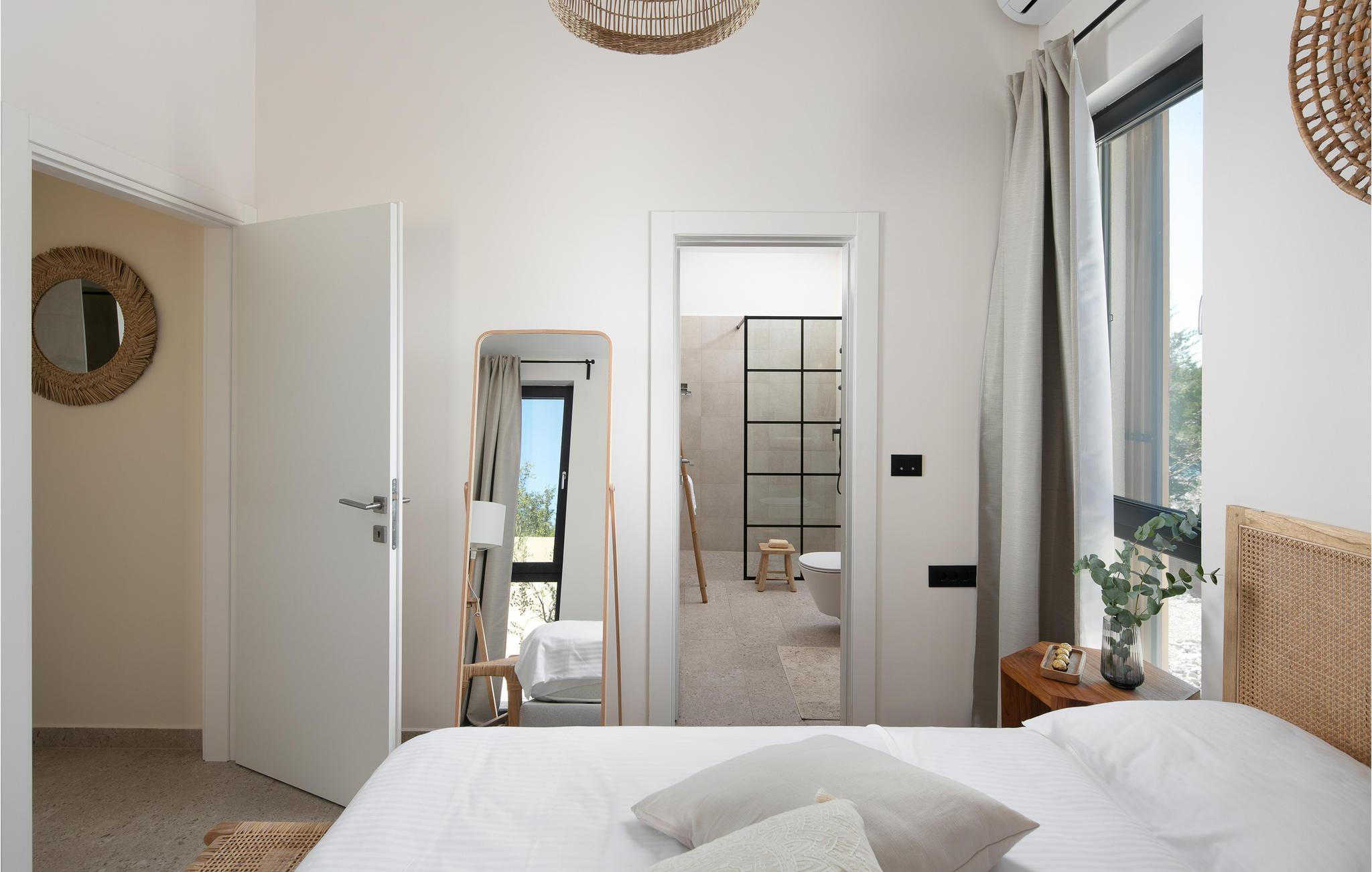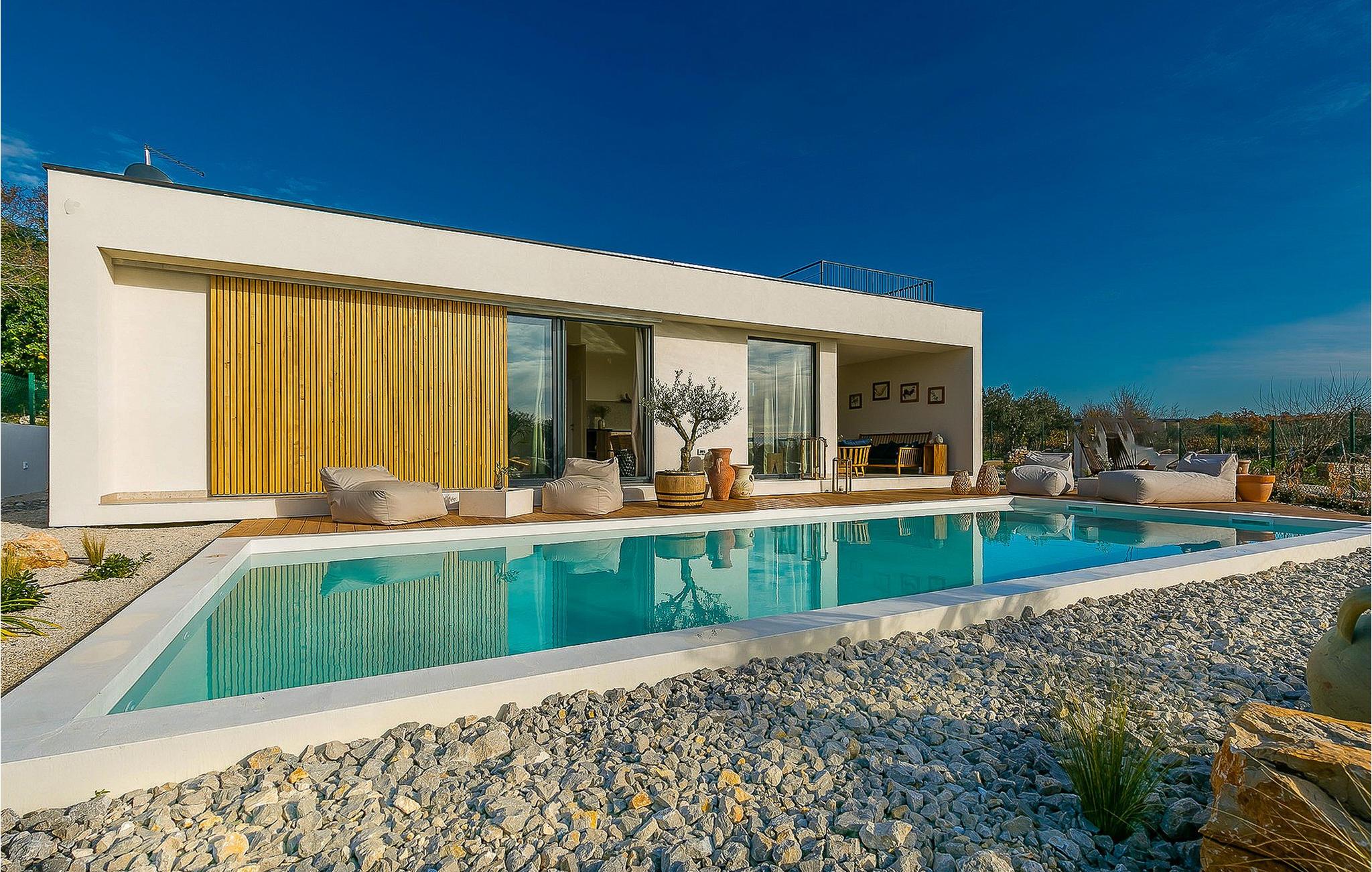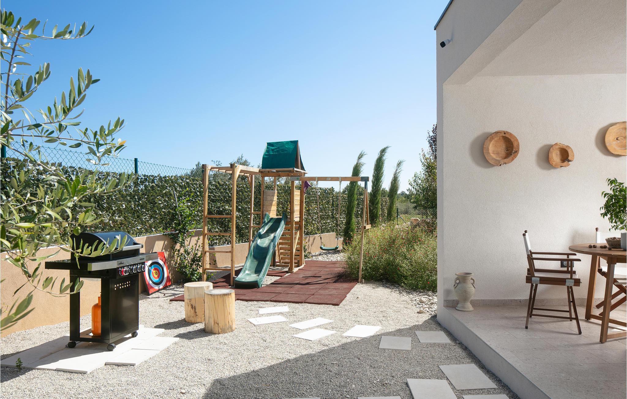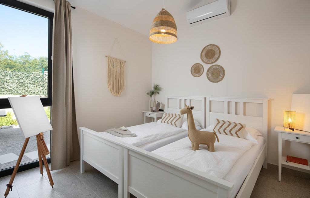 Stellen Sie sich einen perfekten Urlaub in einer ruhigen Umgebung und absoluter Privatsphäre vor? Wenn Ihre Antwort „Ja“ ist, dann ist Villa Eco genau das Richtige für Sie! Die Villa befindet sich in der Stadt Sv. Lovrec liegt im Herzen Istriens und ist als eines der wichtigsten Touristenziele bekannt, das Sie vollkommen begeistern wird. Gönnen Sie sich eine Auszeit vom hektischen Alltag und verbringen Sie diese mit Familie und Freunden in der wunderschönen Villa Eco! Die im Jahr 2023 im zeitgenössischen Baustil erbaute Villa bietet ihren Gästen 100 m2 Wohnfläche, während die Gesamtfläche des Grundstücks 800 m2 beträgt. In der Villa können maximal 5 Personen übernachten, die optimale Gästezahl beträgt 4. Sie ist voll klimatisiert und die Gäste werden bequem in den 2 Schlafzimmern im Erdgeschoss untergebracht. Ein Schlafzimmer verfügt über ein Doppelbett (160 x 200), während das andere Zimmer über 2 Einzelbetten (90 x 200) verfügt. Die Villa verfügt über ein eigenes Badezimmer mit Dusche und ein weiteres normales Badezimmer, ebenfalls mit Dusche. Eine fünfte Person kann auf der Couch im Wohnzimmer schlafen. Im wunderschön eingerichteten Wohnzimmer entspannen Sie auf der Couch, neben der sich ein Couchtisch, ein Stuhl und ein Fernseher befinden. Unweit des Wohnzimmers befindet sich natürlich das Esszimmer mit einem Esstisch für 4 Personen. Direkt neben dem Esszimmer befindet sich eine moderne Küche mit allem, was Sie brauchen, um mit Liebe Mahlzeiten für die ganze Familie zuzubereiten. Im Wohnzimmer finden Sie einen Plattenspieler, Bücher und ein Fernglas, sowie Brettspiele und eine Xbox. Vom Wohn- und Esszimmer aus haben Sie direkten Zugang zur Außenterrasse, die von einem wunderschön angelegten Garten und viel Grün umgeben ist, das Sie genießen werden. Das Schwimmen im 50 m² großen Swimmingpool ist nur einer der Vorteile, die die Villa Eco bietet. Der Pool ist 1,3 Meter tief und daneben befindet sich eine Liegewiese mit 4 Sonnenliegen, wo Sie Sonne tanken und Bücher lesen können. Außerdem gibt es auf der Terrasse einen Loungebereich, in dem Sie Ihren Morgenkaffee trinken können, und es gibt auch einen Gasgrill im Freien. Sie können die zubereiteten Speisen auf dem Esstisch im Freien probieren. Im obersten Stockwerk der Villa Eco haben Sie die Möglichkeit, sich auf der Dachterrasse mit Meerblick zu vergnügen, im Garten vor dem Haus gibt es zudem eine Feuerstelle mit Liegestühlen. Es ist ein idealer Ort, um abends bis spät in die Nacht mit Ihren Lieben unterwegs zu sein. Zu den weiteren Einrichtungen, die Sie während Ihres Aufenthalts in der Villa nutzen können, gehören eine Waschmaschine und ein Bügeleisen. Villa Eco ist komplett eingezäunt und bietet 2 Parkplätze außerhalb des Hofes. Kinder freuen sich über die Rutsche und Schaukel im Garten vor der Villa. Erwachsene haben die Möglichkeit, Tischtennis zu spielen. Außerdem gibt es ein Yoga-Deck und grüne Kisten mit Gemüse. Einige der interessanten Dinge, die die Villa Eco für Sie noch besser machen werden, sind, dass sie mit ihrem Konzept die Philosophie eines Lebens im Einklang mit der Natur beibehält, was bedeuten würde, dass das Haus von Olivenbäumen umgeben ist und in einem ruhigen Dorf liegt. Ebenso orientiert sich die Villa an der Plastikfrei-Regel und vermeidet die Verwendung von Plastik in jeglicher Form. Was Sie vielleicht am meisten erfreuen wird, ist die Tatsache, dass mit der Firma „Grow my tree“ eine besondere Partnerschaft geschlossen wurde und bei jeder Reservierung ein Baum mit dem Ziel der CO2-Reduktion gepflanzt wird, wofür die Gäste ein Special erhalten Zertifikat. *Bei den Nachbarn besteht die Möglichkeit, lokalen Wein und lokales Olivenöl zu kaufen, das von denselben Olivenbäumen hergestellt wird, die den Garten schmücken und die Villa Eco umgeben! Der Ort St. Lovrec liegt im westlichen Teil der Halbinsel Istrien und gilt als verstecktes Juwel und als eine der am besten erhaltenen mittelalterlichen Städte Istriens. Istrien bietet Ihnen wunderschöne Sonnenuntergänge, viele Möglichkeiten für Tagesausflüge und die Nähe zu Städten, in denen Sie zu Fuß oder mit dem Fahrrad fahren können. Ebenso können Sie in verschiedenen Tavernen oder Restaurants das perfekte gastronomische Angebot an hervorragenden Köstlichkeiten probieren, die jeden Gaumen erfreuen! Willkommen in der Villa Eco!