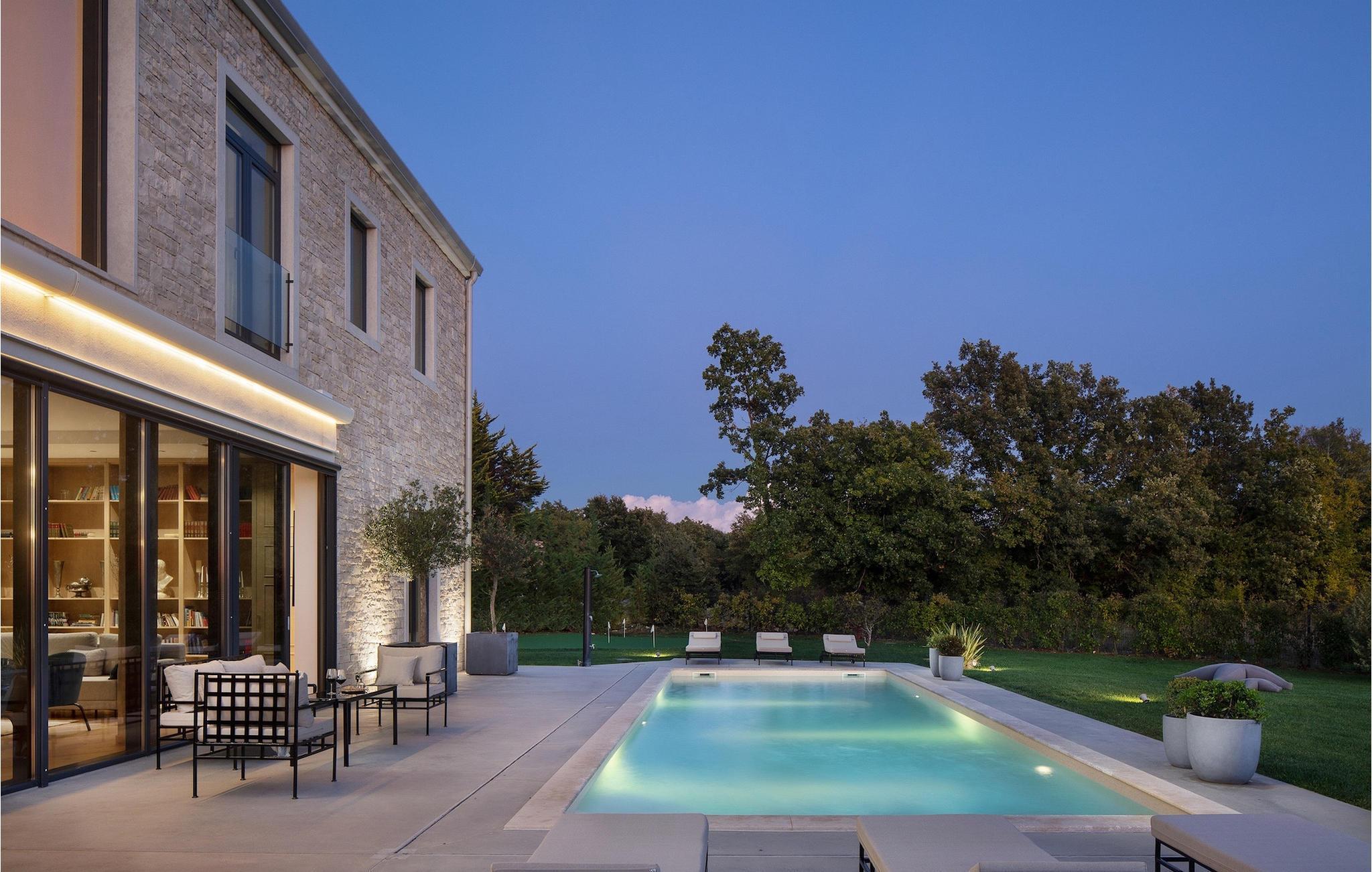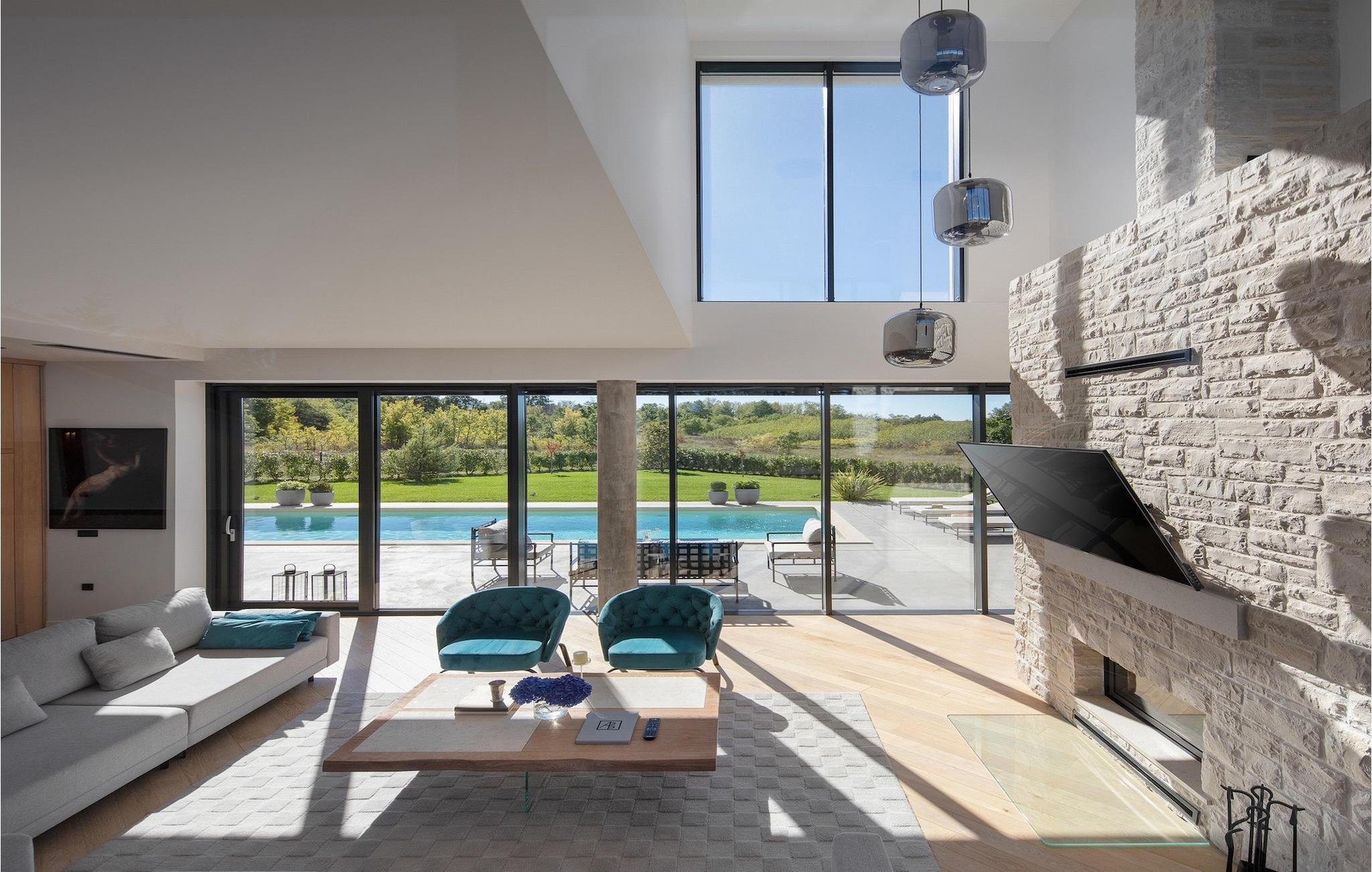 Die außergewöhnliche Villa Valens Residence, die aus autochthonen Materialen hergestellt wurde, spiegelt das kroatische Erbgut perfekt wider. Wenn Sie sich der Villa über die kreisförmige Auffahrt nähern, fällt sofort das herausragende Design der Villa auf - die Kombination aus traditioneller Steinfassade und großen Glasfronten. Im Inneren des Ferienhauses heißt Sie ein heller, offener Bereich willkommen. An jeder Ecke werden Sie einen Hauch zeitgenössischer Realität und moderner Ausstattung erkennen. Im Wohnzimmer können Sie in der kleinen Bibliothek durchstöbern, in die Werke kroatischer Autoren eintauchen oder einfach den Blick auf den Garten der Villa mit großem Pool genießen. An kälteren Tagen sorgt ein Kamin zusätzlich für eine gemütliche und romantische Atmosphäre. Dank der Glasfronten bietet sich im Esszimmer ebenso wie in der großräumigen Küche, von wo aus Sie direkt auf die Terrasse gelangen, wieder der schöne Blick auf den Außenbereich. Eines von vier komfortablen Schlafzimmern befindet sich im Erdgeschoss, die anderen im Obergeschoss. Alle haben ein eigenes Badezimmer mit ebenerdiger Dusche. Oben finden Sie auch einen großen Balkon mit Aussicht auf die umliegende Natur. Im Untergeschoss der Villa warten zwei versteckte Prachtstücke auf Sie - ein Fitnessraum mit finnischer Sauna für pure Entspannung sowie ein Entertainment-Bereich mit Billardtisch und Bar. Aber das ist noch nicht alles - neben dem erfrischenden Pool stehen Ihnen auf dem Grundstück der Villa eine Minigolfanlage und ein Kinderspielplatz zur Verfügung. Darüber hinaus können Sie leckere, istrische Delikatessen vom Grill im Essbereich im Freien genießen. Verbringen Sie eine unvergessliche Zeit im Geiste kroatischer Traditionen und buchen Sie die Villa Valens Residence für Ihren nächsten Urlaub.Die Villa Valence Residence befindet sich in der Gemeinde Tinjan, die reich an Kulturerbe ist. Darüber hinaus ist dieser Ort auch als "Gemeinde des istrischen Räucherschinkens" bekannt - probieren Sie diese gastronomische Spezialität. Beim Erkunden der Umgebung werden Sie auf zahlreiche traditionelle Gasthäuser stoßen, in denen Ihnen noch mehr lokale Delikatessen zur Auswahl stehen. Nach einer kurzen Fahrt erreichen Sie Pazin, das “Herz Istriens” wie es liebevoll genannt wird. Dort können Sie den malerischen Ausblick auf die mittelalterliche Burg, die auf einer Klippe liegt, bewundern. Nutzen Sie außerdem die vielen Wander- und Radwege in dieser Gegend aus oder, für Abenteuerlustige, fliegen Sie mit der Zipline über die Paziner Schlucht. Wenn Sie eher Entspannung suchen, machen Sie sich auf den Weg zu einem der schönen Strände in Vrsar. Die Lim-Bucht ist ebenfalls einen Besuch wert. Nicht zu vergessen, zwei bekannte Destinationen, Porec und Rovinj, liegen nicht weit von der Villa entfernt - Sie sollten unbedingt einen Tagesausflug dorthin in Betracht ziehen.