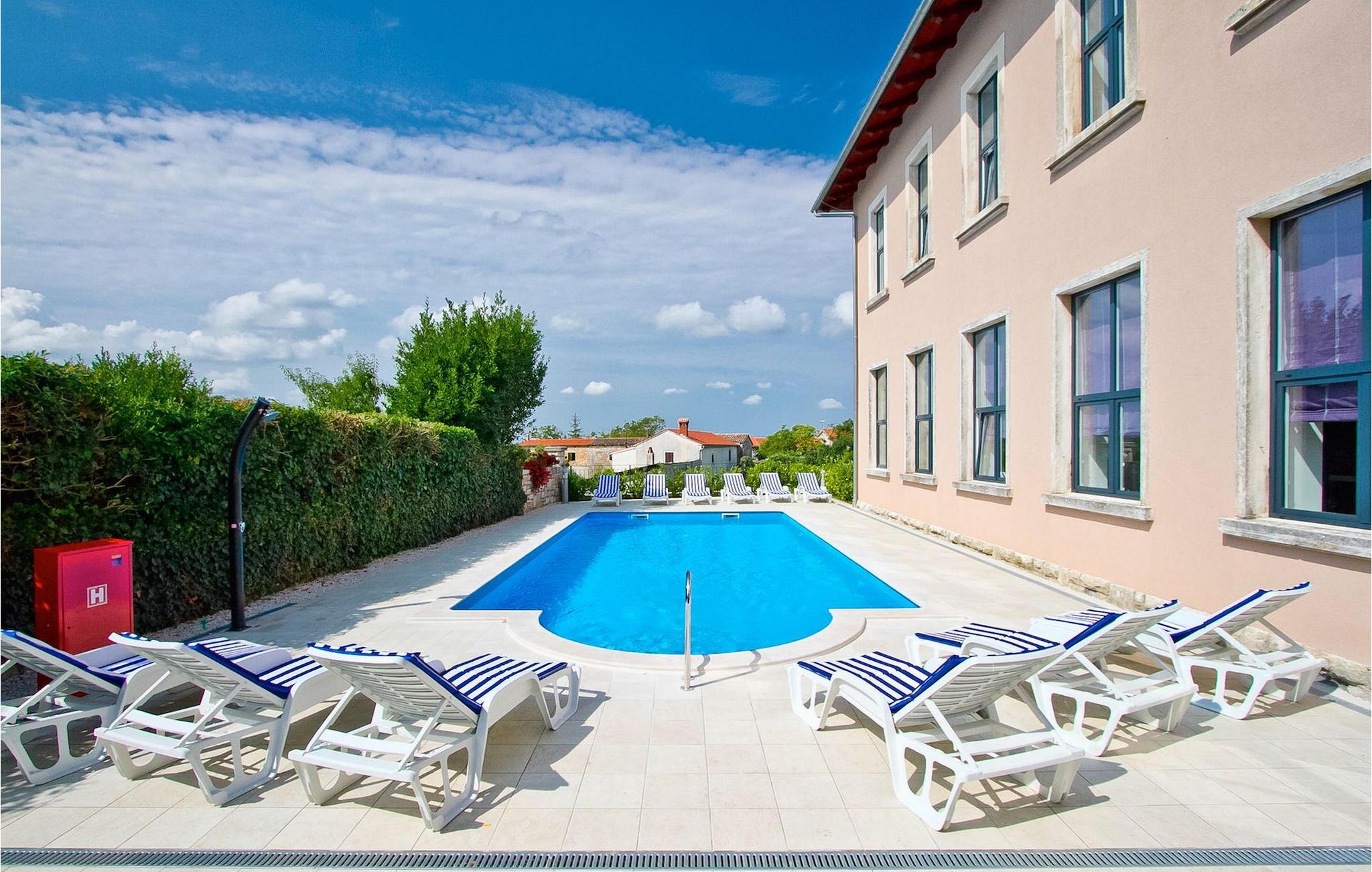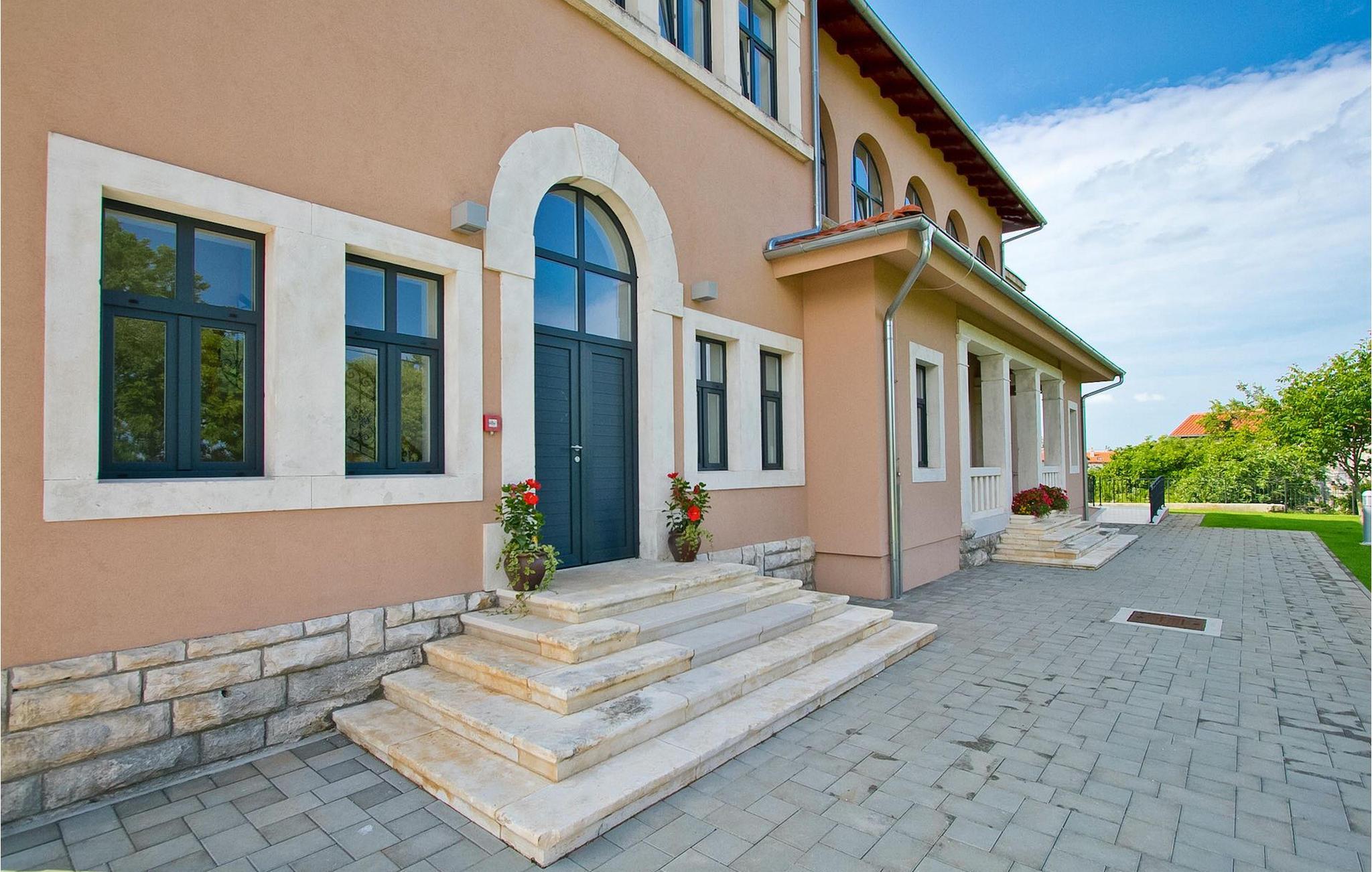In Zentralistrien befindet sich eine Villa mit einer sehr spezifischen Vorgeschichte. Die Hauseingangstreppen, die gewölbte Haustür und die Fensterreihen geben Ihnen bereits einen Hinweis - die Villa wurde vor 100 Jahren als Schulhaus errichtet und genutzt. Heute dient es als geräumige Urlaubsunterkunft, in welcher eine Gruppe von bis zu 22 Personen Platz findet. Bereits vom Vorhof aus können Sie einige gut erhaltene Details des ehemaligen Schulgebäudes erkennen. Dennoch werden Sie in den Innenbereichen auch einen Hauch Modernität entdecken. Die Ausstattung des gemütlichen Wohnzimmers sowie der Küche ist auf dem neuesten Stand. Neben der Küche, des Wohn- und Esszimmers befinden sich im Erdgeschoß außerdem noch 2 Schlafzimmer, die ein Badezimmer teilen - besonders geeignet für eine 4-köpfige Familie. Auf dem Weg in das obere Stockwerk können Sie beim Anblick des klassischen Treppenaufgangs mit dem eindrucksvollen Geländer wieder den Einfluss der “Alten Schule” erkennen. Oben angekommen, sehen Sie den überwältigenden Flur mit einer Reihe von Rundbogenfenstern. Von dort aus gelangen Sie in die restlichen 7 Zimmer, die jeweils ein eigenes Badezimmer haben und auf den Hintergarten hinausblicken, wo der private Pool der Villa auf Sie wartet. Gleich neben dem Pool können Sie es sich unter dem, mit Holz überdachtem, Grillplatz des Gartens gemütlich machen sowie den klassischen Steingrill nutzen - der perfekte Bereich zum Entspannen, Essen und einfach zum Genießen Ihres Urlaubs in Zentralistrien. Freuen Sie sich auf eine tolles Erlebnis mit altmodischem Charme sowie modernen Momenten und buchen Sie die Villa Old School House jetzt!