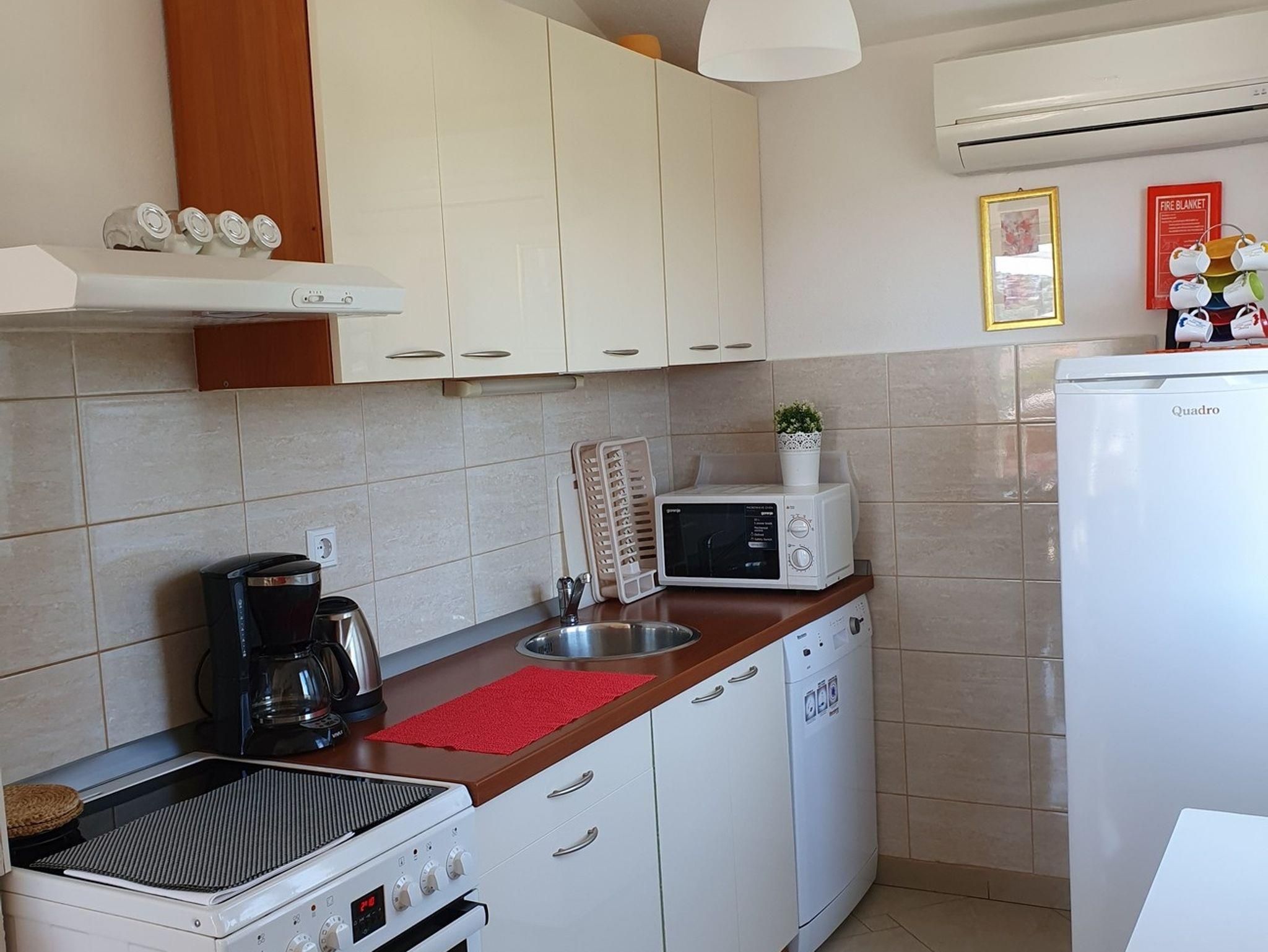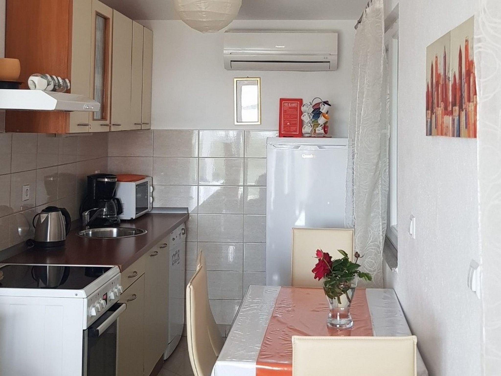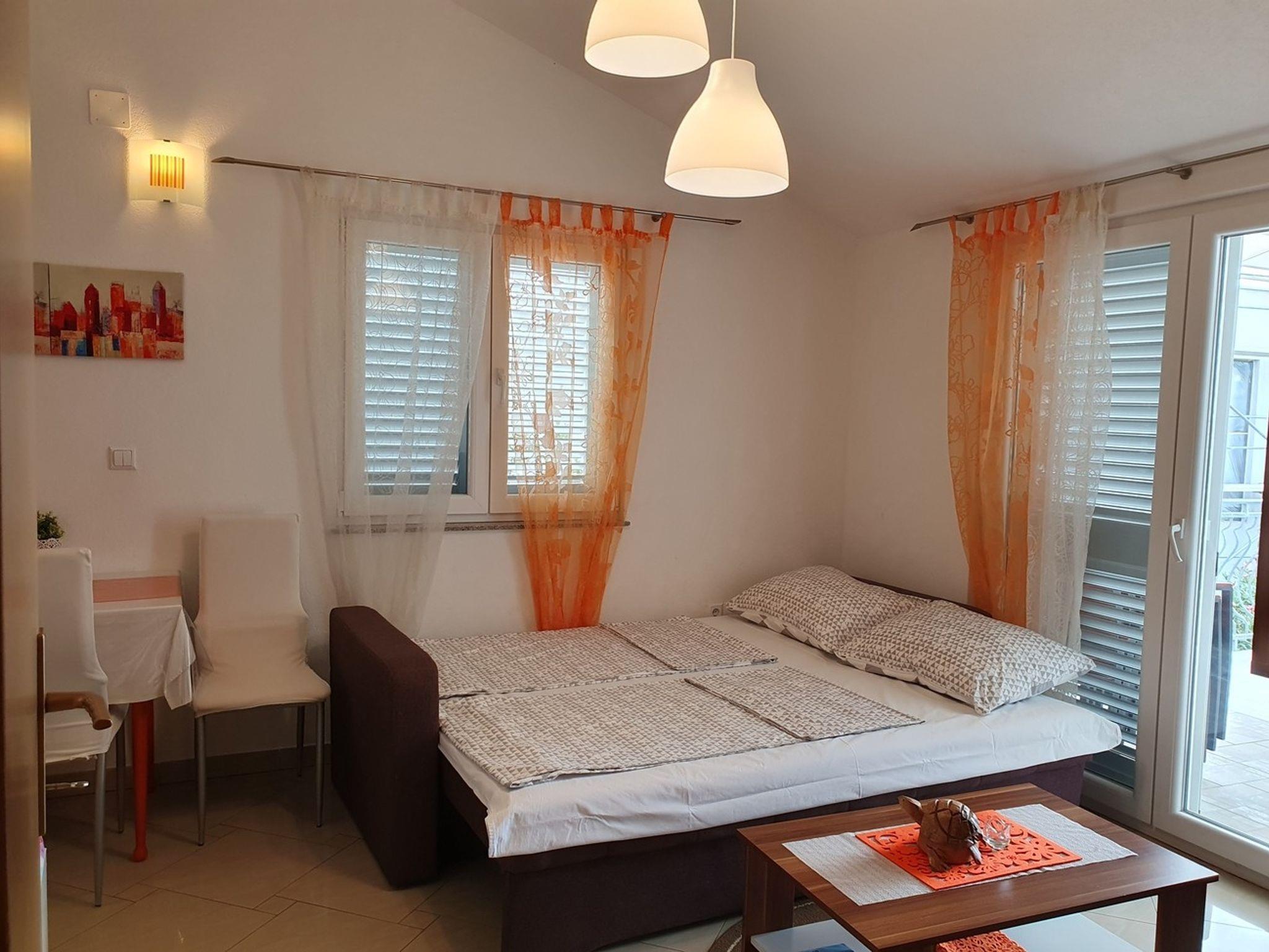 Ferienwohnung bietet Platz für 4 Gäste. Die Betten sind in Schlafzimmern, die es 1 gibt, und in Wohnzimmer, innerhalb einer Gesamtfläche von 33m2, angeordnet. Die Gäste haben eine eigene Terrasse zur Verfügung, auf der sie in warmen Sommernächten genießen können. Das Apartment bietet Meerblick. Es ist erlaubt, Speisen auf dem Gemeinschafts-Grill vorzubereiten. IM PREIS INBEGRIFFEN: Kurtaxe, Endreinigung, Klimatisierung, Parkplatz, Internet, Fahrrad, Bügeleisen, Bügelbrett, Föhn, Sonnenschirm. VERBINDLICHE ZUSÄTZLICHE KOSTEN: Aufzahlung für Kurzaufenthalte (prozentualer Zuschlag pro Nächtigungsanzahl: 30% - 1, 20% - 2, 10% - 3). Die Verfügbarkeit zusätzlicher Dienstleistungen in Ihrem reservierten Termin und die Preise derselben (falls nicht aufgeführt) müssen im Voraus überprüft werden. Zusätzliche Dienstleistungen die in der Zahlungsaufforderung nicht aufgeführt sind werden direkt beim Vermieter bezahlt, angenommen der Gast nutzt auch diese. Ermäßigung auf den Grundpreis: Gratistag 14=13 (bei einem Aufenthalt von 14 Tagen oder mehr erhalten Sie einen Gratistag für den Aufenthalt bis 31.12.26).