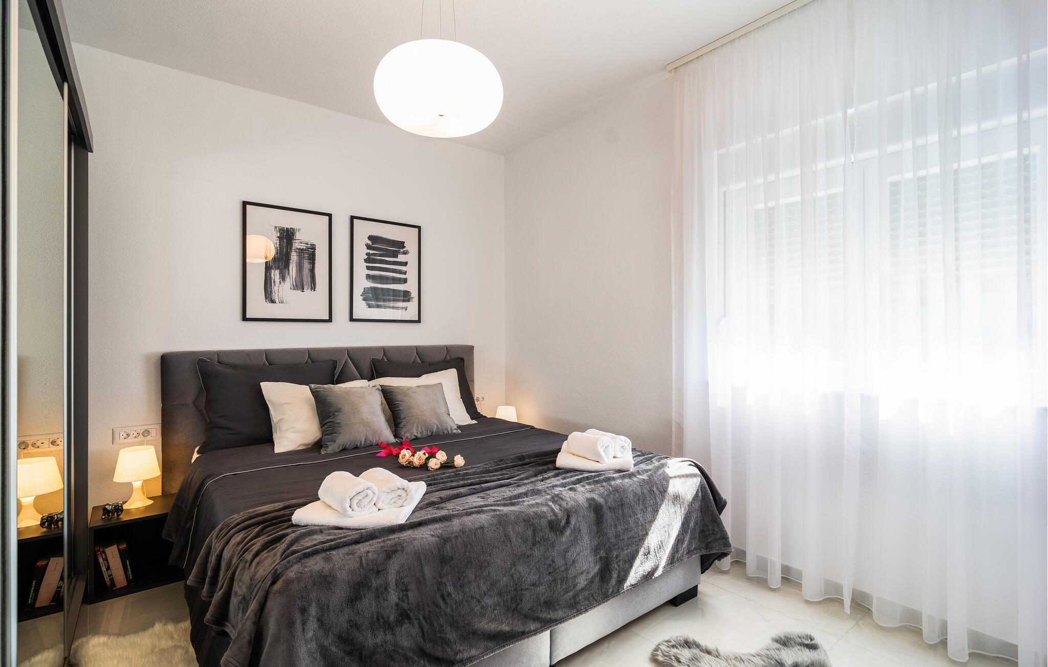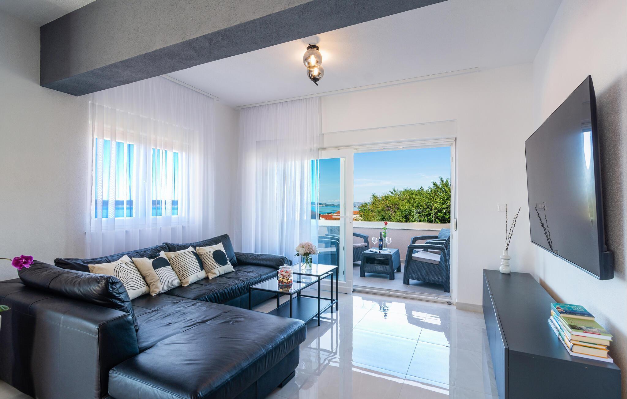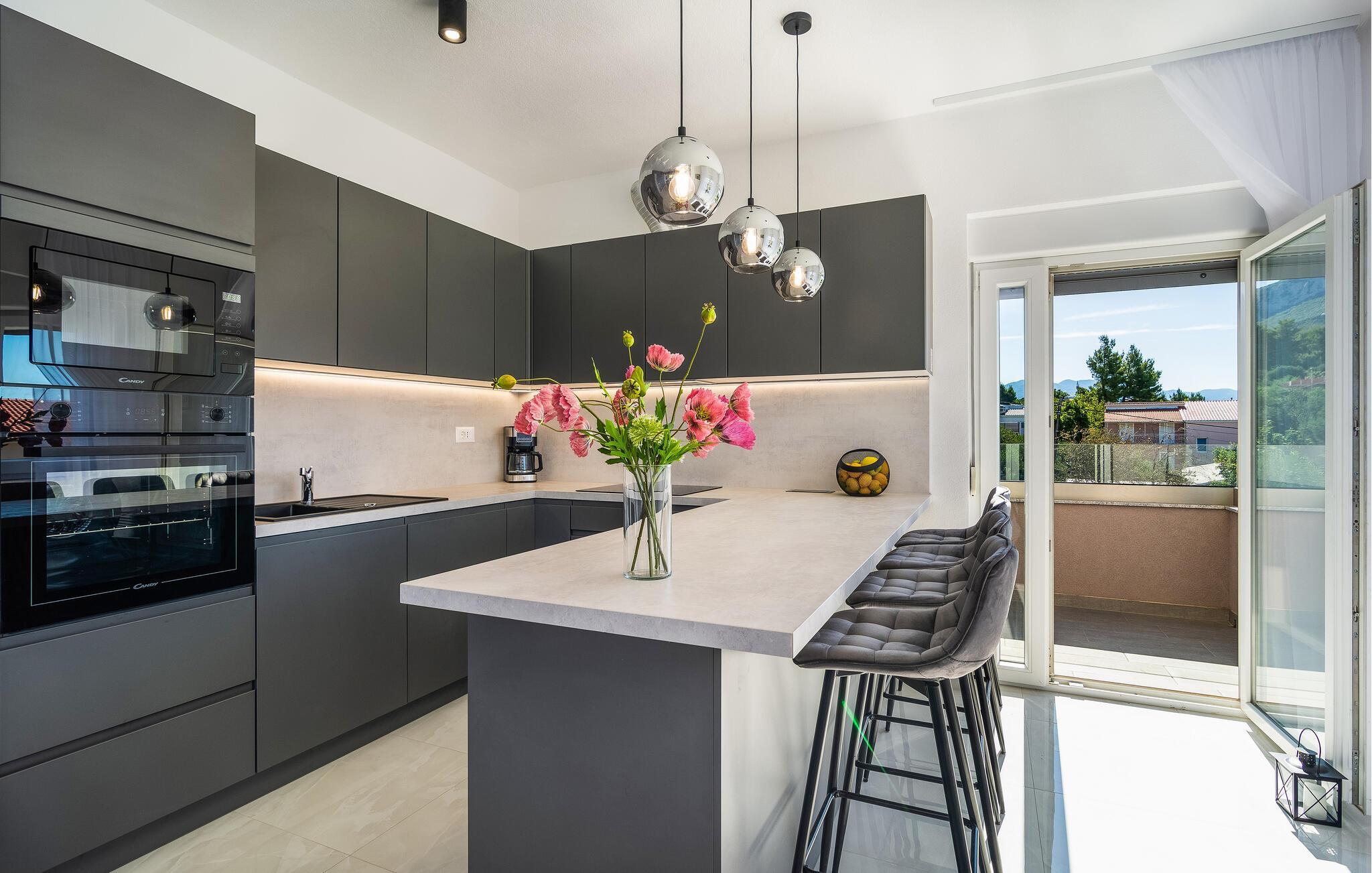 Verbringen Sie die schönsten Wochen des Jahres in diesem modernen Apartment, das sich im ersten Stock eines Familienhauses im Herzen des malerischen Dorf Kastel Gomilica befindet. Kommen Sie mit Ihrer Familie an und entdecken die schön eingerichteten Schlafzimmer und verweilen und kochen in der modernen Küche und Esszimmer. Kommen Sie im geräumigen Wohnzimmer zusammen und gelangen von dem großen Wohnraum auf den Balkon mit einzigartigem Blick auf das Meer. Wenn Sie Ihre Zeit aktiv verbringen möchten, bietet die Wohnung eine große Auswahl an Outdoor-Spielen, Spielzeug und Brettspielen.