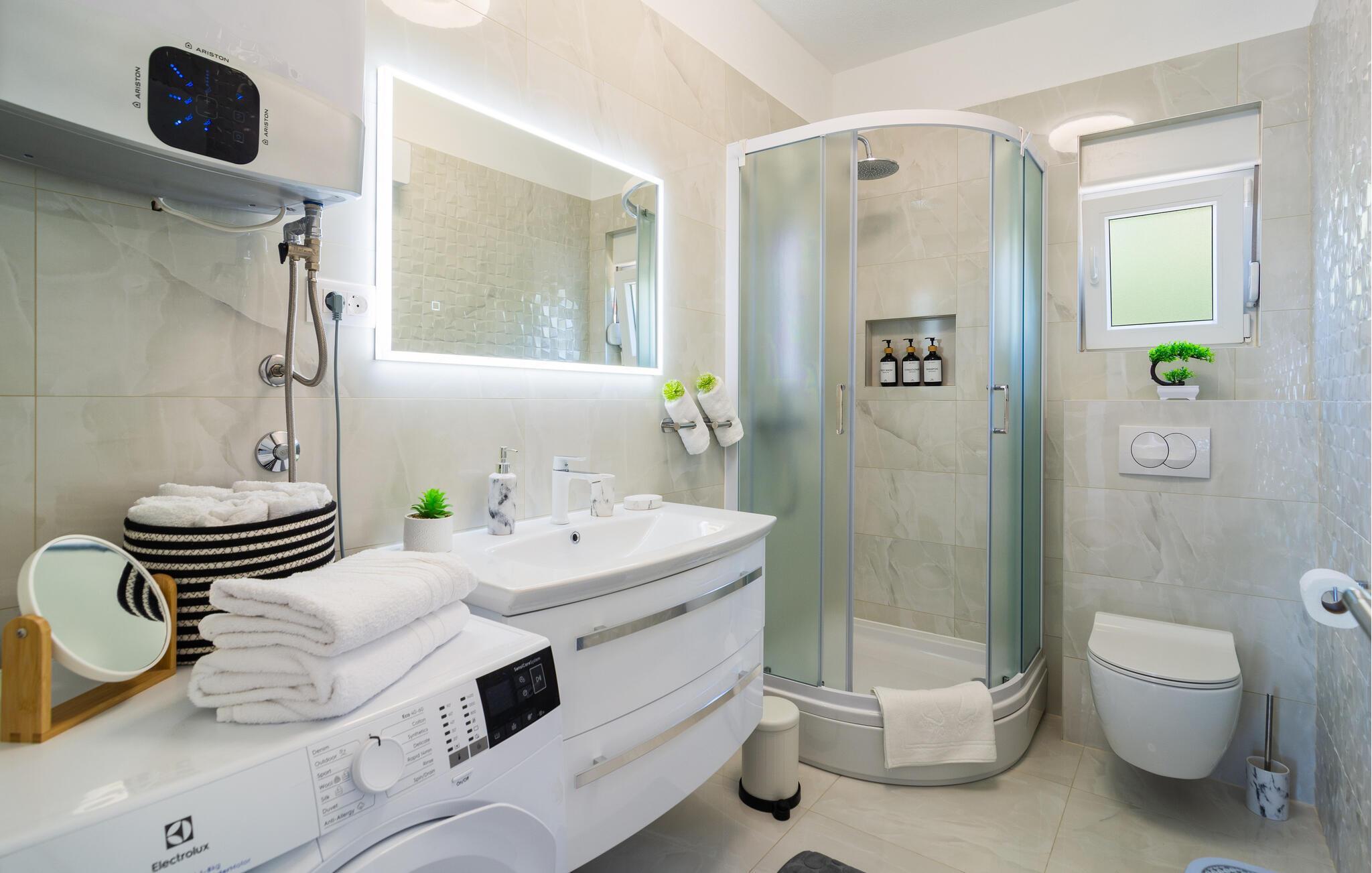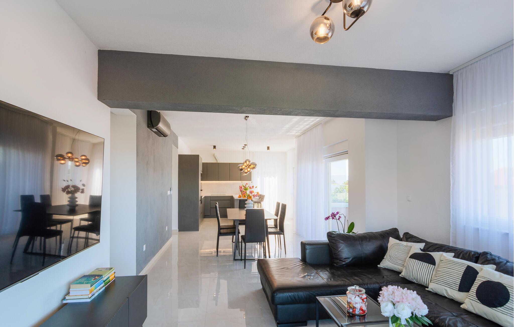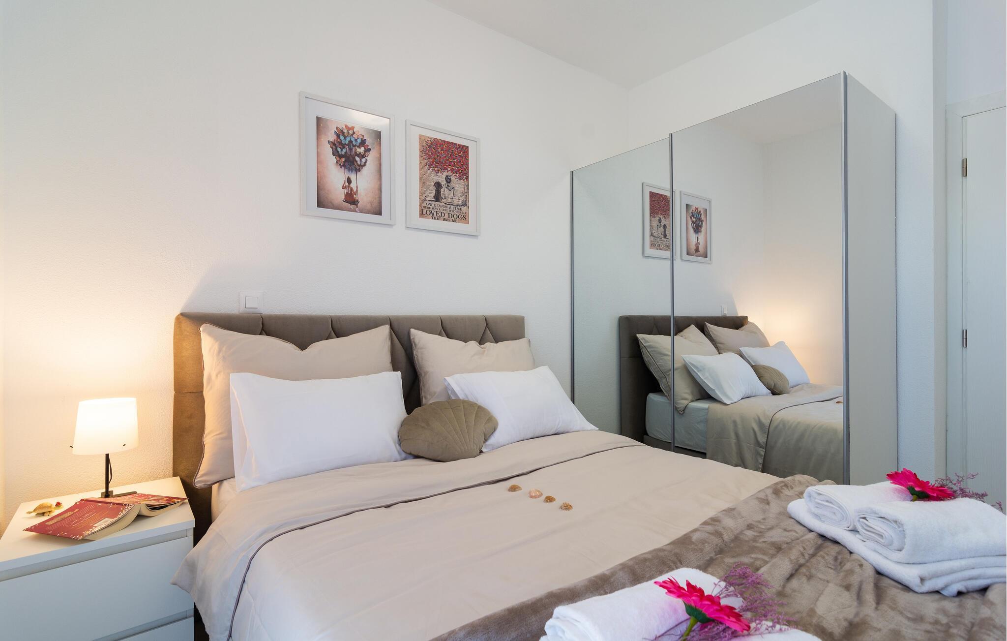 Verbringen Sie die schönsten Wochen des Jahres in diesem modernen Apartment, das sich im ersten Stock eines Familienhauses im Herzen des malerischen Dorf Kastel Gomilica befindet. Kommen Sie mit Ihrer Familie an und entdecken die schön eingerichteten Schlafzimmer und verweilen und kochen in der modernen Küche und Esszimmer. Kommen Sie im geräumigen Wohnzimmer zusammen und gelangen von dem großen Wohnraum auf den Balkon mit einzigartigem Blick auf das Meer. Wenn Sie Ihre Zeit aktiv verbringen möchten, bietet die Wohnung eine große Auswahl an Outdoor-Spielen, Spielzeug und Brettspielen.