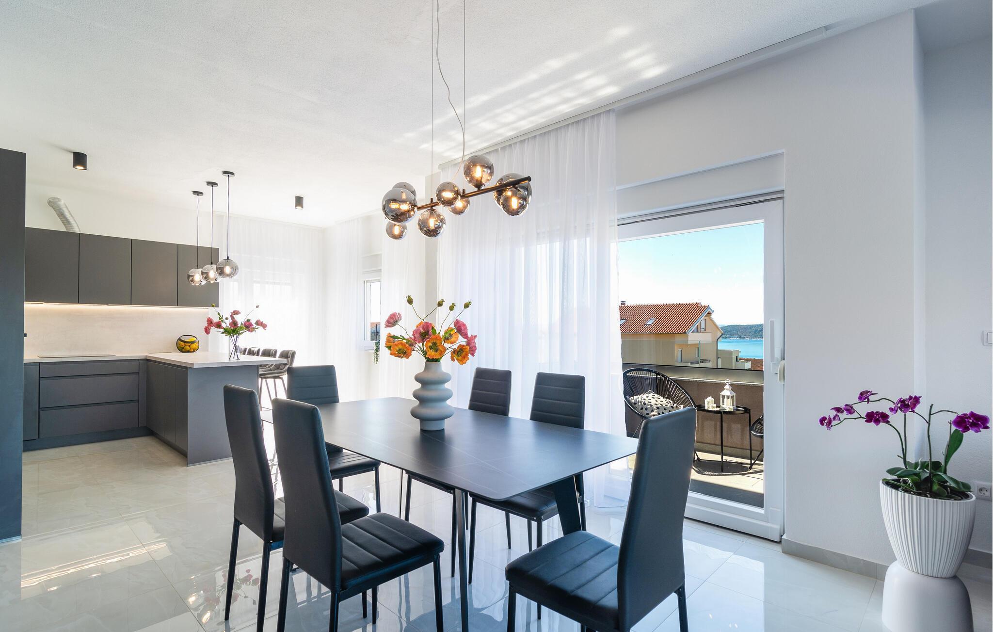 Genießen Sie Ihren Urlaub in dieser komfortablen und stilvollen Ferienwohnung mit Meerblick.