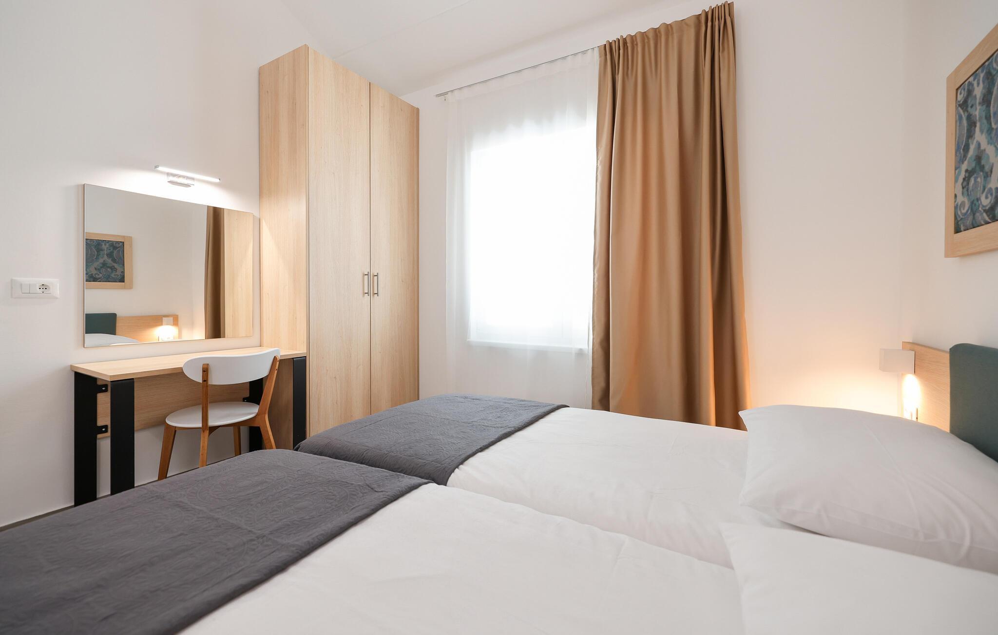 Die moderne Wohnung begrüßt Sie in idealer Lage nur wenige Schritte vom Meer entfernt in einem Apartmentkomplex. Genießen Sie hier schöne Tage mit Ihren Lieben. Nach einem herrlichen Tag am Strand oder auf einem Ausflug können Sie es sich im Wohnzimmer auf dem Sofa gemütlich machen, Ihre Erlebnisse noch einmal Revue passieren lassen und den Tag in angenehmem Ambiente entspannt beenden.