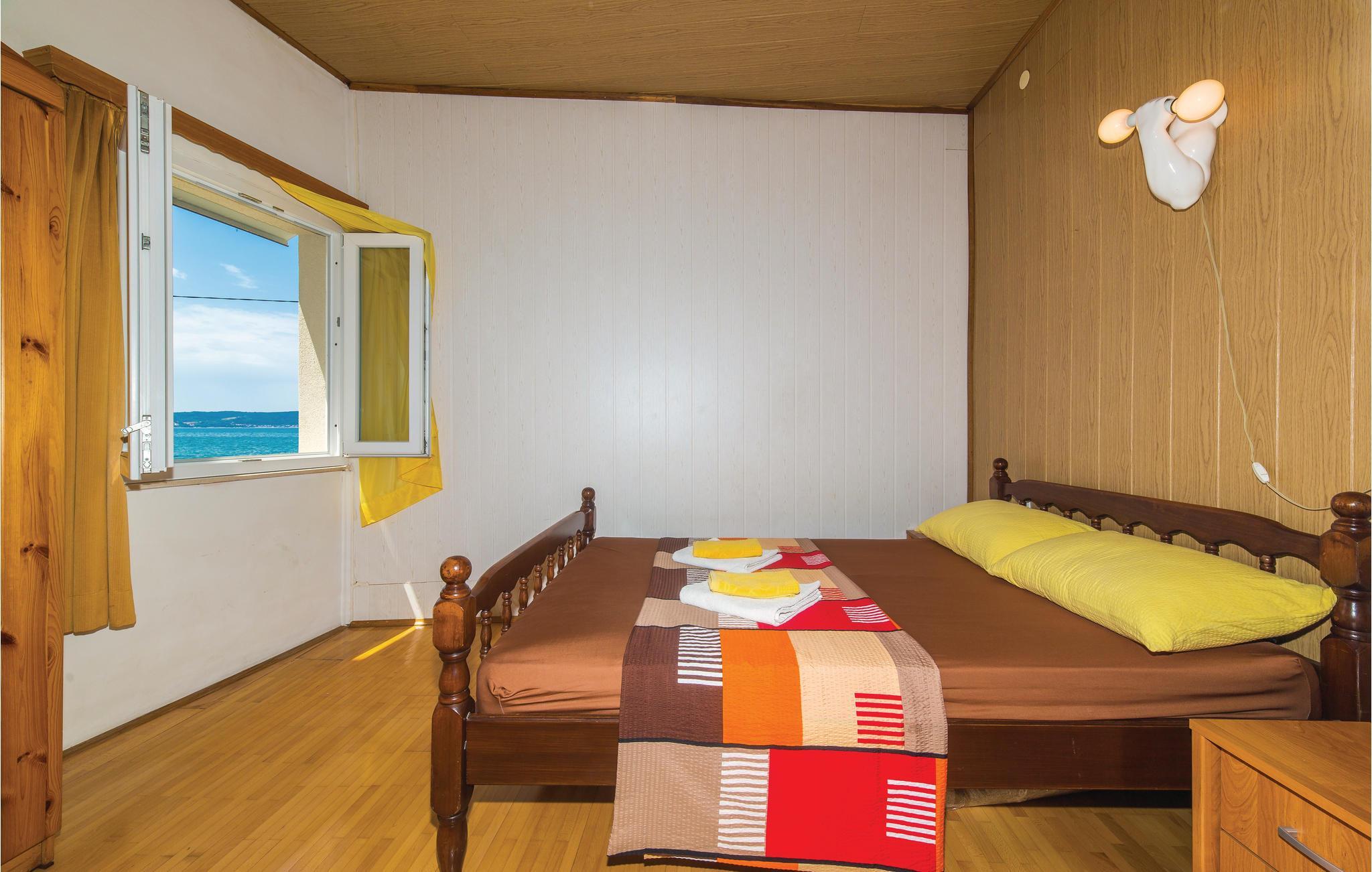 Im Zentrum eines kleinen Ortes in Dalmatien und direkt am Meer liegt diese funktionell eingerichtete Ferienwohnung. Sie erstreckt sich insgesamt über zwei Etagen, die durch eine Außentreppe miteinander verbunden sind. Draußen auf der Terrasse können Sie nicht nur Ihren Morgenkaffee sondern auch den Meerblick genießen. Entdecken Sie den schönen Kiesstrand und gute Restaurants im Ort sowie eine gepflegte Promenade. Besuchen Sie die historischen Städte Trogir und Split, die mit einer Vielzahl an Kulturdenkmälern sowie einem sehr guten Gastronomie- und Freizeitangebot immer wieder einen Besuch wert sind. Die niedrigste Deckenhöhe beträgt 150 cm.