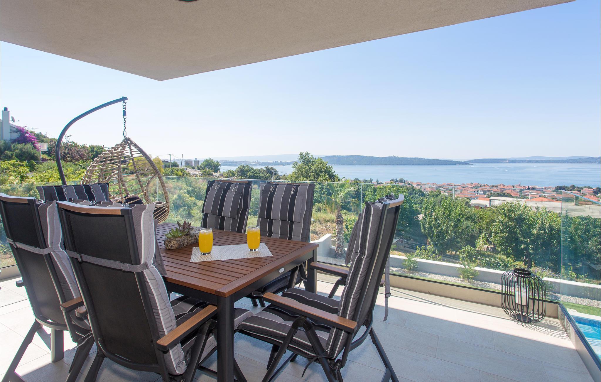 Zwischen Trogir und Split begrüßt Sie dieses großartige Ferienhaus. Die hochwertig und geschmackvoll eingerichteten Zimmer erstrecken sich über zwei Etagen und bietet Platz für selbst eine große oder für mehrere Familien. Hier finden Sie alles, was Sie für einen gelungenen Urlaub benötigen, denn das Haus bietet tolle Einrichtungen für Groß und Klein.