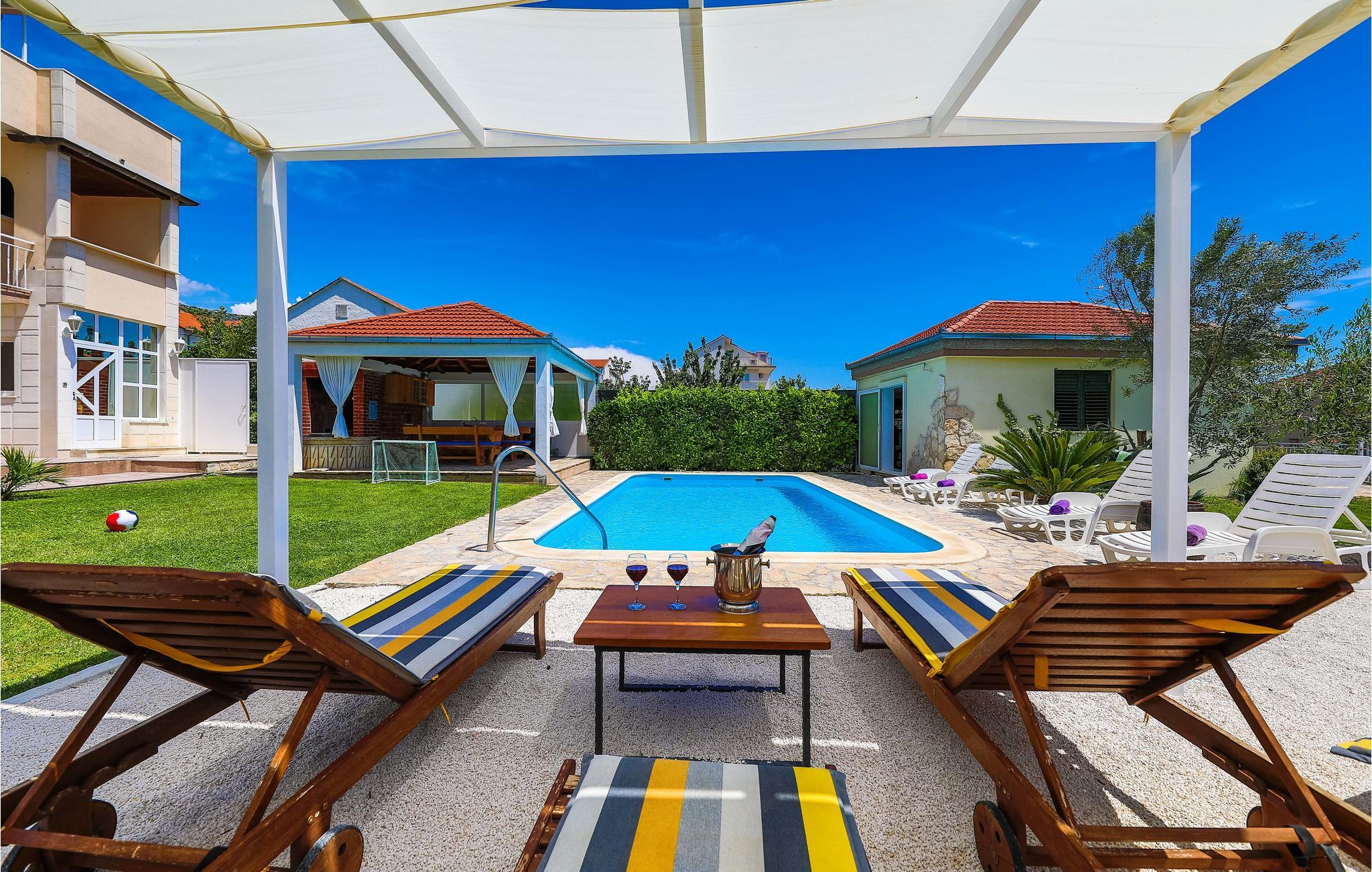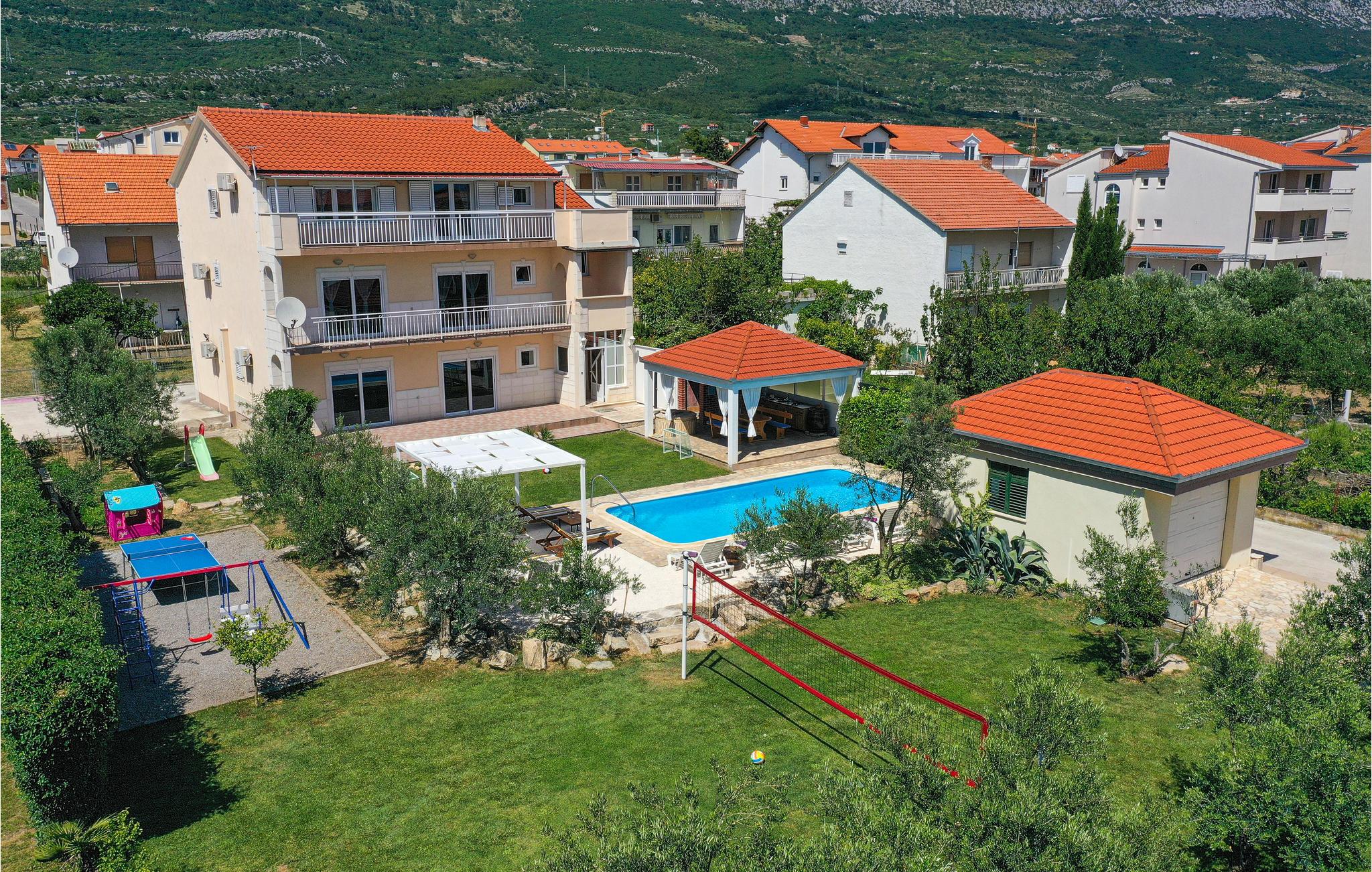 Auf einem großen Grundstück, im Ort Kaštel Lukšic, befindet sich dieses modern eingerichtete Ferienhaus, in dem Sie mit Ihren Lieben alles Notwendige f[r einen unvergesslichen Urlaub vorfinden. Die Wohneinheit umfasst ein Erdgeschoss, die erste Etage und ein hohes Dachgeschoss. Die Räume sind komfortabel eingerichtet und bieten auch Fitness, Billard und eine Sauna zum Entspannen. Vor dem Haus befinden sich der erfrischende Pool sowie die große Terrasse. Nur 12 km entfernt liegt die bekannte Stadt Trogir, mit vielen Sehenswürdigkeiten und interessanten Unterhaltungsprogrammen im Sommer. Auch die vielen Restaurants mit den Spezialitäten Dalmatiens sollten nicht unentdeckt bleiben.