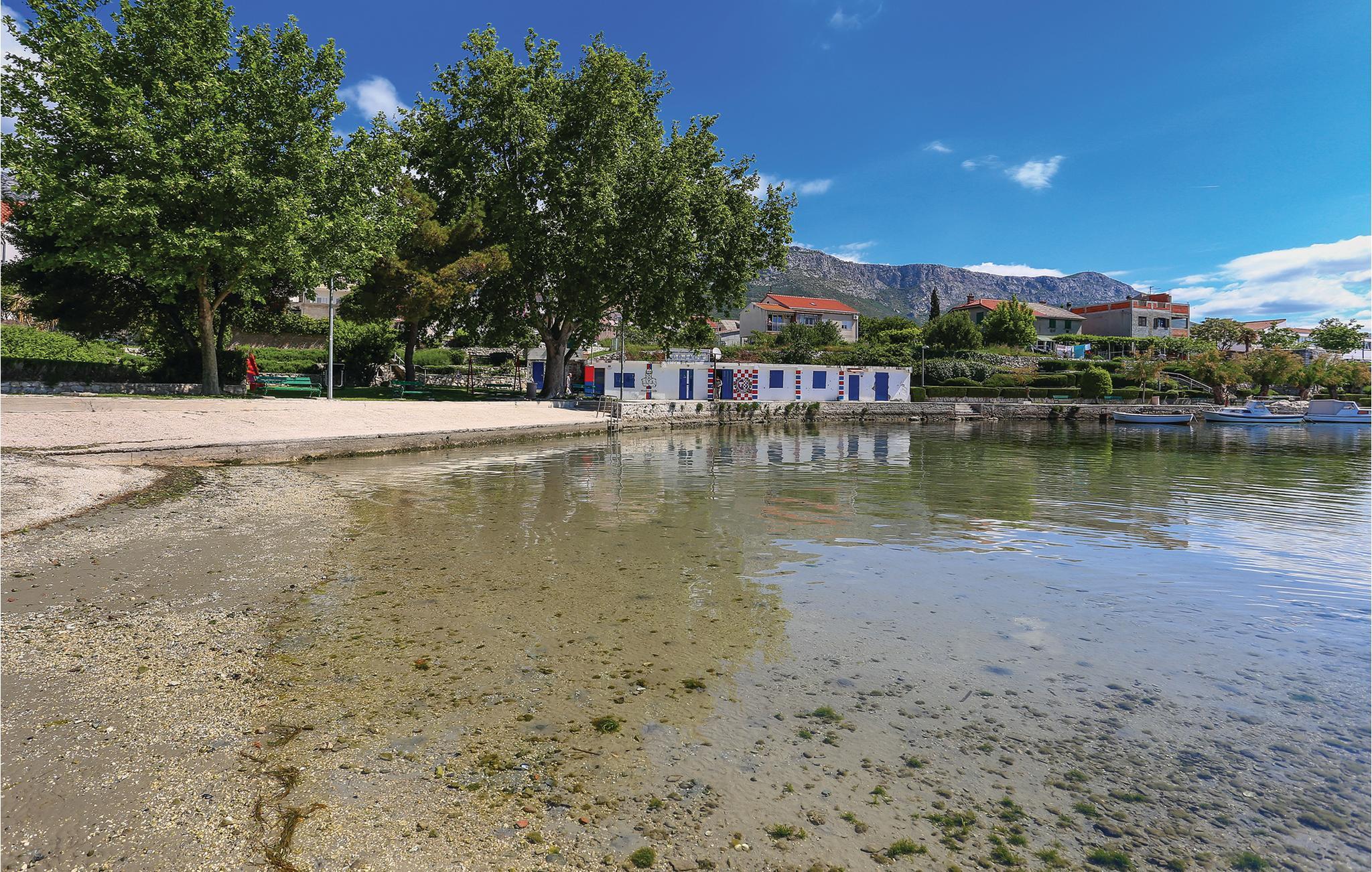 Hier wohnen Sie im Ort Kaštel Sucurac, der zu einem der insgesamt sieben Kaštelas zwischen Trogir und Split gehört. In der Altstadt befindet sich ein gut erhaltener Wehrturm sowie viele Restaurants und Cafés, in denen Sie köstliche Mahlzeiten und gute Weine in geselliger Runde probieren können. Sehenswert sind die Nachbarstädte Split, Solin und Trogir, die während der Sommermonate voller kultureller Veranstaltungen sind.