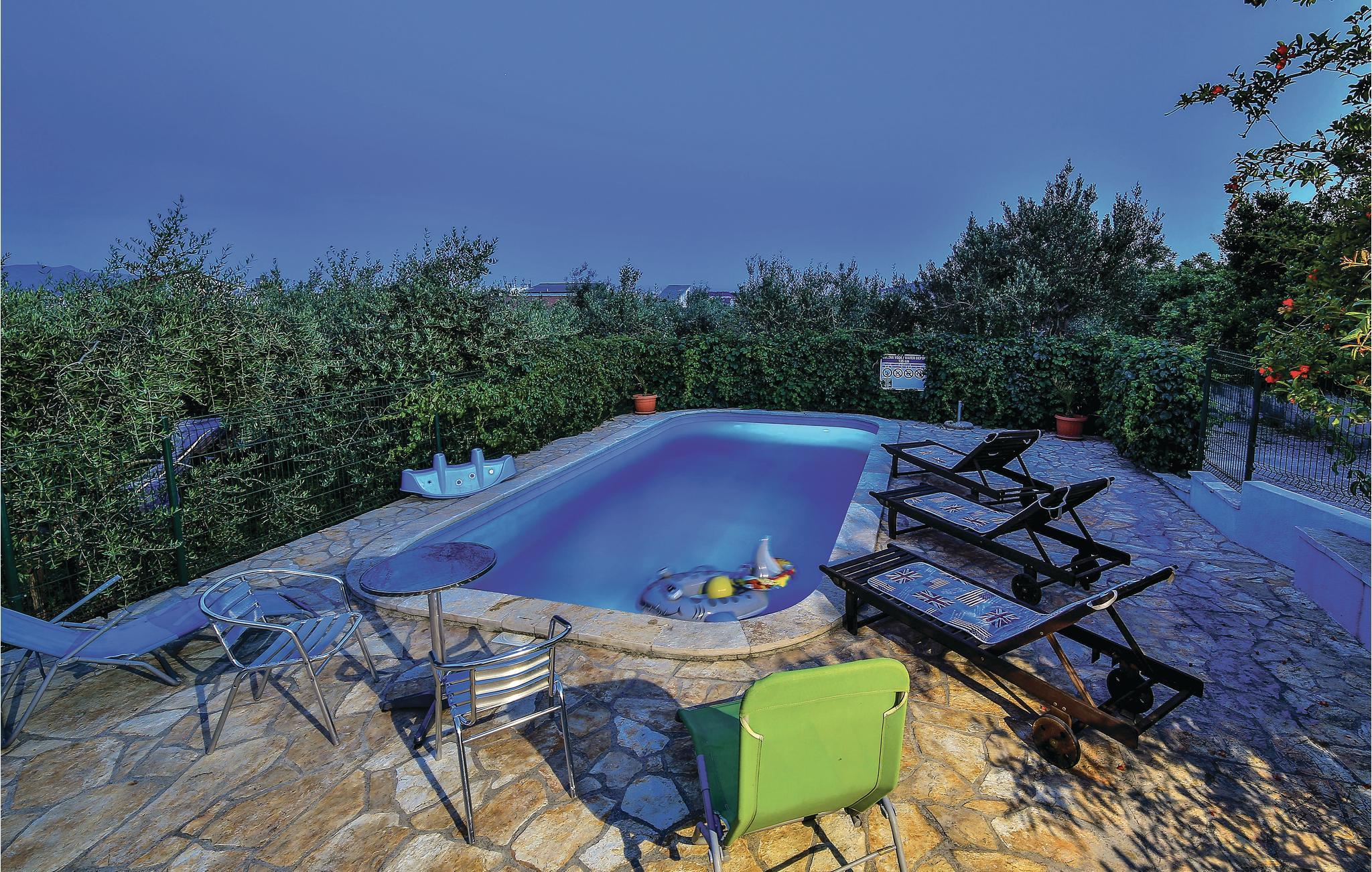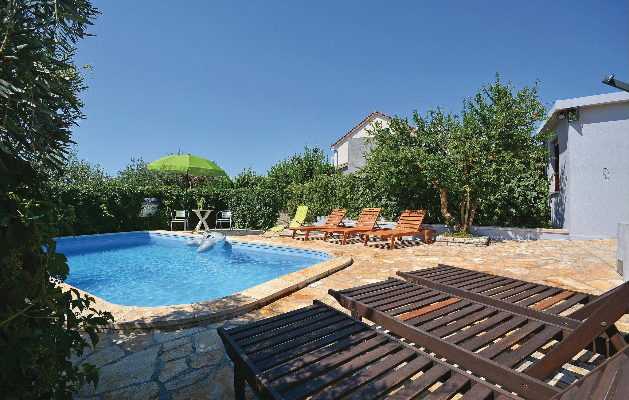 In der Wohnung steht Ihnen ein Schlafzimmer, eine kleine Küchenzeile und ein Badezimmer zur Verfügung. Die Einrichtung ist einfach aber gepflegt. Das Highlight des Hauses ist der schöne Pool mit Sonnenliegen, der gemeinsam mit den anderen Gästen der Anlage (Mai-Oktober) genutzt wird.