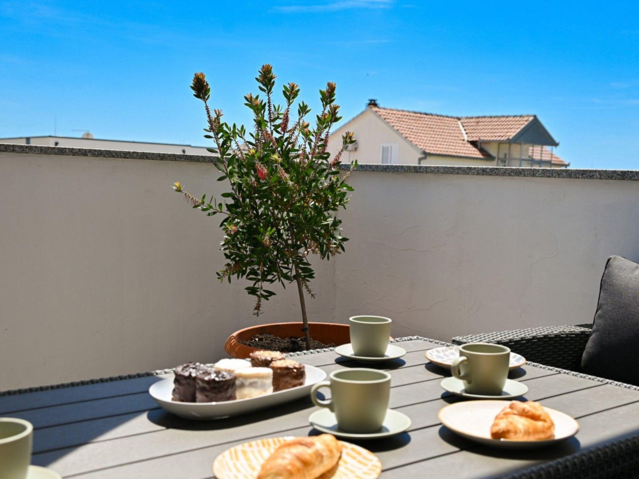 Das Hauptschlafzimmer verfügt über ein großes Doppelbett, während das zweite Schlafzimmer mit zwei Einzelbetten ausgestattet ist. Vom Wohnzimmer und der Küche aus gelangt man auf den großzügigen 30 m² großen Balkon, der mit Sonnenliegen, einem Sonnenschirm und Gartenmöbeln ausgestattet ist - perfekt, um die Sonne zu genießen, den Morgenkaffee zu trinken oder abends bei einem Glas Wein zu entspannen.