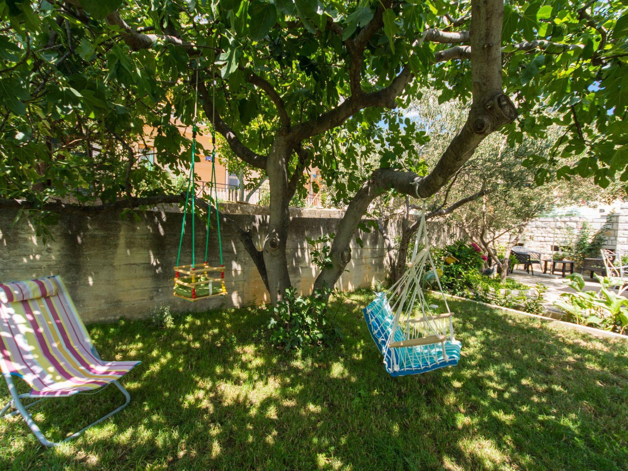 Geräumige Ferienwohnung mit eigener Terrasse und einem schönen, grünen Garten mit einem traditionellen Steingrill zur gemeinsamen Nutzung Diese modern eingerichtete, 160 m² große Ferienwohnung liegt nur 7 Gehminuten von der Altstadt von Trogir entfernt. Der nächstgelegene Strand ist nur 0,5 km von der Wohnung entfernt.