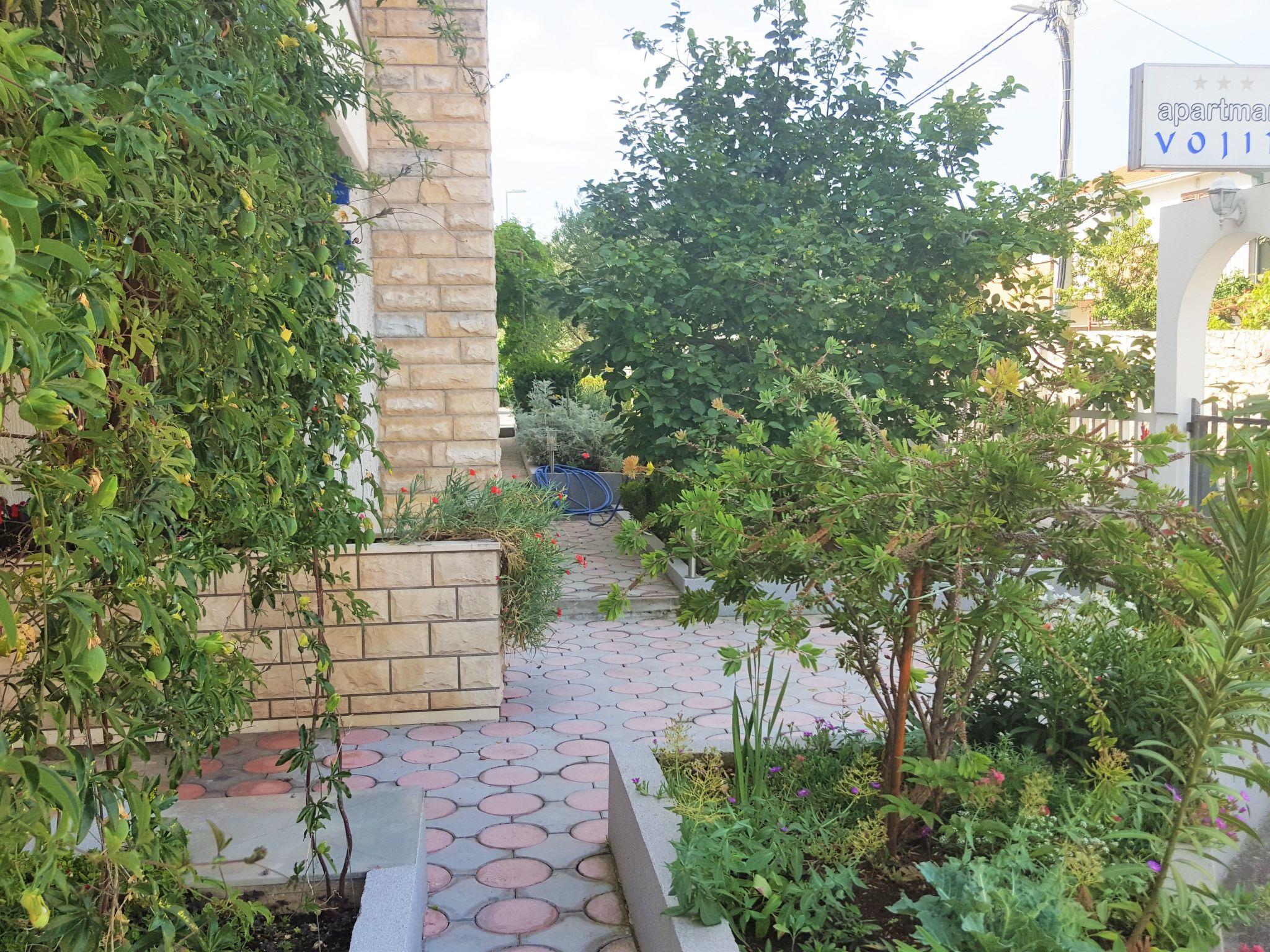 Voll ausgestattete Wohnung mit einem Schlafzimmer, privatem Balkon und gemeinsamem Garten mit Sonnenterrasse Diese Ferienwohnung befindet sich in der dalmatinischen Küstenstadt Okrug Gornji, nur etwa zwei Gehminuten vom Strand, Geschäften, Restaurants, einer Bäckerei usw. entfernt.