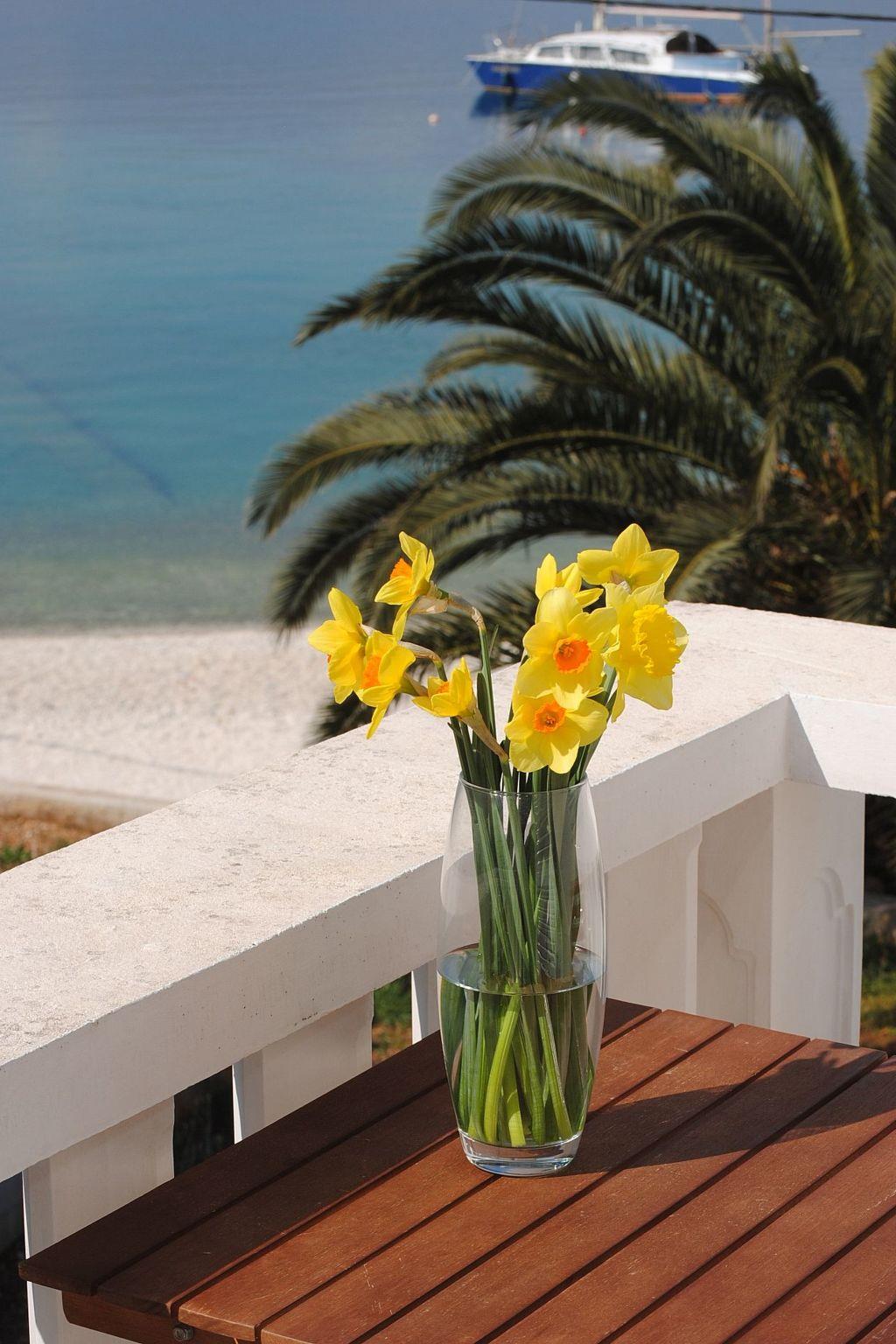 Draußen lädt die schöne Terrasse des Apartments zum Entspannen ein und bietet einen atemberaubenden Blick auf den Hafen und den Strand von Okrug Gornji. Es ist der perfekte Ort, um den Tag mit einem Morgenkaffee zu beginnen oder am Abend bei einem Glas Wein zu entspannen, während Sie den Sonnenuntergang am Himmel beobachten.