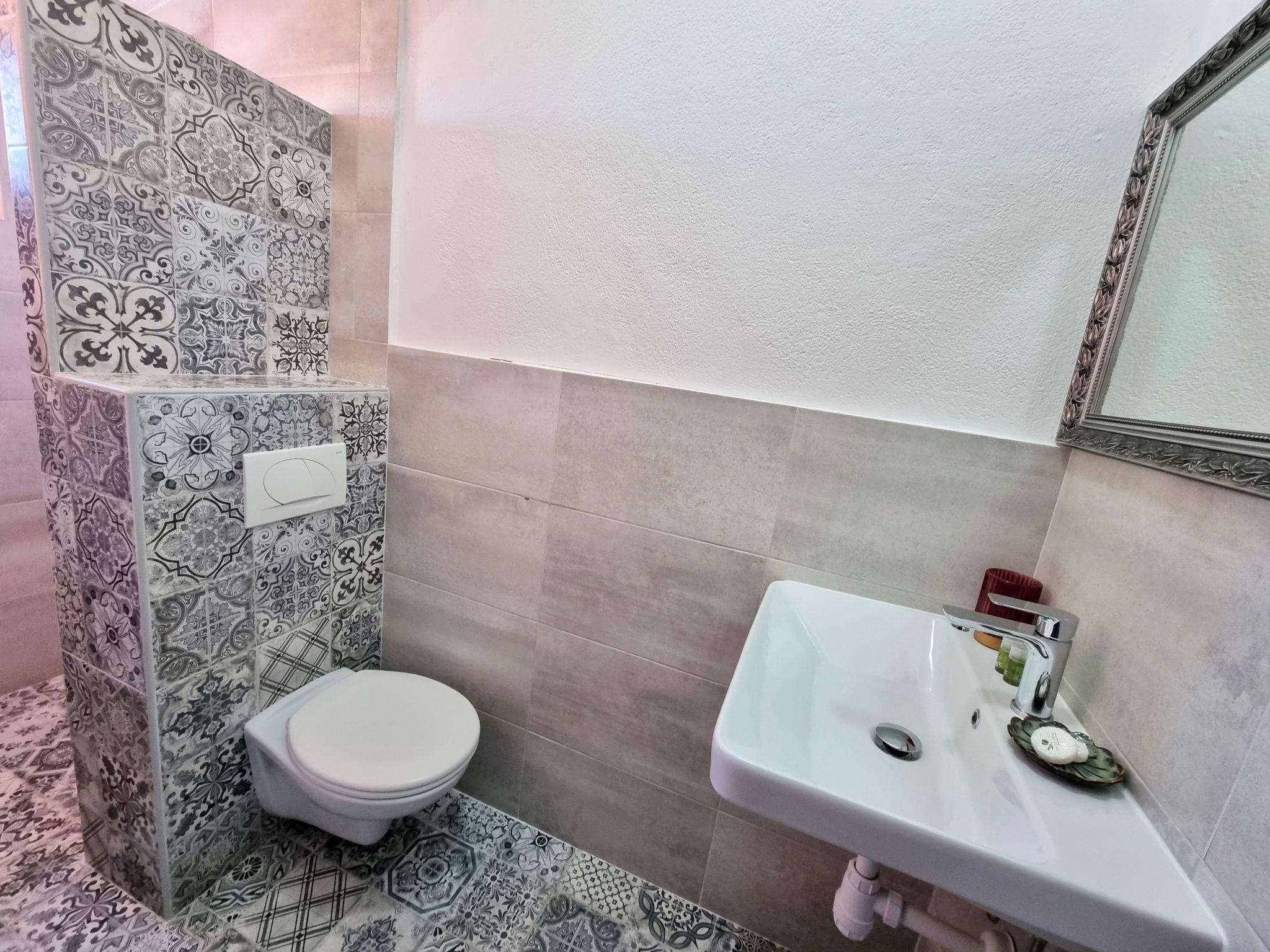 Der Betonstrand ist 150 m vom Grundstück entfernt und das Meer ist tief, aber für diejenigen, die nicht sehr gute Schwimmer sind, gibt es einen flachen Strand 200 m vom Grundstück entfernt in der Nähe der Bar Kaktus.