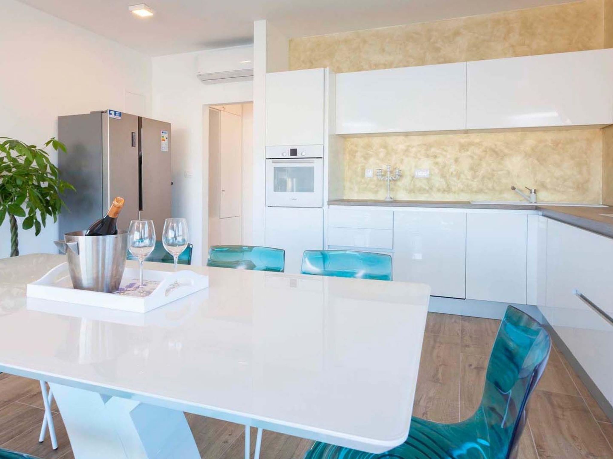 Der schöne Meerblick von der geräumigen und komfortablen Terrasse am Pool trägt zum Gefühl eines idyllischen Urlaubsortes bei. Die Wohnung befindet sich im Erdgeschoss des Hauses und hat eine Fläche von 150 m2. Die Gäste haben Zugang zu einer voll ausgestatteten Küche, klimatisierte Zimmer, Wohnzimmer und Essbereich, zwei Bäder mit Dusche, 1 separates WC und einen herrlichen Balkon mit Meerblick (30 m2) mit Gartenmöbeln für 6 Personen. Ein kostenloser Privatparkplatz ist ebenfalls vorhanden. Wohnung Solis bietet Liegeplatz für Motorboote auf Anfrage.