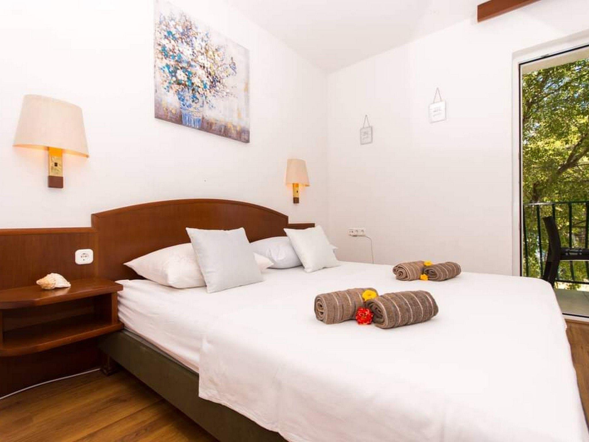 Die Apartments Esthera befinden sich in einem Familienhaus, das aus insgesamt 6 Apartments besteht: 4 Appartements mit einem Schlafzimmer (Eshtera 1, Studio Esthera 2, Esthera 4 und Esthera 5) und 2 Appartements mit zwei Schlafzimmern (Esthera 3 und Esthera 6); mit einer Gesamtkapazität für bis zu 21 Personen im gesamten Haus.Appartement Esthera 3 befindet sich im ersten Stock und hat eine Wohnfläche von 35 m2. Es besteht aus 2 Schlafzimmern (eines mit einem Doppelbett und eines mit einem Einzelbett), einem Bad mit Dusche und einer Kochnische. Beide Schlafzimmer haben Zugang zu einem Balkon mit Meerblick, der mit einem Esstisch und Stühlen ausgestattet ist. Das Apartment Esthera 3 ist mit Klimaanlage (in einem Schlafzimmer), SAT-TV, Wi-fi Internet, Safe, Jalousien, Elektroherd, Mini-Kühlschrank mit Gefrierfach, Mikrowelle, Kaffeemaschine, Wasserkocher, Toaster, Grillausrüstung und Haartrockner ausgestattet.