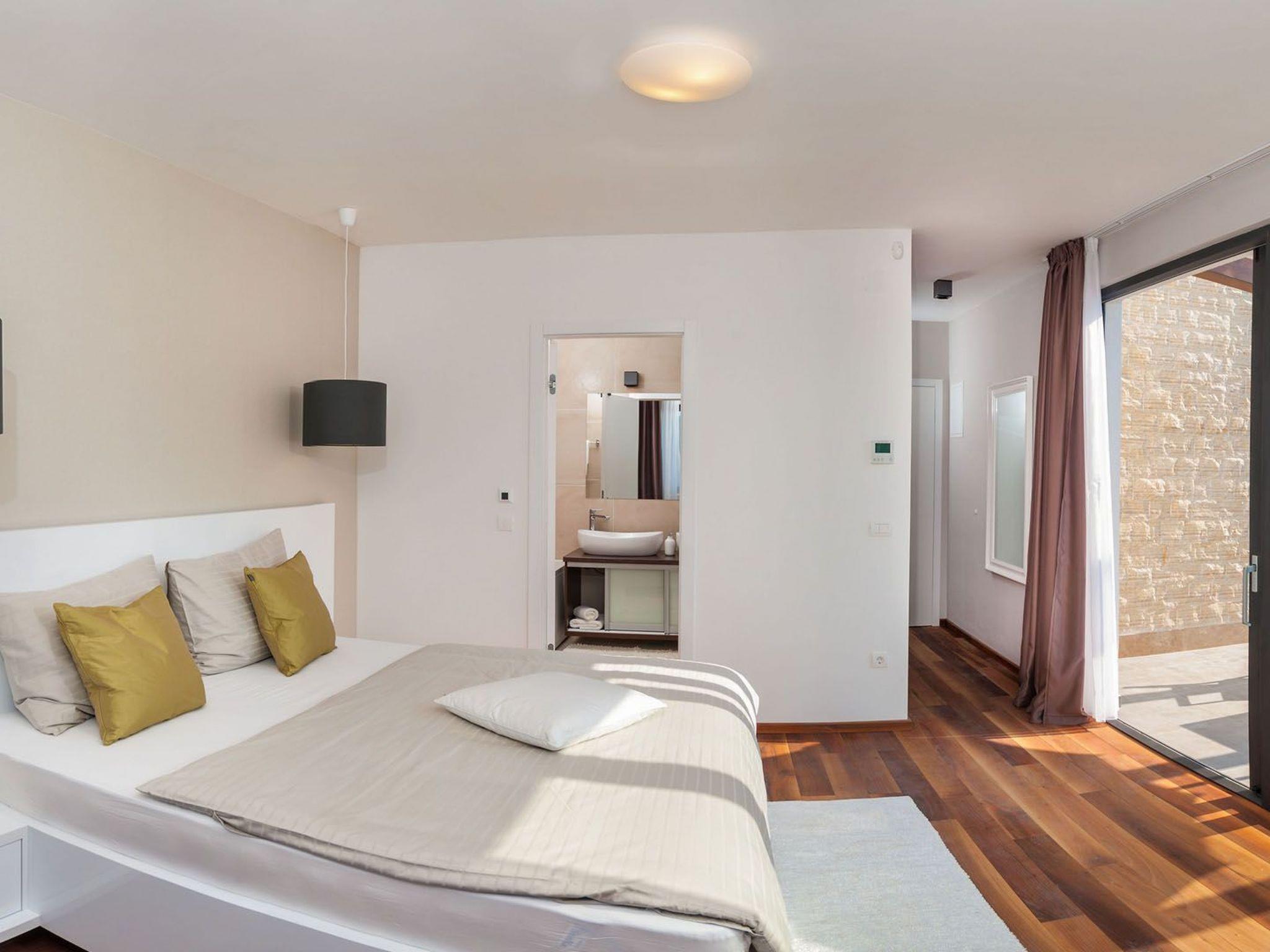 Die Villa Calla besteht aus 6 Schlafzimmern, 7 Badezimmern, 1 Halbbad, Fitnessraum und Sauna und kann bis zu 11 Personen beherbergen, was diese exklusive Residenz zu einer idealen Wahl für große Familien und größere Gruppen macht. Diese wunderbare Villa, die 2015 gebaut wurde, hat eine moderne und offene Einrichtung, die unseren Gästen Komfort, Privatsphäre und das Gefühl bietet, in einer kleinen, luxuriösen Oase zu sein. Das Grundstück selbst umfasst 600 m2, während das Haus auf dem Keller, Erdgeschoss, ersten Stock und hohen Dachboden aufgeteilt ist. Das Untergeschoss der Villa Calla ist als Erholungsraum mit Fitnessraum, finnischer Sauna und einem Billardtisch konzipiert. Das Erdgeschoss besteht aus einem luxuriösen und eleganten offenen Wohnzimmer mit einem großen Esstisch für 10 Personen und einer voll ausgestatteten Küche. Die erste Etage und das hohe Dachgeschoss sind als Ruhebereich mit sechs klimatisierten Doppelzimmern und einem Einzelzimmer mit eigenem Bad konzipiert. Das Hauptschlafzimmer hat Zugang zur großzügigen Terrasse mit Tisch und Stühlen im Freien, einer Sonnenliege und einem atemberaubenden Meerblick. Die Villa Calla verfügt über eine zentralisierte Klimaanlage und einen Wi-Fi-Internetanschluss, während alle Schlafzimmer mit einem LCD-Satellitenfernseher ausgestattet sind.