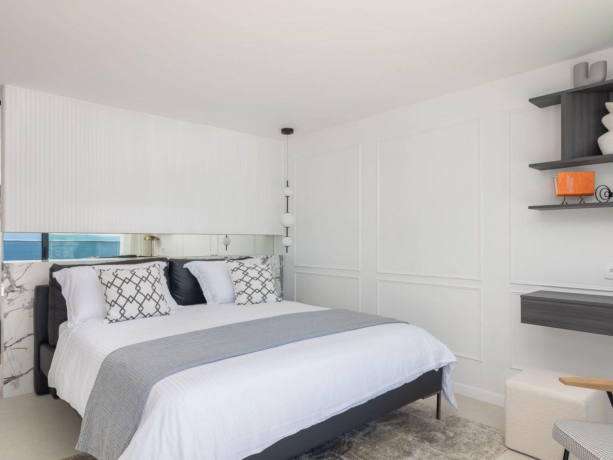 Auf der zweiten Etage bietet das fünfte Schlafzimmer 2 Einzelbetten, die zusammengeschoben werden können. Das Besondere an dieser Etage ist die Terrasse (40 m2) mit Tisch und Stühlen. Außerdem gibt es einen Whirlpool, in dem die Gäste entspannen und den Panoramablick auf das Meer genießen können.