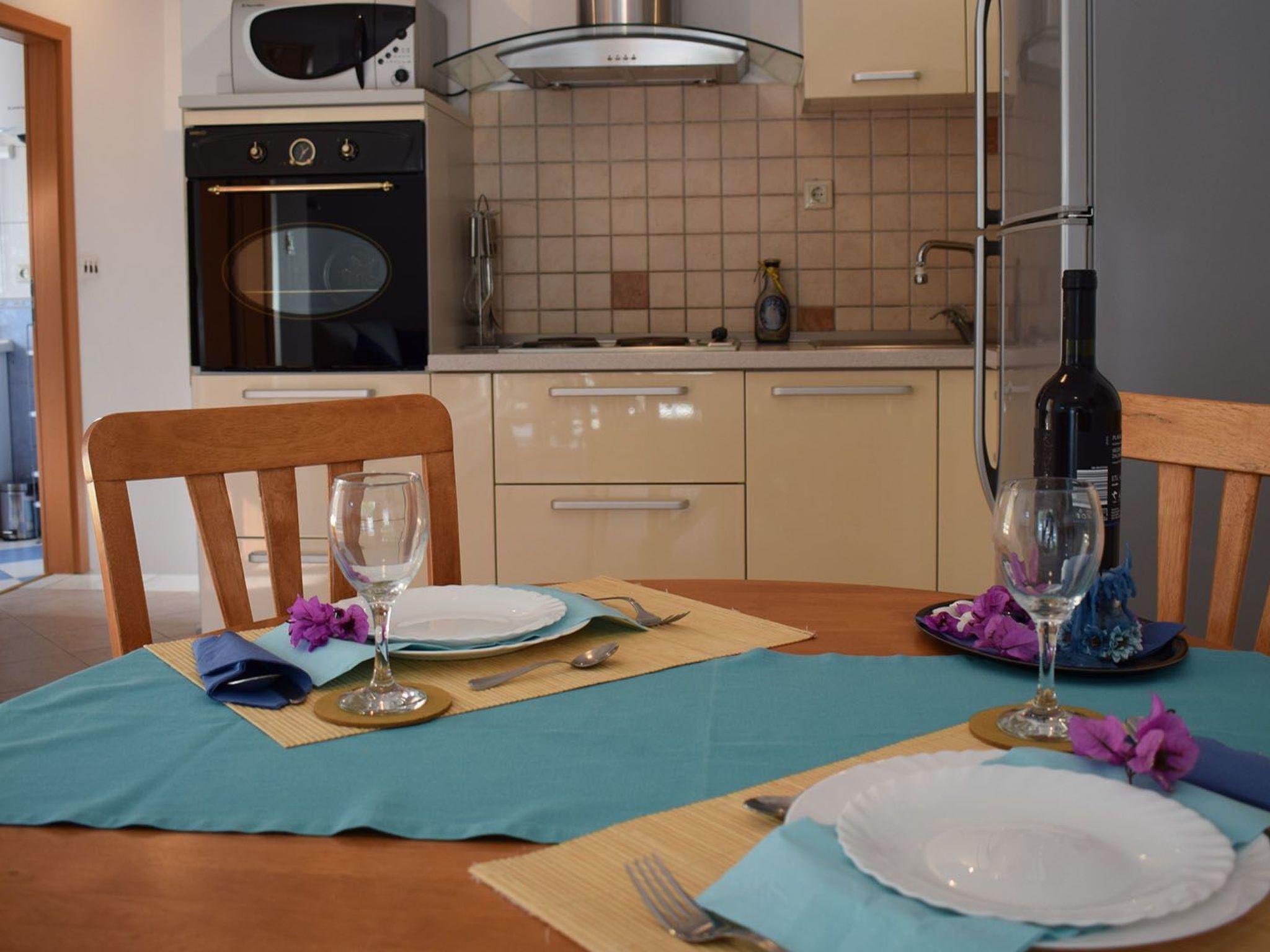Die Appartements Skale befinden sich auf der Südseite der Insel Ciovo in der wunderschönen Bucht Mavarstica. Das Haus erstreckt sich auf 900 m2 und ist nur 10 Meter vom Meer entfernt, mit weitem Blick auf die Inseln Brac, Solta und Hvar. Die Appartements Skale sind von einem schönen und großen mediterranen Garten umgeben, ideal für einen erholsamen Urlaub. Hohe Hecken, Olivenbäume, Lorbeerbäume und Palmen sorgen für absoluten Komfort und Privatsphäre. Jede Wohnung hat einen eigenen Parkplatz vor dem Haus. Die Gäste können den Grill, den Esstisch mit Stühlen und die Außendusche benutzen. Die Gesamtkapazität der beiden Wohnungen Skale I. (4+1) und Skale II. (4+1) ist 10 Personen. Die Wohnungen sind mit Klimaanlage, LCD SAT TV und WLAN Internet ausgestattet. Die Wohnung Skale II. (4+1) umfasst 50 m2 und befindet sich im zweiten Stock. Es ist für 5 Personen geeignet. Die Wohnung verfügt über 2 Schlafzimmer (eines mit Doppelbett und eines mit zwei Einzelbetten), Küche, Wohn-/Esszimmer, Balkon und Bad. Genießen Sie Ihren Aufenthalt in Apartments Skale und verbringen Sie einen unvergesslichen Urlaub auf der Insel Ciovo!