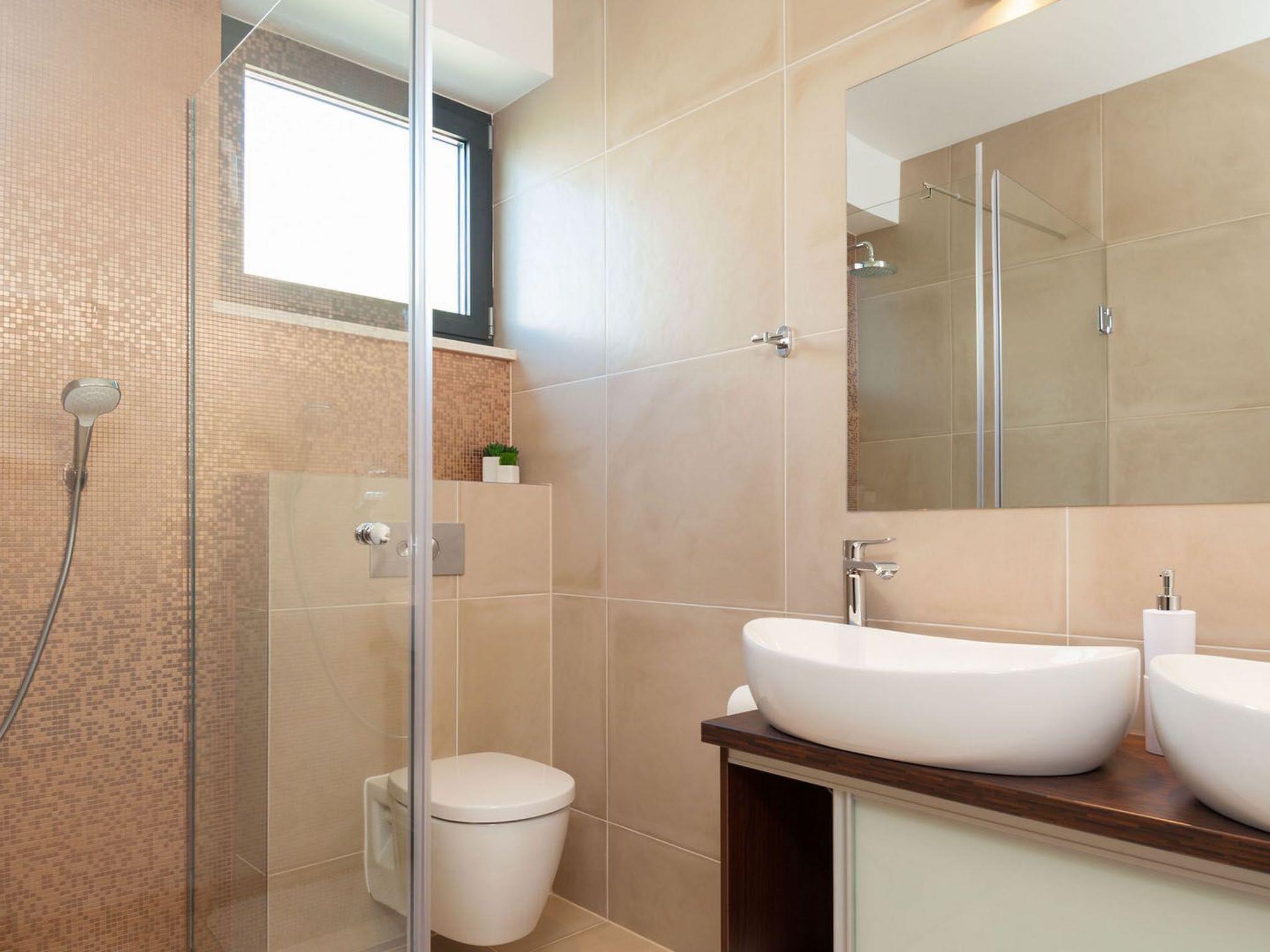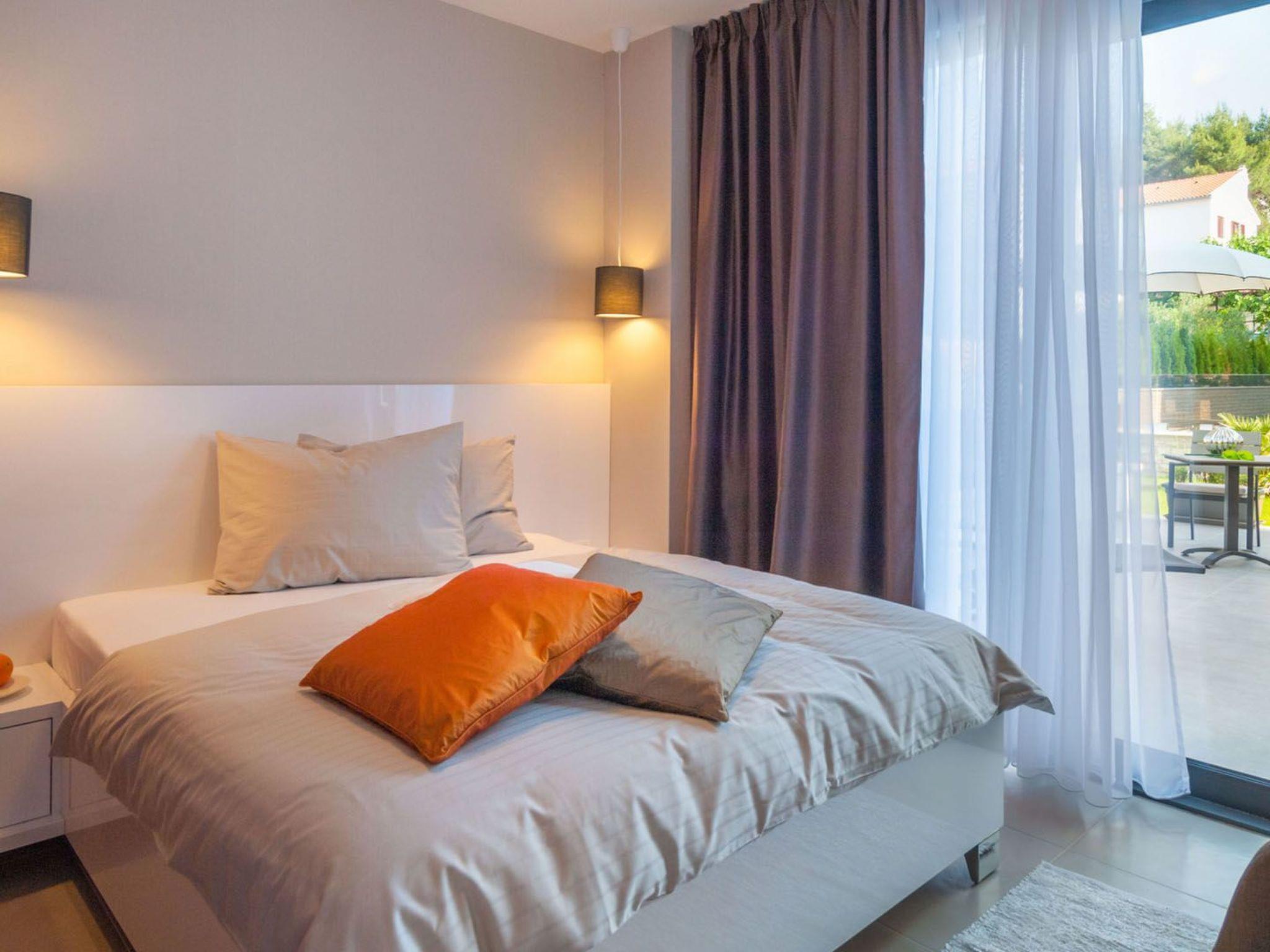 Villa Rose besteht aus 6 Schlafzimmern, 7 Badezimmern, 1 Halbbad, Fitnessraum und Sauna und kann bis zu 11 Personen beherbergen, was diese exklusive Residenz zu einer idealen Wahl für große Familien und größere Gruppen macht. Diese wunderbare Villa, die 2015 gebaut wurde, hat ein modernes und offenes Interieur, das unseren Gästen Komfort, Privatsphäre und das Gefühl bietet, in einer kleinen, luxuriösen Oase zu sein. Das Grundstück ist 600 m2 groß, und das Haus ist in Keller, Erdgeschoss, ersten Stock und hohen Dachboden unterteilt. Der Keller der Villa Rose ist als Erholungsraum mit Fitnessraum, finnischer Sauna, Hallenbad (20 m2) und Billardtisch konzipiert. Das Erdgeschoss besteht aus einem luxuriösen und eleganten offenen Wohnzimmer mit großem Esstisch für 10 Personen und einer voll ausgestatteten Küche. Der erste Stock und der hohe Dachboden sind als Ruhebereich mit sechs klimatisierten Doppelzimmern und einem Einzelzimmer mit eigenem Bad konzipiert. Das Hauptschlafzimmer hat Zugang zur großzügigen Terrasse mit Tisch und Stühlen im Freien, einer Sonnenliege und einem atemberaubenden Meerblick. Villa Rose verfügt über eine zentralisierte Klimaanlage und Wi-Fi-Internetanschluss, während alle Schlafzimmer mit einem LCD-Satellitenfernseher ausgestattet sind.