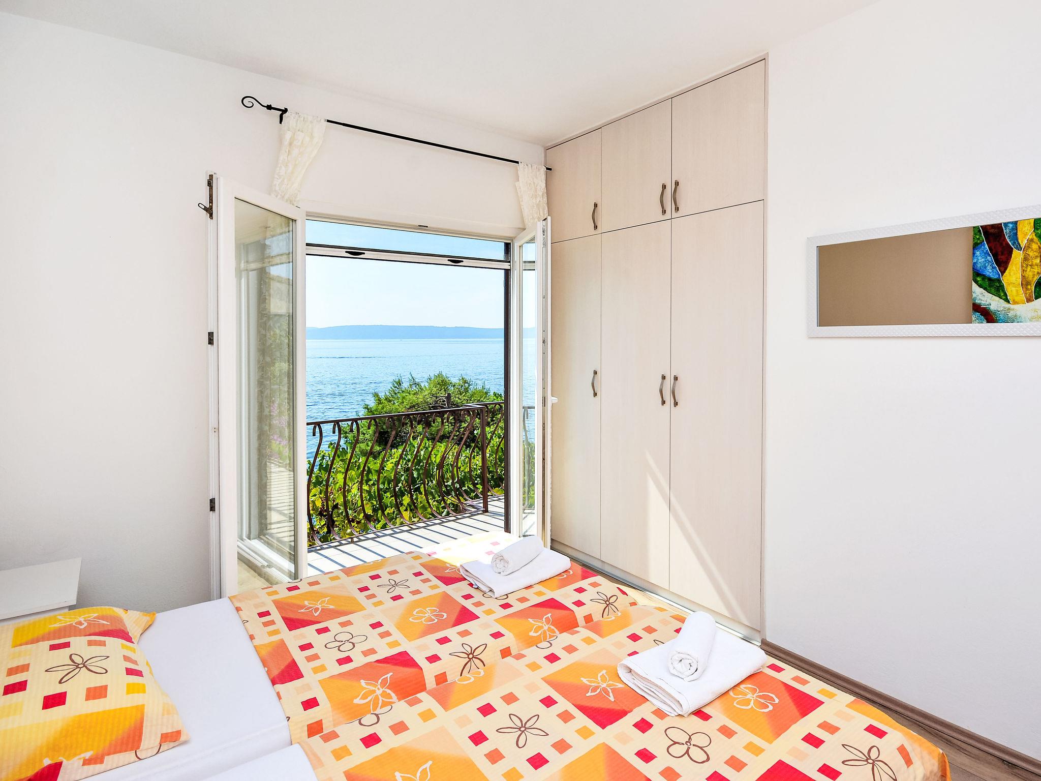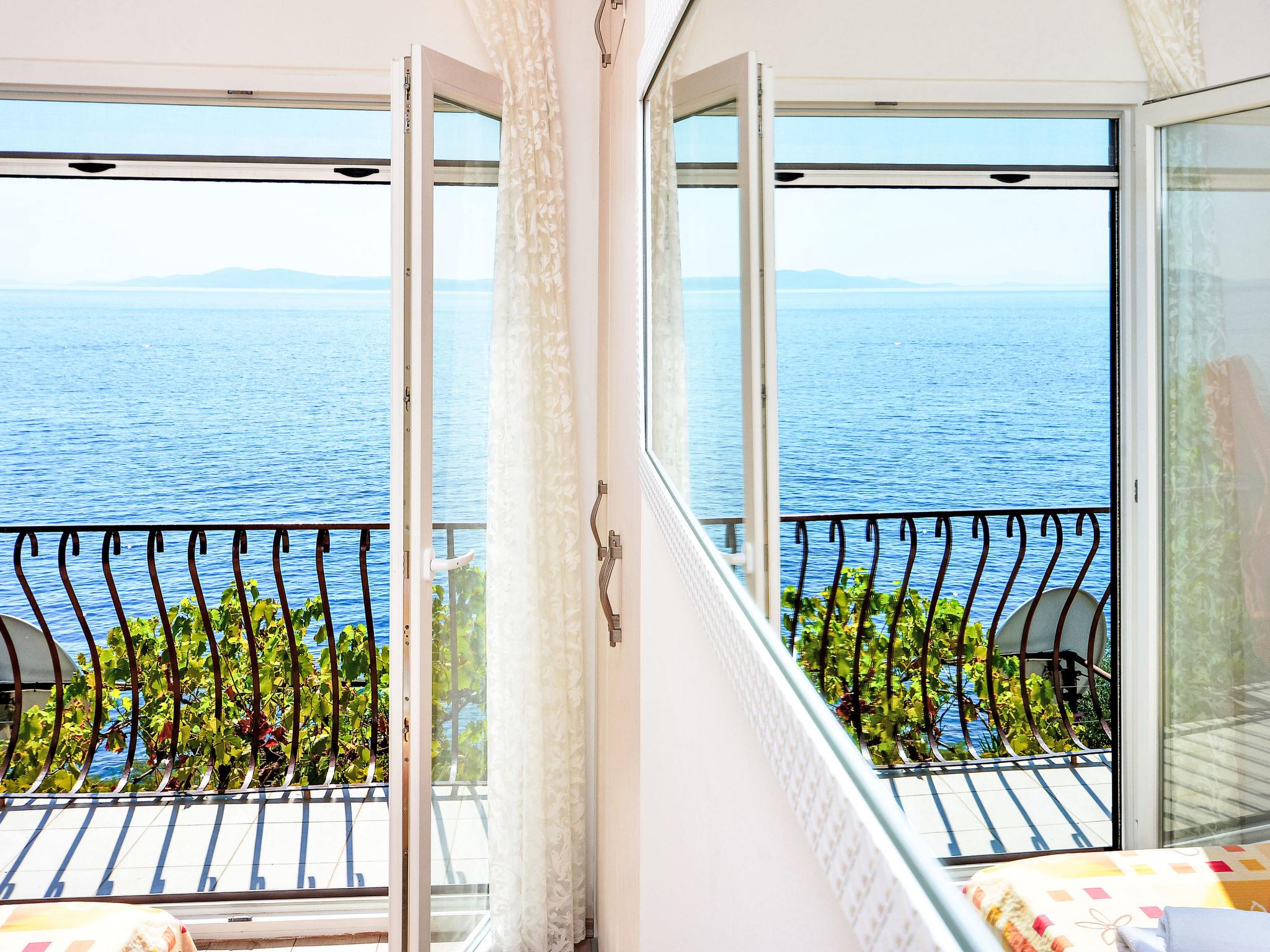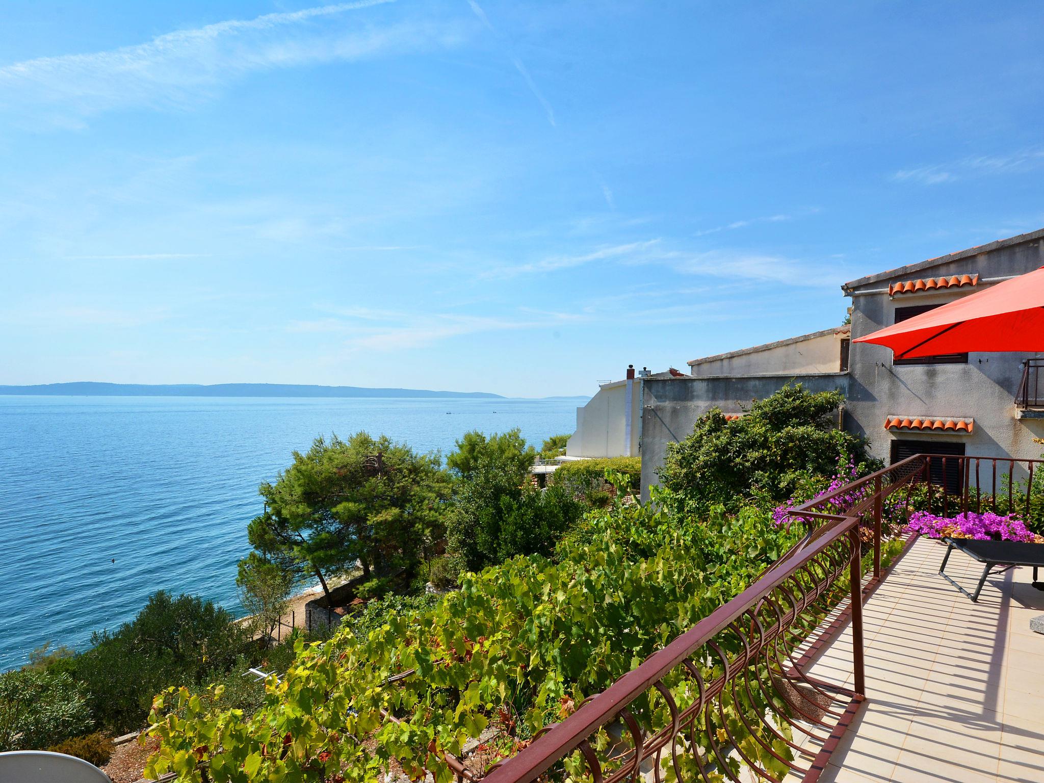 Haus "Teo", auf 2 Stockwerken. 5 km vom Zentrum von Trogir, sonnige, erhöhte Lage am Hang, 30 m vom Meer, 30 m vom Strand. Zur Alleinbenutzung: Grundstück 650 m2 (eingezäunt), terrassierter Garten. Terrasse (50 m2), Gartenmöbel. Im Hause: Internetzugang, Waschmaschine. 40 m Treppenweg (50 Stufen) bis zum Haus. Parkplatz (für 2 Autos, überdacht) in 80 m. Supermarkt 1.2 km, Restaurant 1.2 km, Café 400 m, Bushaltestelle 1.6 km, Felsstrand, betonierter Strand 30 m. Bitte beachten: Flugplatz 9 km vom Haus.