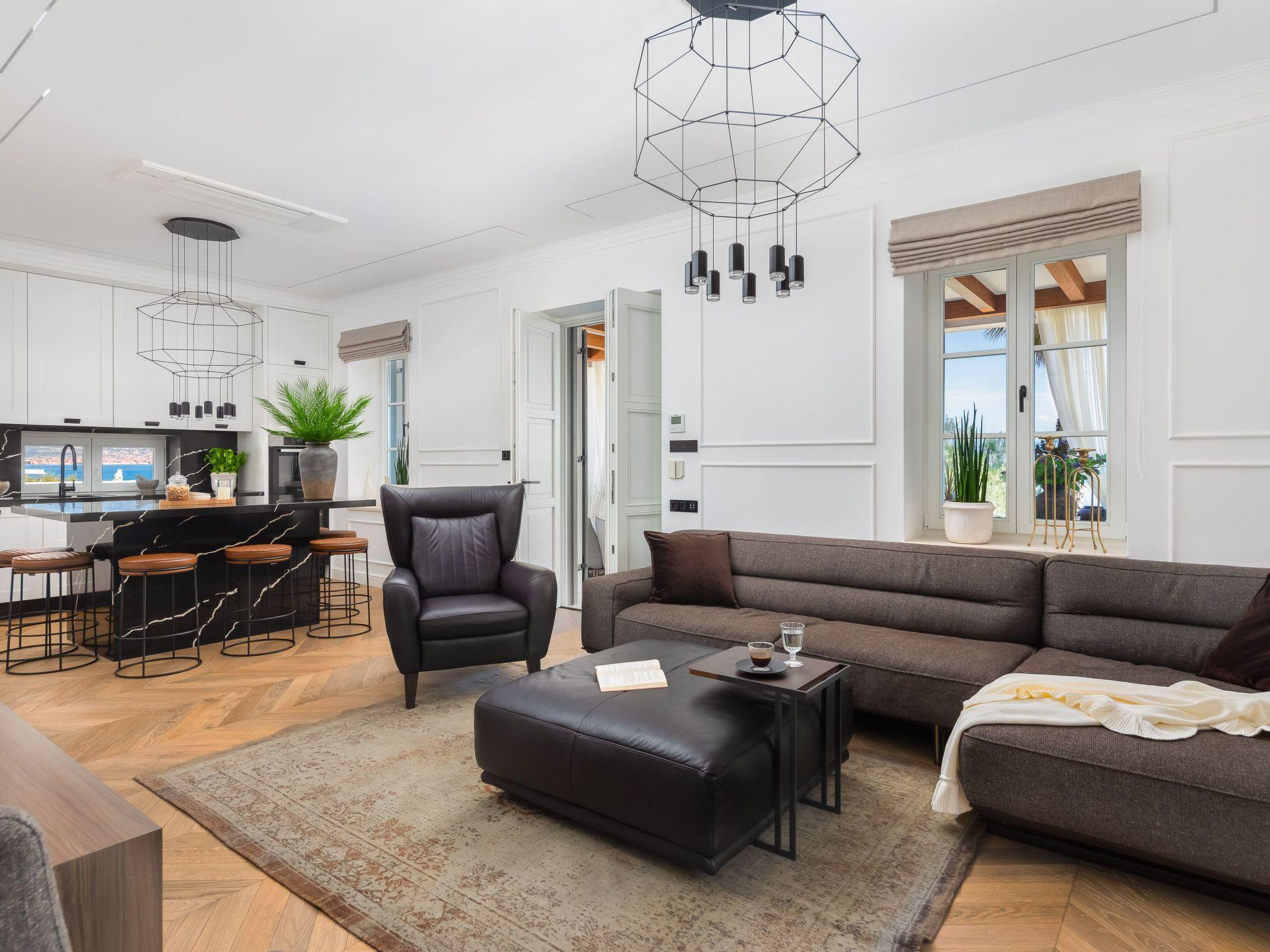 Willkommen in der Villa L'orizzonte, einem unberührten Ferienhaus in der reizvollen Umgebung von Slatine, Dalmatien. Nur einen Katzensprung vom Meer entfernt, verspricht dieses atemberaubende Anwesen einen unvergesslichen Urlaub für bis zu 10 Gäste. Mit einem unvergleichlichen Blick auf die Kaštela-Bucht in der Nähe von Trogir bietet dieses Reiseziel eine exquisite Mischung aus Komfort und Stil, die es zu einem perfekten Rückzugsort für Familien, Freunde und Gruppentreffen macht.