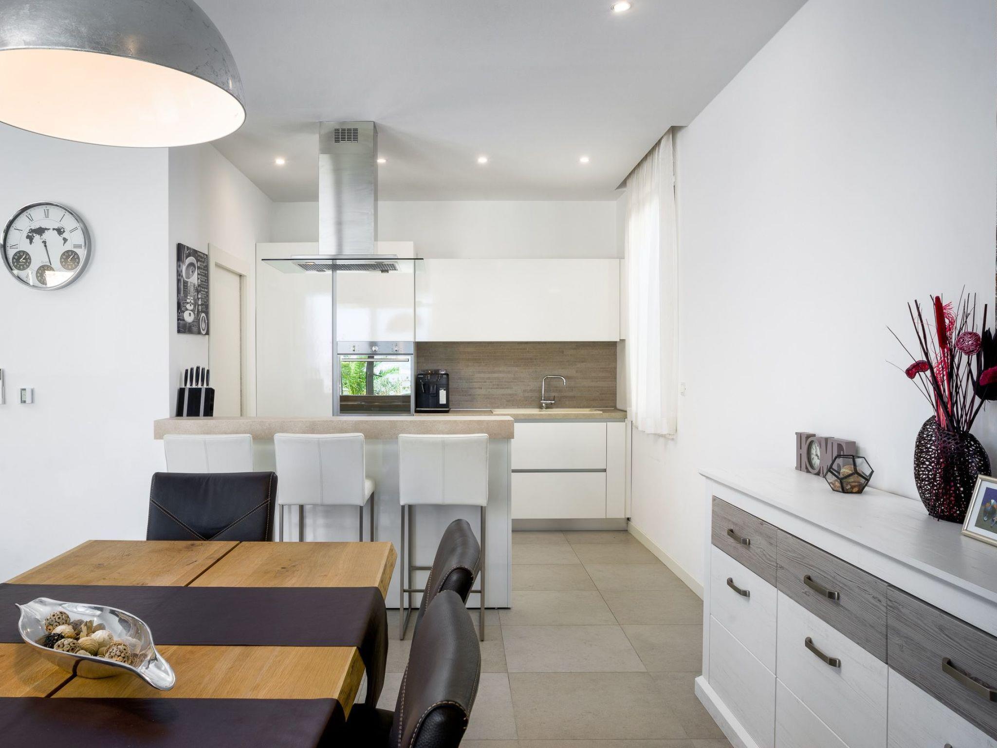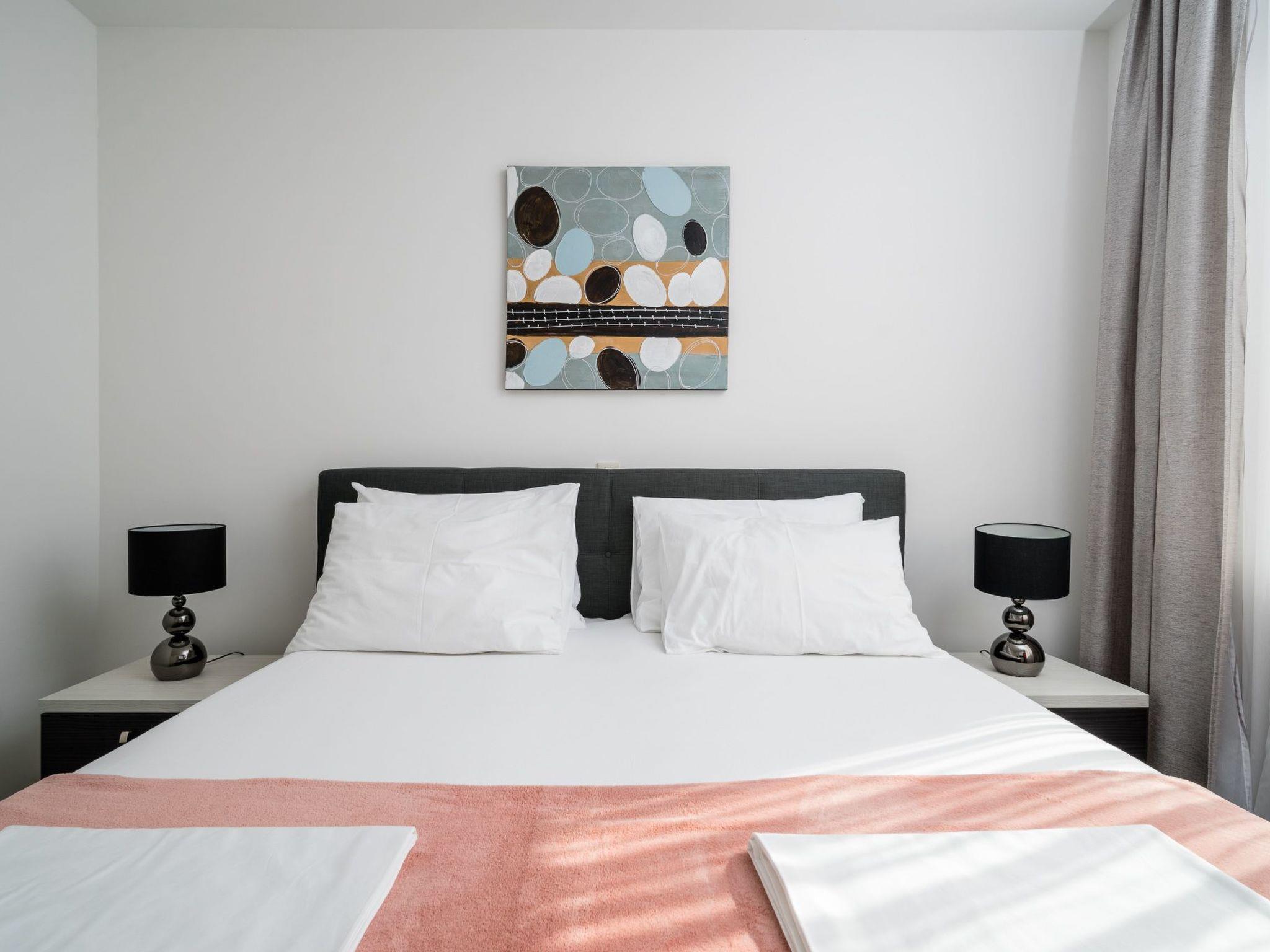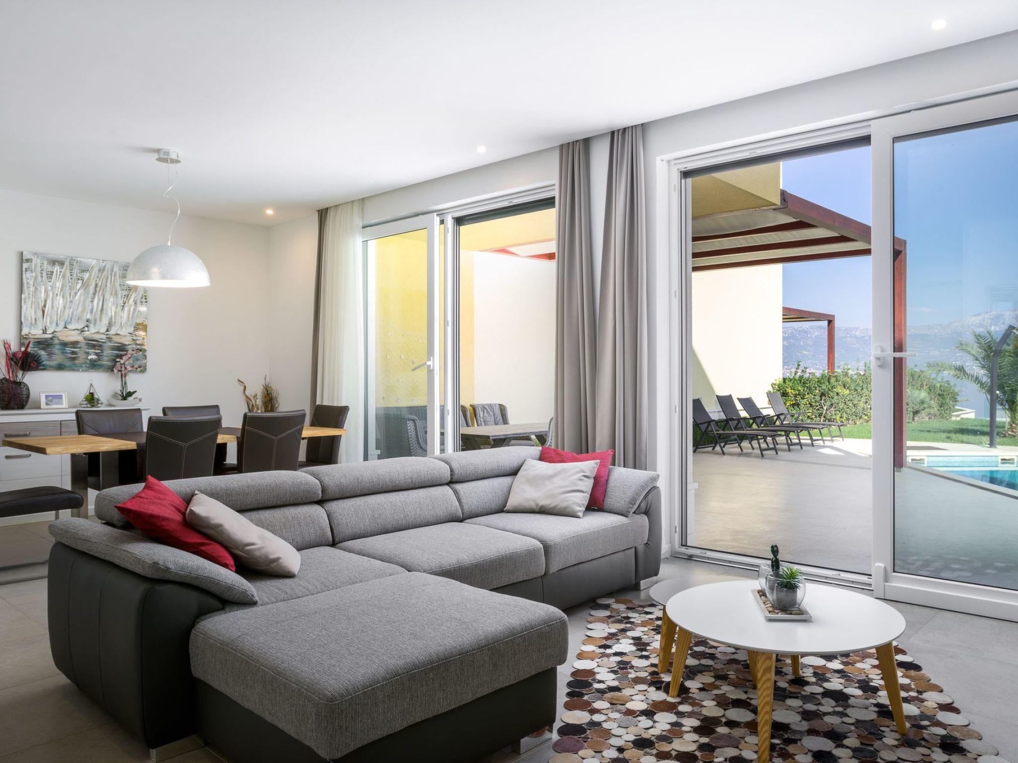Das Apartment Golden D1 befindet sich im Erdgeschoss des Gebäudes. Sorgfältig gestaltete Innenräume mit klaren Linien schaffen eine Atmosphäre von Eleganz und Luxus, die in Verbindung mit der wunderbaren Umgebung niemanden gleichgültig lässt. Die luxuriöse Wohnung Golden D1 besteht aus 2 Doppelschlafzimmern, 1 modernen Badezimmer, 1 Halbbad, einem modernen Wohnzimmer mit Essbereich und einer gut ausgestatteten offenen Küche. Eine Glasschiebetür führt vom Wohnzimmer zu einer schönen überdachten Terrasse mit Meerblick, die mit Gartenmöbeln und einem elektrischen Grill ausgestattet ist. Die Wohnung ist für 4 Personen geeignet. Das Appartement Golden D1 ist voll klimatisiert und ausgestattet mit SAT-TV, Wi-fi, Safe, Bügeleisen und Bügelbrett, Waschmaschine, elektrischem Außengrill, Haartrockner, Herd, Backofen, Dunstabzugshaube, Kühlschrank mit Gefrierfach, Geschirrspüler, Wasserkocher und Kaffeemaschine. Babybett und Hochstuhl sowie Liegeplatz für Boote sind auf Anfrage erhältlich. Den Gästen steht ein kostenloser Parkplatz zur Verfügung. Haustiere sind nicht erlaubt. Die Gäste werden bei ihrer Ankunft mit einem Begrüßungsgetränk empfangen. Raumaufteilung und Ausstattung der Wohnung Golden D1: Schlafzimmer 1: Doppelbett, Klimaanlage, Kleiderschrank, Bettwäsche, Meerblick Schlafzimmer 2: Doppelbett, Klimaanlage, Kleiderschrank, Bettwäsche Badezimmer: Dusche, WC, Waschbecken, Handtücher, Haartrockner, Toilettenartikel Wohnzimmer/Essbereich: Klimaanlage, Sofa, SAT-TV, Wi-Fi, Esstisch und Stühle für 6 Personen, Gartenmöbel auf einer Terrasse mit Meerblick Küchenausstattung: Herd, Backofen, Dunstabzugshaube, Kühlschrank mit Gefrierfach, Geschirrspüler, Wasserkocher, Kaffeemaschine, Geschirr und Besteck.