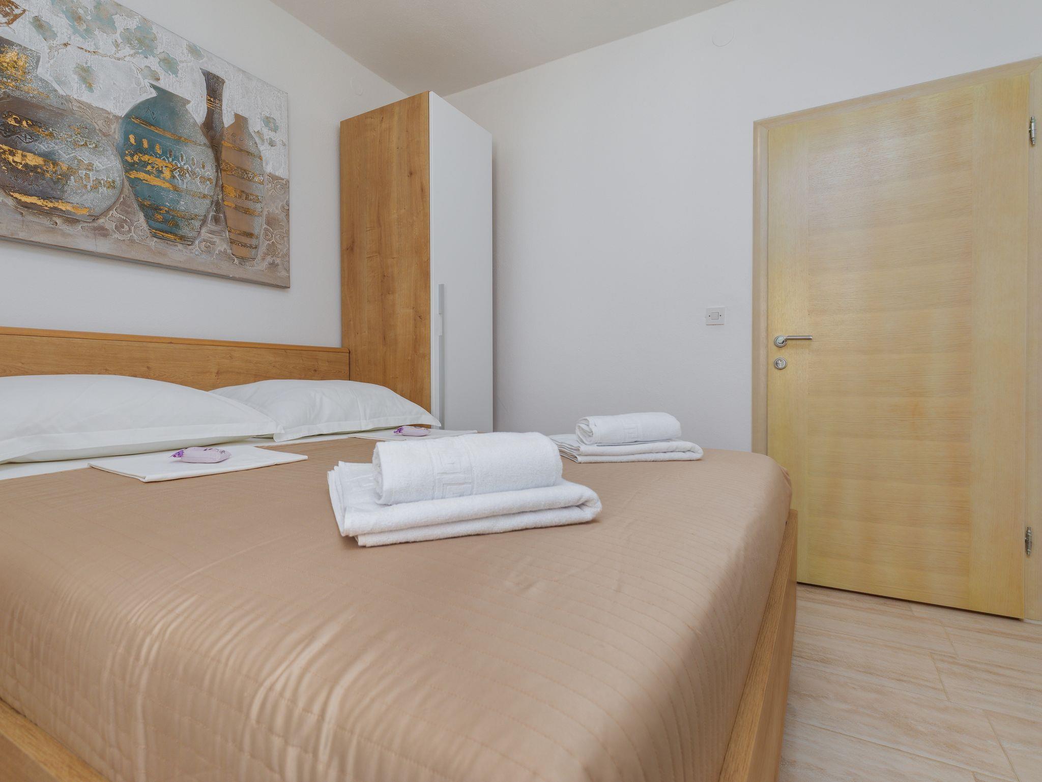 Studio bietet Platz für 2 Gäste. Die Betten sind in Schlafzimmern, die es 1 gibt, innerhalb einer Gesamtfläche von 18m2, angeordnet. Die Gäste haben eine eigene Terrasse zur Verfügung, auf der sie in warmen Sommernächten genießen können. Unterkunftseinheit hat Räume, die von dem Rest der Einheit abgetrennt werden. IM PREIS INBEGRIFFEN: Kurtaxe, Endreinigung, Klimatisierung, Parkplatz, Internet, Kinderbett, Bügeleisen, Bügelbrett, Föhn. VERBINDLICHE ZUSÄTZLICHE KOSTEN: Aufzahlung für Kurzaufenthalte (prozentualer Zuschlag pro Nächtigungsanzahl: 30% - 1, 20% - 2, 10% - 3). Die Verfügbarkeit zusätzlicher Dienstleistungen in Ihrem reservierten Termin und die Preise derselben (falls nicht aufgeführt) müssen im Voraus überprüft werden. Zusätzliche Dienstleistungen die in der Zahlungsaufforderung nicht aufgeführt sind werden direkt beim Vermieter bezahlt, angenommen der Gast nutzt auch diese.