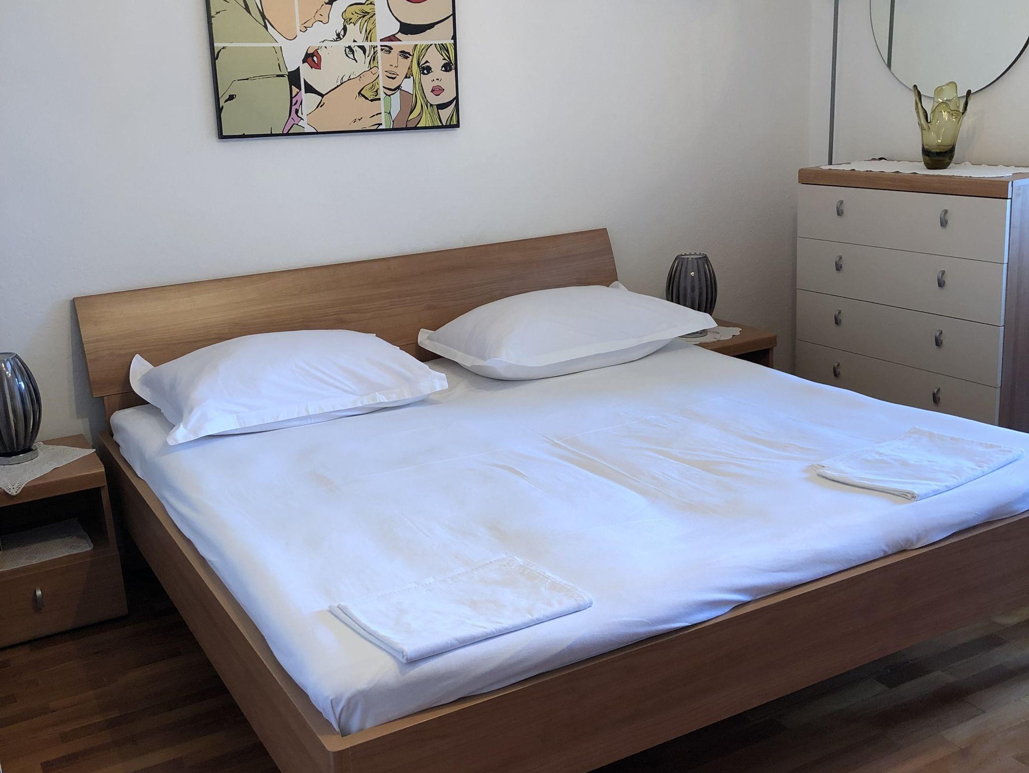 Studio bietet Platz für 3 Gäste. Die Betten sind in Schlafzimmern, die es 1 gibt, innerhalb einer Gesamtfläche von 24m2, angeordnet. Die Gäste haben einen eigenen Balkon zur Verfügung, auf der sie in warmen Sommernächten genießen können. Das Studio-Apartment bietet Meerblick. Es ist erlaubt, Speisen auf dem Gemeinschafts-Grill vorzubereiten. In der Unterkunftseinheit besteht die Möglichkeit des Mitbringens von Haustieren gegen Aufpreis. IM PREIS INBEGRIFFEN: Kurtaxe, Endreinigung, Klimatisierung, Parkplatz, Internet, Fahrrad, Kinderbett, Bügeleisen, Bügelbrett, Föhn. VERBINDLICHE ZUSÄTZLICHE KOSTEN: Aufzahlung für Kurzaufenthalte (prozentualer Zuschlag pro Nächtigungsanzahl: 30% - 1, 20% - 2, 10% - 3). UNVERBINDLICHE ZUSÄTZLICHE KOSTEN: Haustiere (10,00 € pro Nacht), Zusatzbett (10,00 € pro Nacht). Die Verfügbarkeit zusätzlicher Dienstleistungen in Ihrem reservierten Termin und die Preise derselben (falls nicht aufgeführt) müssen im Voraus überprüft werden. Zusätzliche Dienstleistungen die in der Zahlungsaufforderung nicht aufgeführt sind werden direkt beim Vermieter bezahlt, angenommen der Gast nutzt auch diese. Ermäßigung auf den Grundpreis: Gratistag 14=13 (bei einem Aufenthalt von 14 Tagen oder mehr erhalten Sie einen Gratistag für den Aufenthalt bis 31.12.26).
