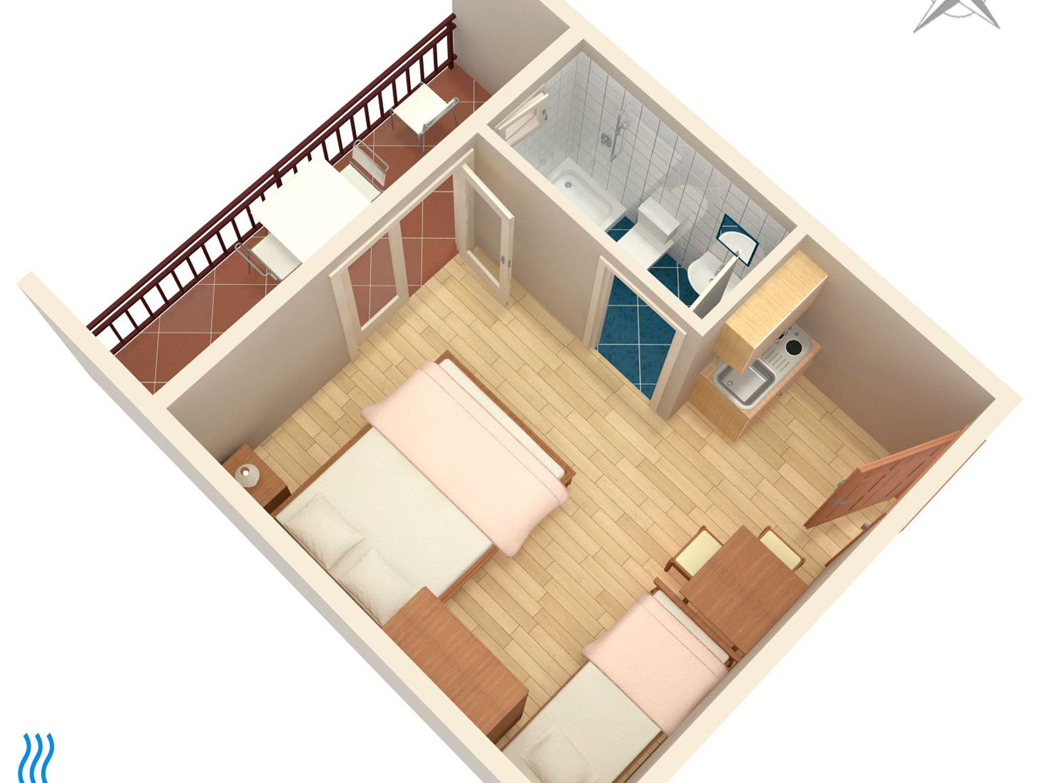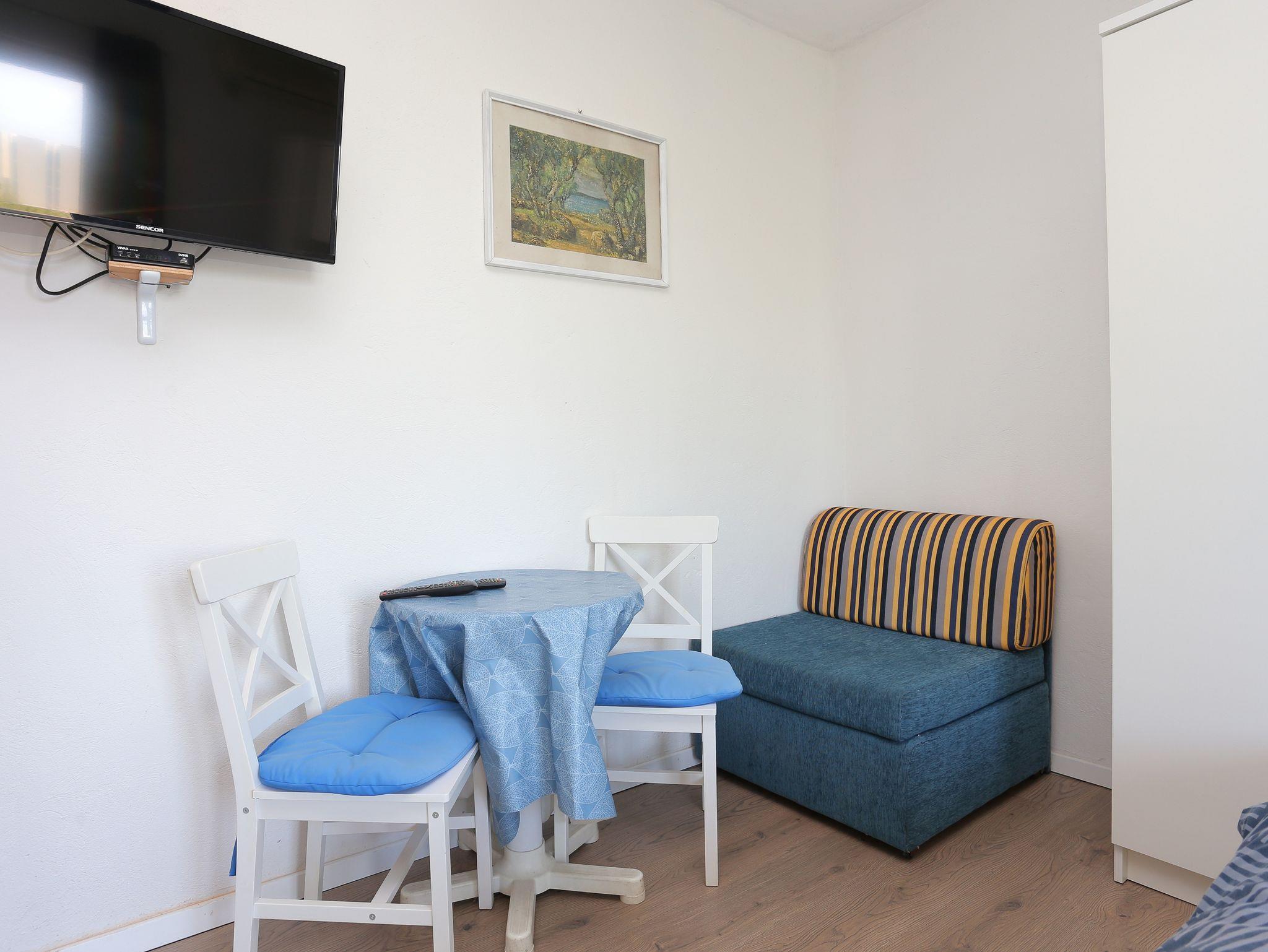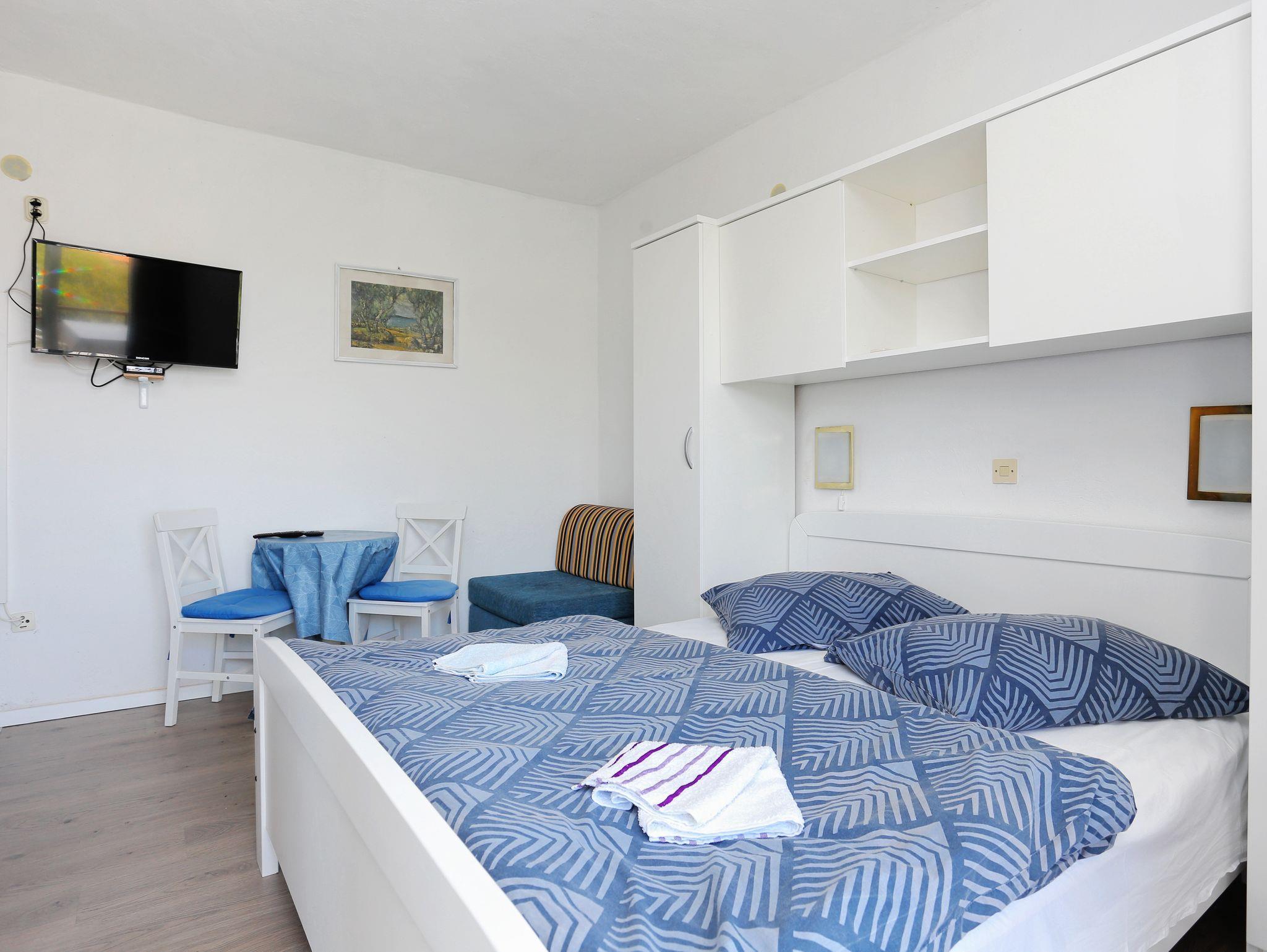 Studio bietet Platz für 3 Gäste. Die Betten sind in Schlafzimmern, die es 1 gibt, innerhalb einer Gesamtfläche von 19m2, angeordnet. Die Gäste haben einen eigenen Balkon zur Verfügung, auf der sie in warmen Sommernächten genießen können. Das Studio-Apartment bietet Meerblick. IM PREIS INBEGRIFFEN: Kurtaxe, Endreinigung, Klimatisierung, Parkplatz, Internet. VERBINDLICHE ZUSÄTZLICHE KOSTEN: Aufzahlung für Kurzaufenthalte (prozentualer Zuschlag pro Nächtigungsanzahl: 30% - 1, 20% - 2, 10% - 3). Die Verfügbarkeit zusätzlicher Dienstleistungen in Ihrem reservierten Termin und die Preise derselben (falls nicht aufgeführt) müssen im Voraus überprüft werden. Zusätzliche Dienstleistungen die in der Zahlungsaufforderung nicht aufgeführt sind werden direkt beim Vermieter bezahlt, angenommen der Gast nutzt auch diese. Ermäßigung auf den Grundpreis: Gratistag 14=13 (bei einem Aufenthalt von 14 Tagen oder mehr erhalten Sie einen Gratistag für den Aufenthalt bis 31.12.26).