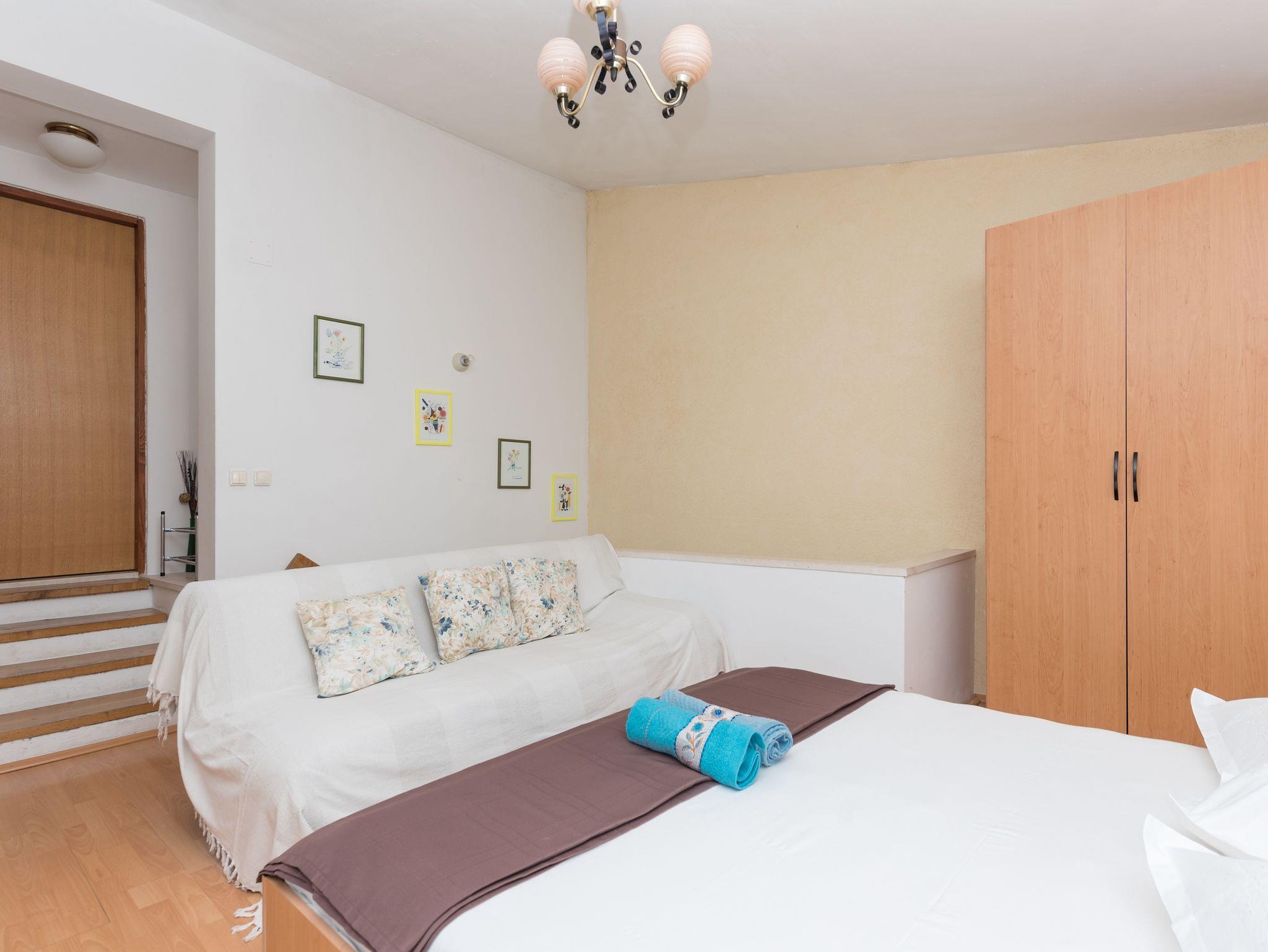 Ferienwohnung bietet Platz für 4 Gäste. Die Betten sind in Schlafzimmern, die es 1 gibt, und in Wohnzimmer, innerhalb einer Gesamtfläche von 46m2, angeordnet. Die Gäste haben einen eigenen Balkon zur Verfügung, auf der sie in warmen Sommernächten genießen können. Das Apartment bietet Meerblick. Es ist erlaubt, Speisen auf dem Gemeinschafts-Grill vorzubereiten. IM PREIS INBEGRIFFEN: Kurtaxe, Endreinigung, Klimatisierung, Parkplatz, Internet, Bügeleisen. VERBINDLICHE ZUSÄTZLICHE KOSTEN: Aufzahlung für Kurzaufenthalte (prozentualer Zuschlag pro Nächtigungsanzahl: 30% - 1, 20% - 2, 10% - 3). UNVERBINDLICHE ZUSÄTZLICHE KOSTEN: Garage (2,00 € pro Nacht). Die Verfügbarkeit zusätzlicher Dienstleistungen in Ihrem reservierten Termin und die Preise derselben (falls nicht aufgeführt) müssen im Voraus überprüft werden. Zusätzliche Dienstleistungen die in der Zahlungsaufforderung nicht aufgeführt sind werden direkt beim Vermieter bezahlt, angenommen der Gast nutzt auch diese.