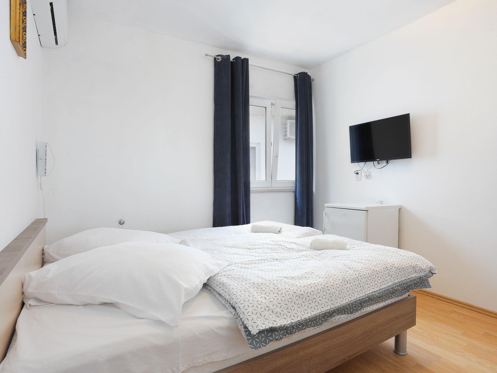 Ferienwohnung bietet Platz für 4 Gäste. Die Betten sind in Schlafzimmern, die es 1 gibt, und in Wohnzimmer, innerhalb einer Gesamtfläche von 36m2, angeordnet. Die Gäste haben eine eigene Terrasse zur Verfügung, auf der sie in warmen Sommernächten genießen können. Das Apartment bietet Meerblick. IM PREIS INBEGRIFFEN: Kurtaxe, Endreinigung, Klimatisierung, Parkplatz, Internet. VERBINDLICHE ZUSÄTZLICHE KOSTEN: Aufzahlung für Kurzaufenthalte (prozentualer Zuschlag pro Nächtigungsanzahl: 30% - 1, 20% - 2, 10% - 3). Die Verfügbarkeit zusätzlicher Dienstleistungen in Ihrem reservierten Termin und die Preise derselben (falls nicht aufgeführt) müssen im Voraus überprüft werden. Zusätzliche Dienstleistungen die in der Zahlungsaufforderung nicht aufgeführt sind werden direkt beim Vermieter bezahlt, angenommen der Gast nutzt auch diese. Ermäßigung auf den Grundpreis: Gratistag 14=13 (bei einem Aufenthalt von 14 Tagen oder mehr erhalten Sie einen Gratistag für den Aufenthalt bis 31.12.26).
