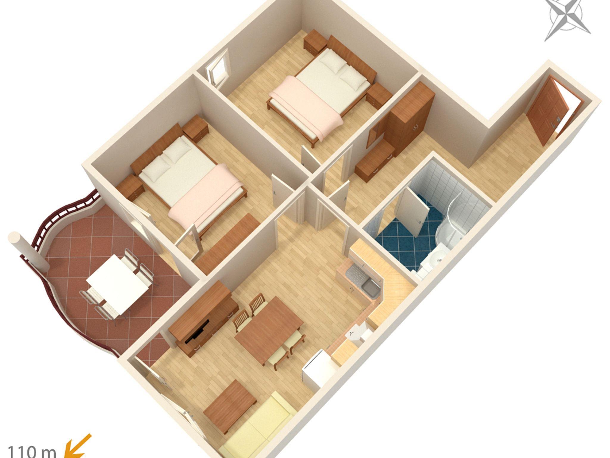 Ferienwohnung bietet Platz für 5 Gäste. Die Betten sind in Schlafzimmern, die es 2 gibt, und in Wohnzimmer, innerhalb einer Gesamtfläche von 53m2, angeordnet. Die Gäste haben einen eigenen Balkon zur Verfügung, auf der sie in warmen Sommernächten genießen können. Das Apartment bietet Meerblick. IM PREIS INBEGRIFFEN: Kurtaxe, Endreinigung, Klimatisierung, Parkplatz, Garage, Internet, Bügeleisen, Bügelbrett, Föhn. UNVERBINDLICHE ZUSÄTZLICHE KOSTEN: Wäschewaschen (10,00 € Waschen). Die Verfügbarkeit zusätzlicher Dienstleistungen in Ihrem reservierten Termin und die Preise derselben (falls nicht aufgeführt) müssen im Voraus überprüft werden. Zusätzliche Dienstleistungen die in der Zahlungsaufforderung nicht aufgeführt sind werden direkt beim Vermieter bezahlt, angenommen der Gast nutzt auch diese.