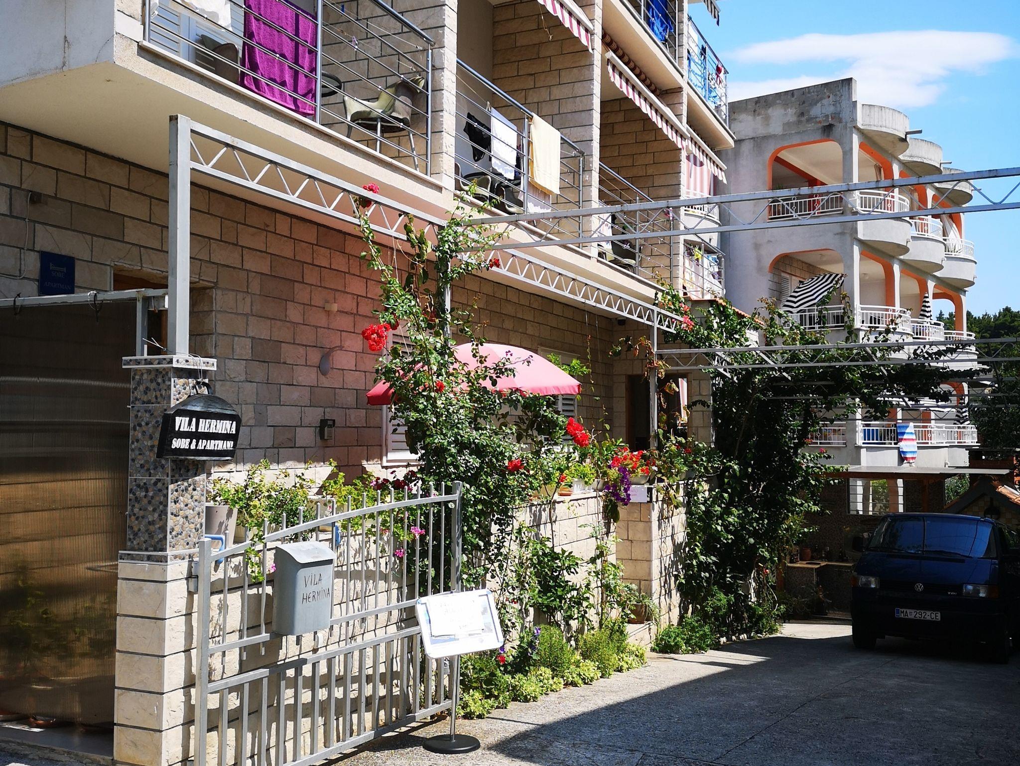 Ferienwohnung bietet Platz für 4 Gäste. Die Betten sind in Schlafzimmern, die es 2 gibt, innerhalb einer Gesamtfläche von 41m2, angeordnet. Die Gäste haben eine eigene Terrasse zur Verfügung, auf der sie in warmen Sommernächten genießen können. Das Apartment bietet Meerblick. Es ist erlaubt, Speisen auf dem Gemeinschafts-Grill vorzubereiten. IM PREIS INBEGRIFFEN: Kurtaxe, Endreinigung, Klimatisierung, Parkplatz, Internet, Bügeleisen, Bügelbrett, Föhn. VERBINDLICHE ZUSÄTZLICHE KOSTEN: Aufzahlung für Kurzaufenthalte (prozentualer Zuschlag pro Nächtigungsanzahl: 30% - 1, 20% - 2, 10% - 3). Die Verfügbarkeit zusätzlicher Dienstleistungen in Ihrem reservierten Termin und die Preise derselben (falls nicht aufgeführt) müssen im Voraus überprüft werden. Zusätzliche Dienstleistungen die in der Zahlungsaufforderung nicht aufgeführt sind werden direkt beim Vermieter bezahlt, angenommen der Gast nutzt auch diese. Ermäßigung auf den Grundpreis: Gratistag 14=13 (bei einem Aufenthalt von 14 Tagen oder mehr erhalten Sie einen Gratistag für den Aufenthalt bis 31.12.26).