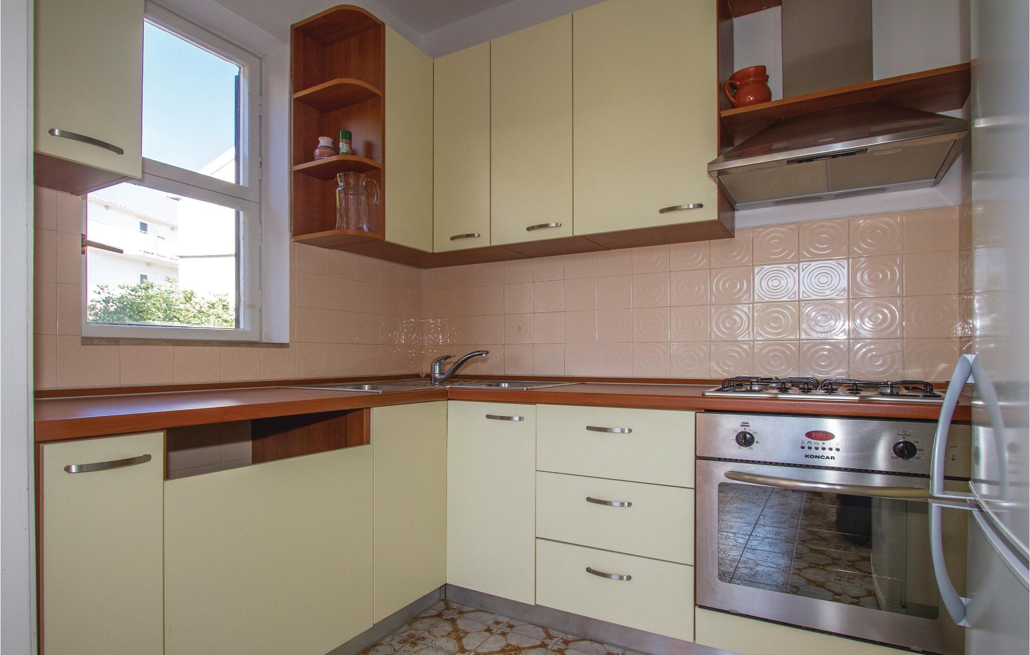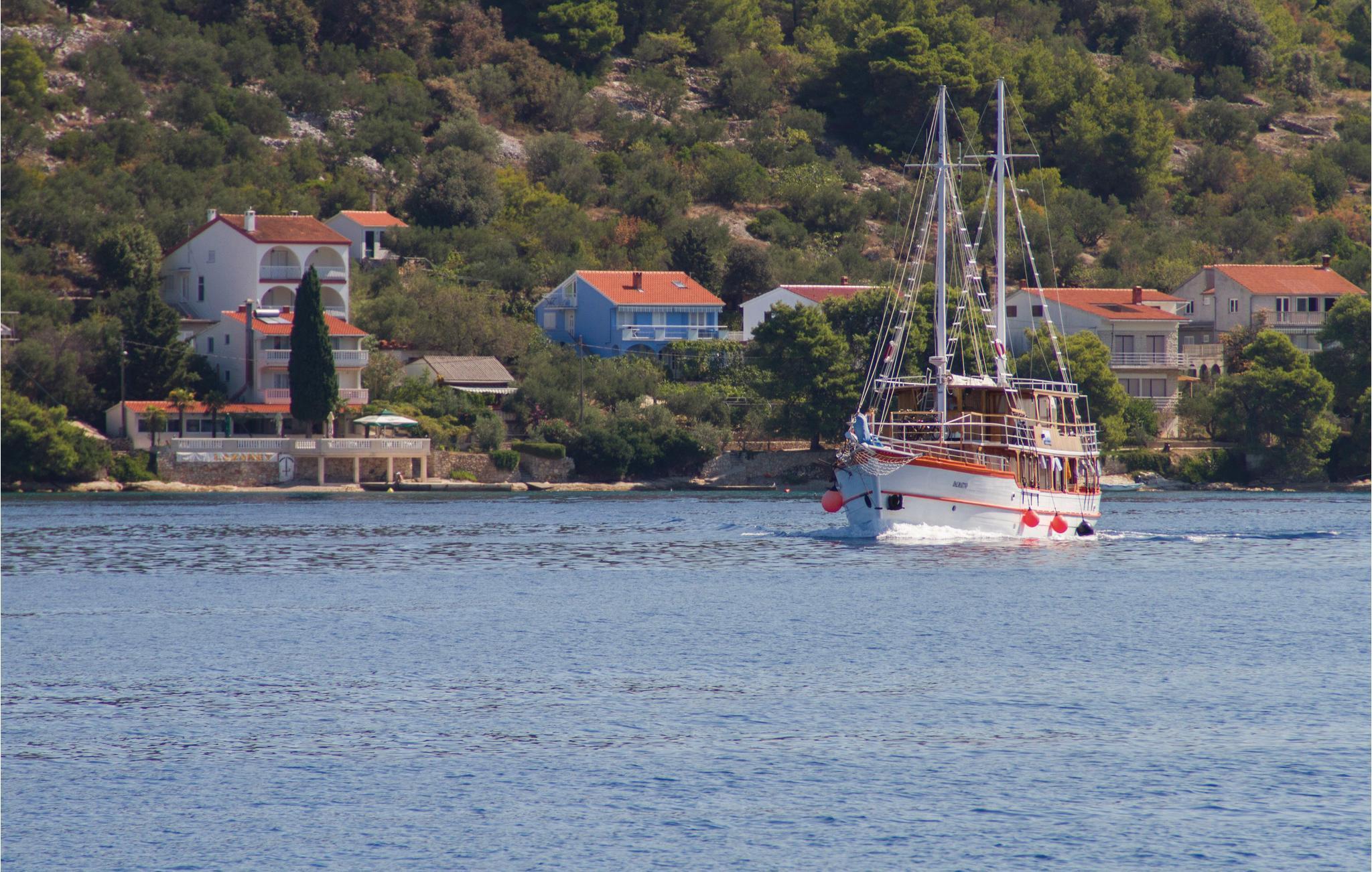 Die geräumige und praktisch eingerichtete Ferienwohnung im 1. Stock wird vom Meer nur durch eine Lokalstraße getrennt. Zwei Schlafzimmer teilen sich ein Badezimmer und eine gemeinsame Terrasse mit Blick aufs Meer. Vom Wohnbereich kommen Sie zur hinteren Terrasse, die ideal für einen Aufenthalt im Freien tagsüber ist, da sie schattig ist. Hier ist auch der Grill. Nur 80 m von Preko liegen die idyllische Insel Galevac (Skoljic) - ein beliebter Badeort - sowie der nahe Sandstrand, der zu Recht die blaue Flagge trägt, denn er ist sehr rein.